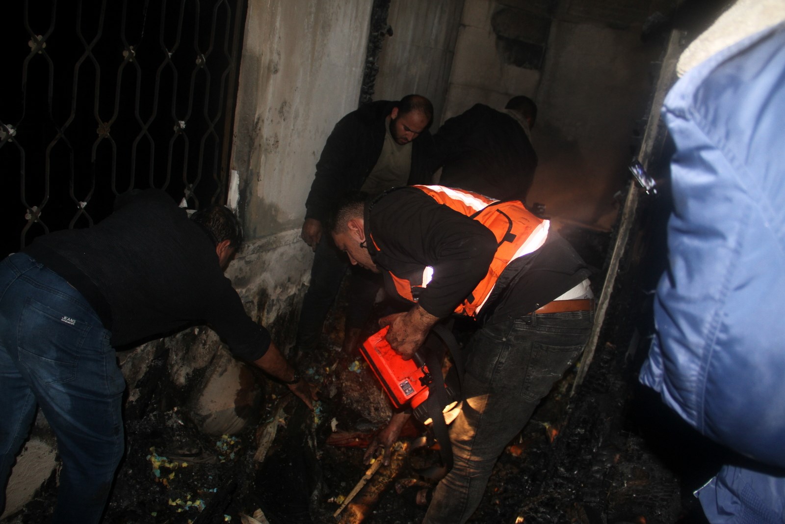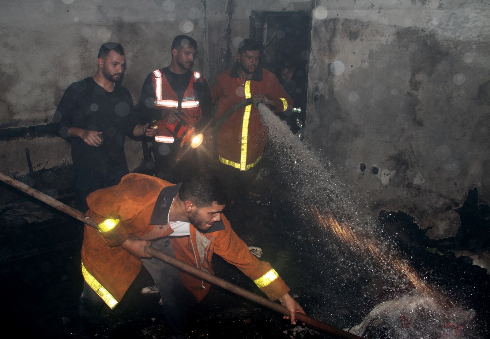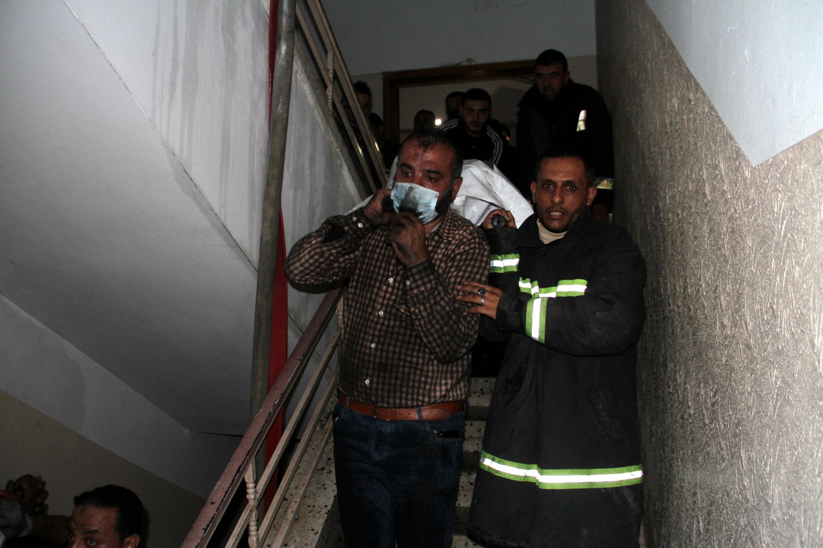 صور من تعامل قوات الدفاع المدني والشرطة مع الحريق الكبير الذي اندلع في بناية سكنية بمخيم جباليا شمالي قطاع غزة مساء اليوم، وأدى لوفاة 21 مواطناً.