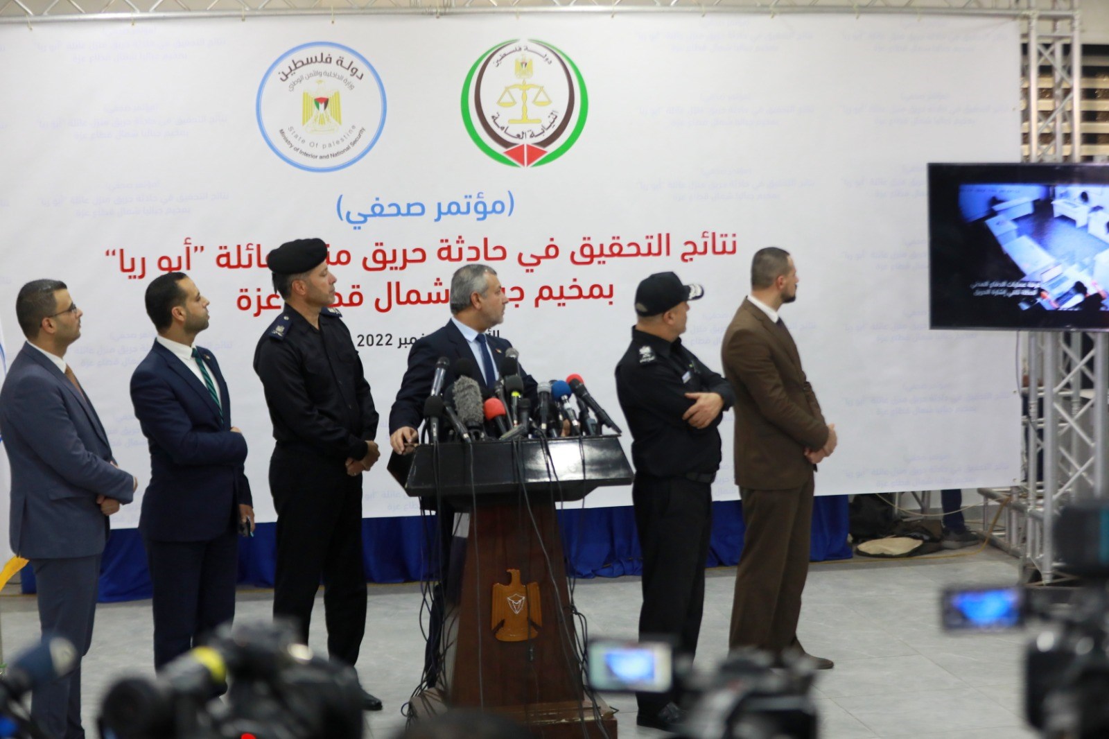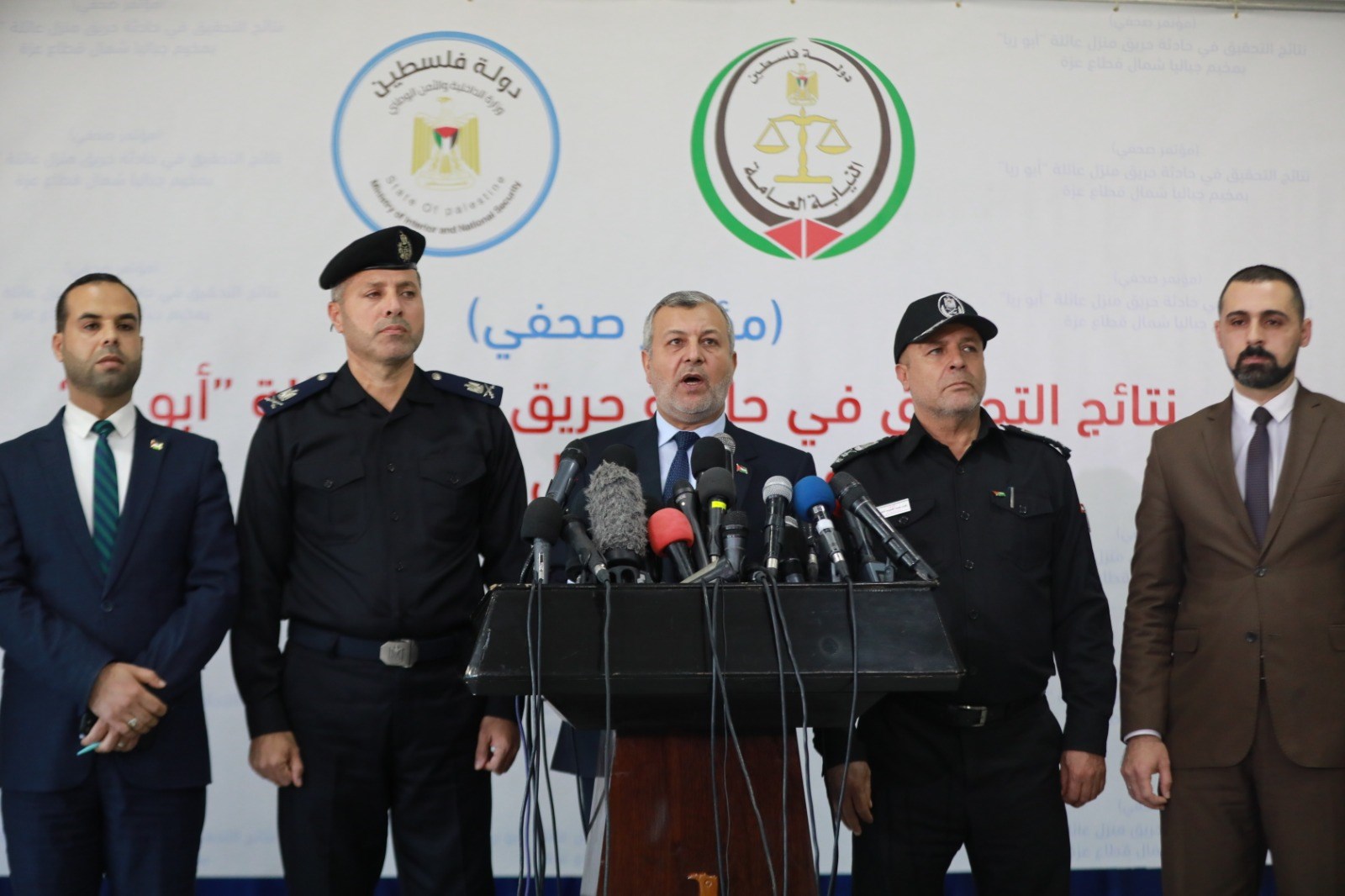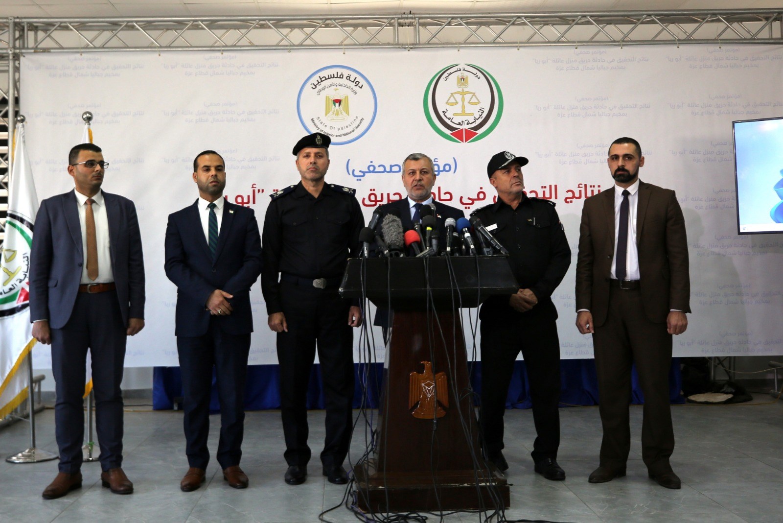 جاء ذلك خلال مؤتمر صحفي في مدينة عرفات للشرطة غرب مدينة غزة، بمشاركة النائب العام المستشار د. محمد النحال، ومدير عام الشرطة اللواء محمود صلاح، ومدير عام الدفاع المدني اللواء زهير شاهين، والمتحدث باسم الداخلية والأمن الوطني إياد البزم؛ للإعلان عن نتائج تحقيقات الحادثة.
