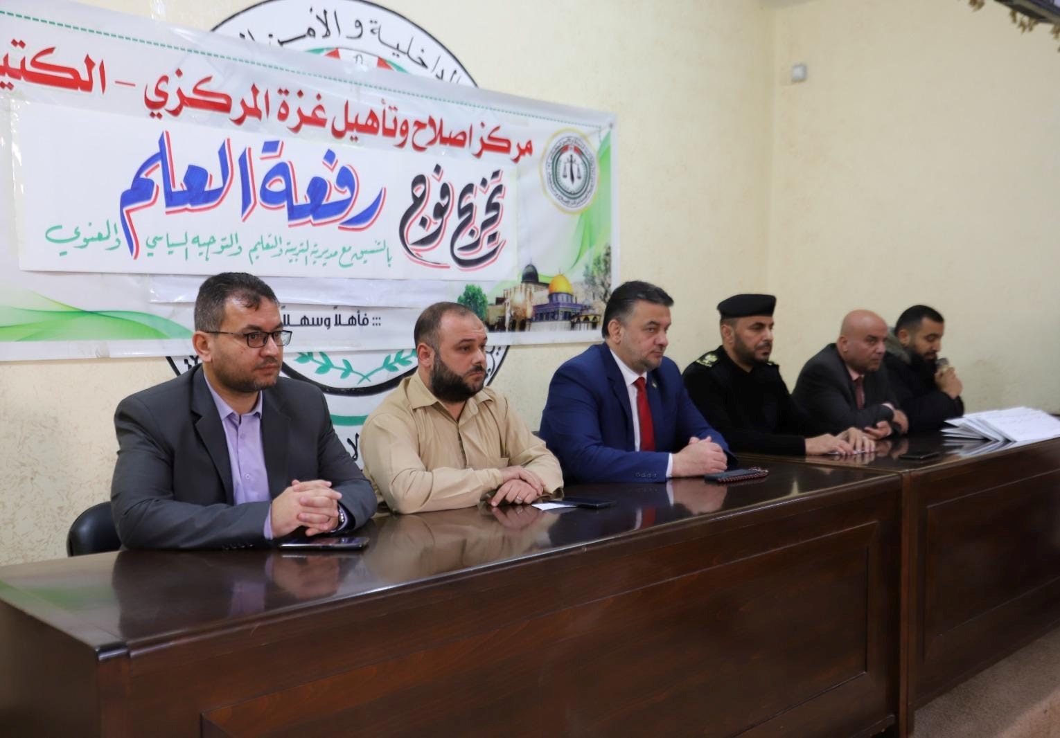 خرّجت هيئة التوجيه السياسي والمعنوي بمحافظة غزة 25 نزيلًا من نزلاء مراكز الإصلاح والتأهيل، الذين اجتازوا مراحل التعليم الموازي، بالتعاون مع وزارة التربية والتعليم، تحت عنوان "رفعة العلم".