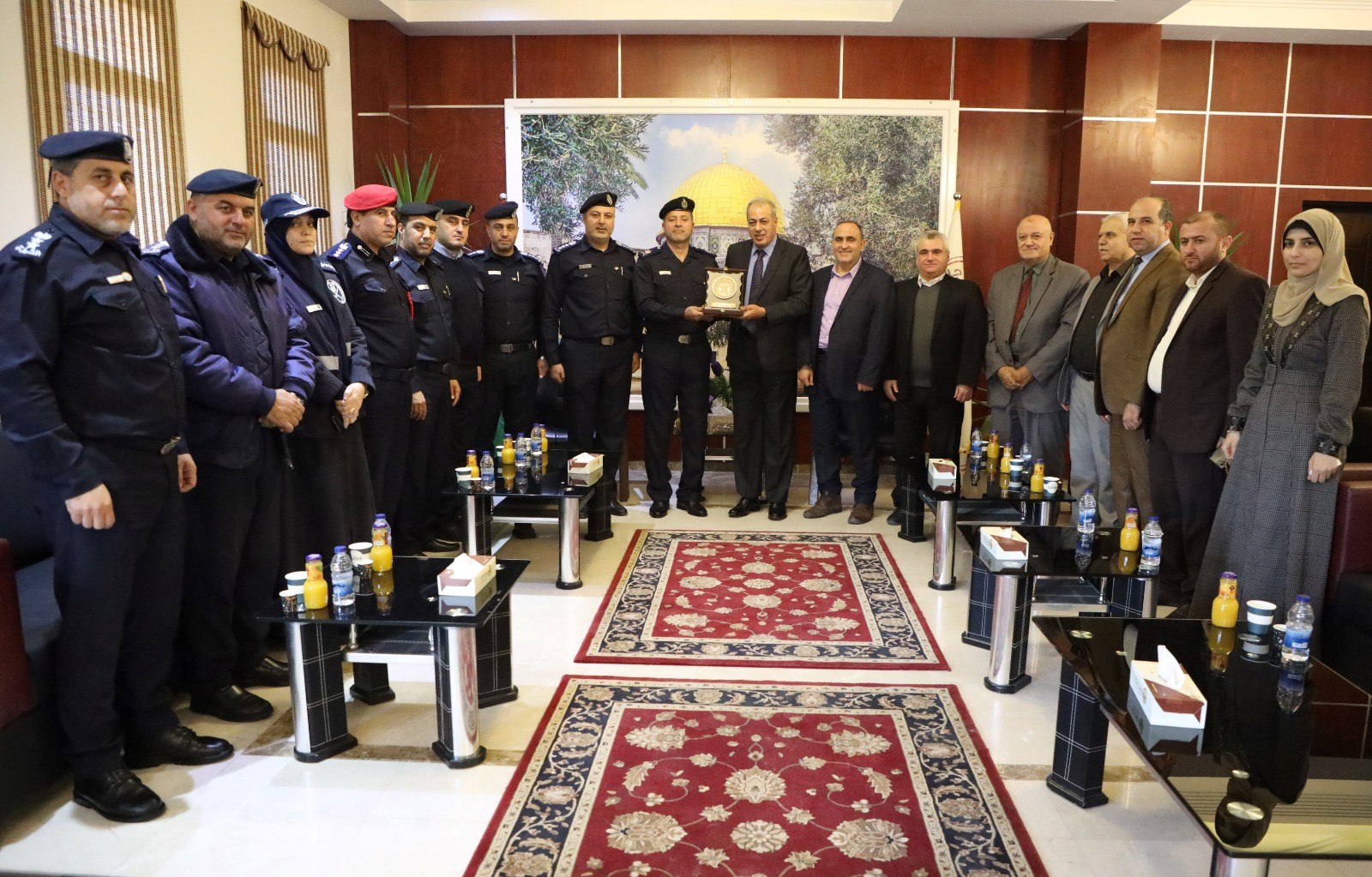 وقدّم اللواء صلاح درع الشرطة لرئيس الجامعة؛ مؤكداً أن الزيارة تأتي في إطار توطيد العلاقات وتعزيز أواصر التعاون المشترك.