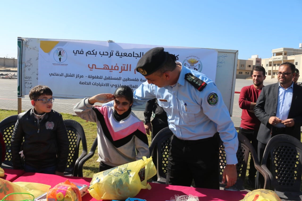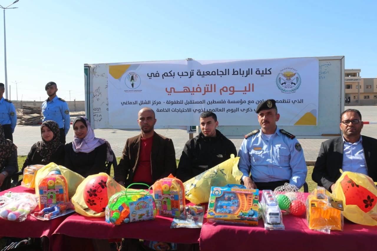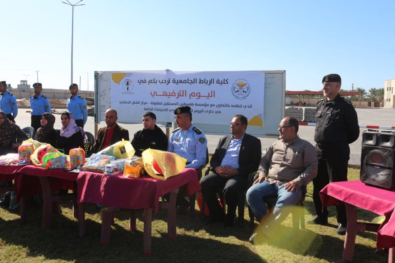 نظمت كلية الرباط الجامعية، في مقرها بخان يونس جنوب قطاع غزة، يومًا ترفيهيًا للأطفال من ذوي الإعاقة والاحتياجات الخاصة من مؤسسة فلسطين المستقبل للطفولة "مركز الشلل الدماغي".