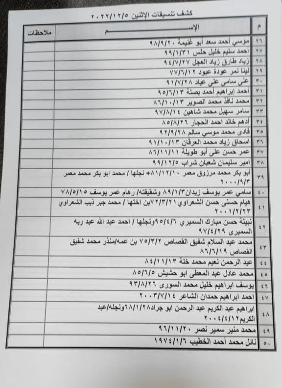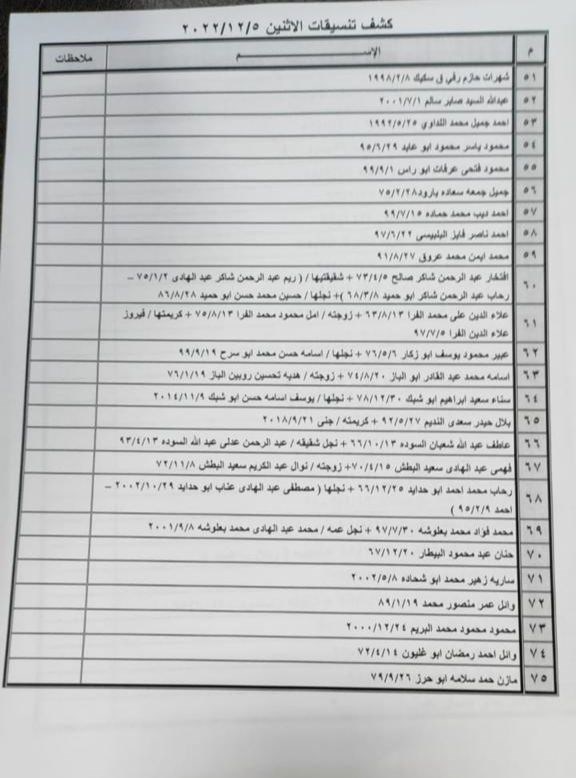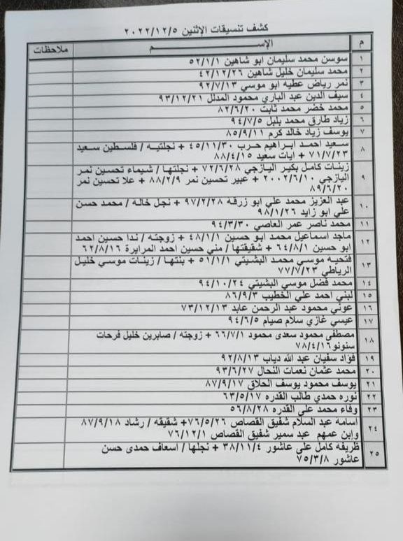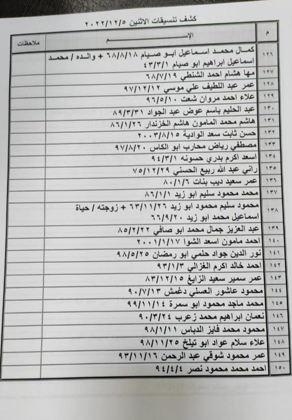 تعلن الهيئة العامة للمعابر والحدود بوزارة الداخلية والأمن الوطني عن وصول كشف "تنسيقات مصرية" للسفر عبر معبر رفح البري يوم غد الإثنين (5 ديسمبر)، والذين عليهم التواجد س 7:00 صباحاً في الصالة الخارجية للمعبر لتسهيل سفرهم.