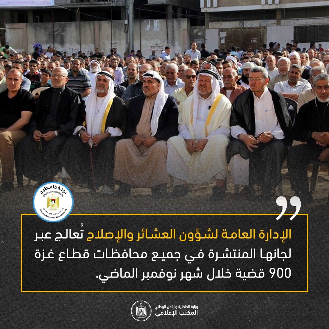 عالجت الإدارة العامة لشؤون العشائر والإصلاح عبر لجانها المنتشرة في جميع محافظات قطاع غزة 941 قضية خلال نوفمبر.