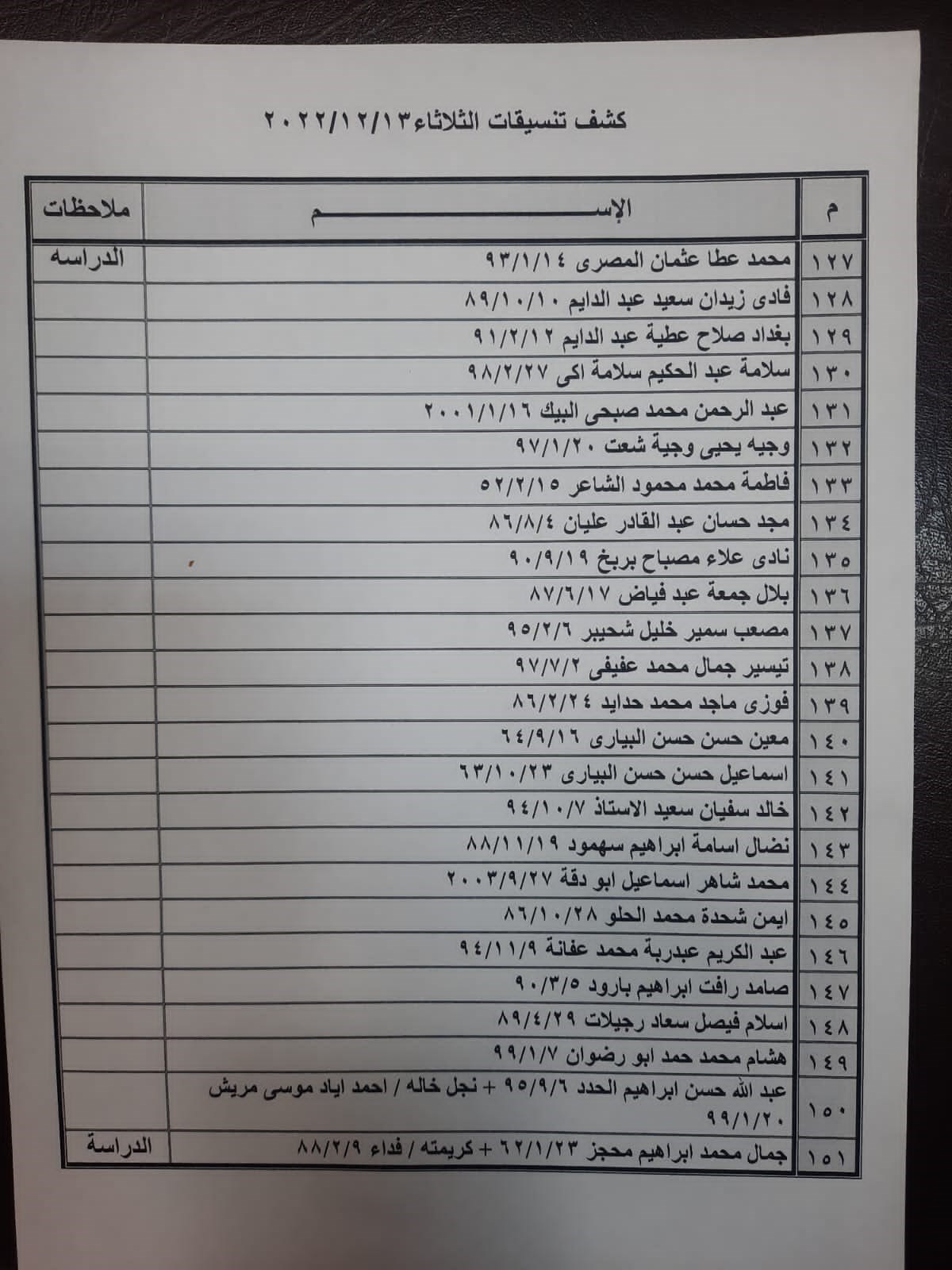 إعلان: كشف "تنسيقات مصرية" للسفر عبر معبر رفح يوم الثلاثاء (13 ديسمبر):