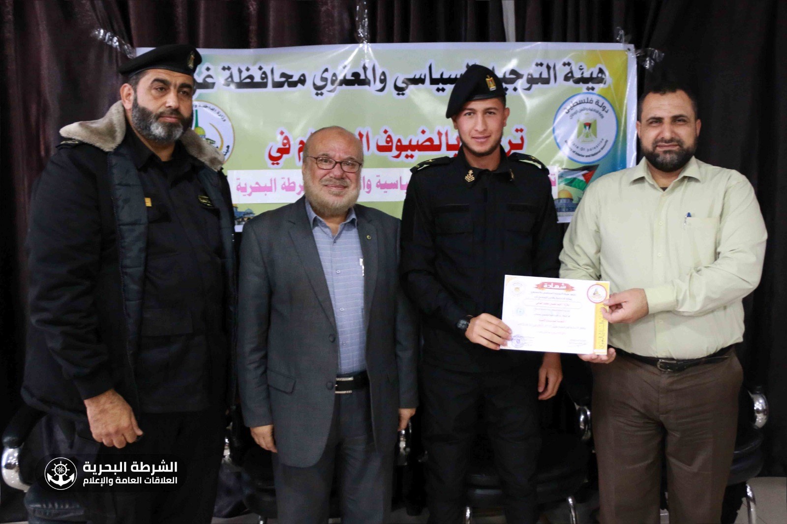 اختتمت هيئة التوجيه السياسي والمعنوي في محافظة غزة برنامج التعبئة الأمنية والسياسية لـ 120 ضباطًا من الشرطة البحرية، بواقع 40 ساعة تدريبية.