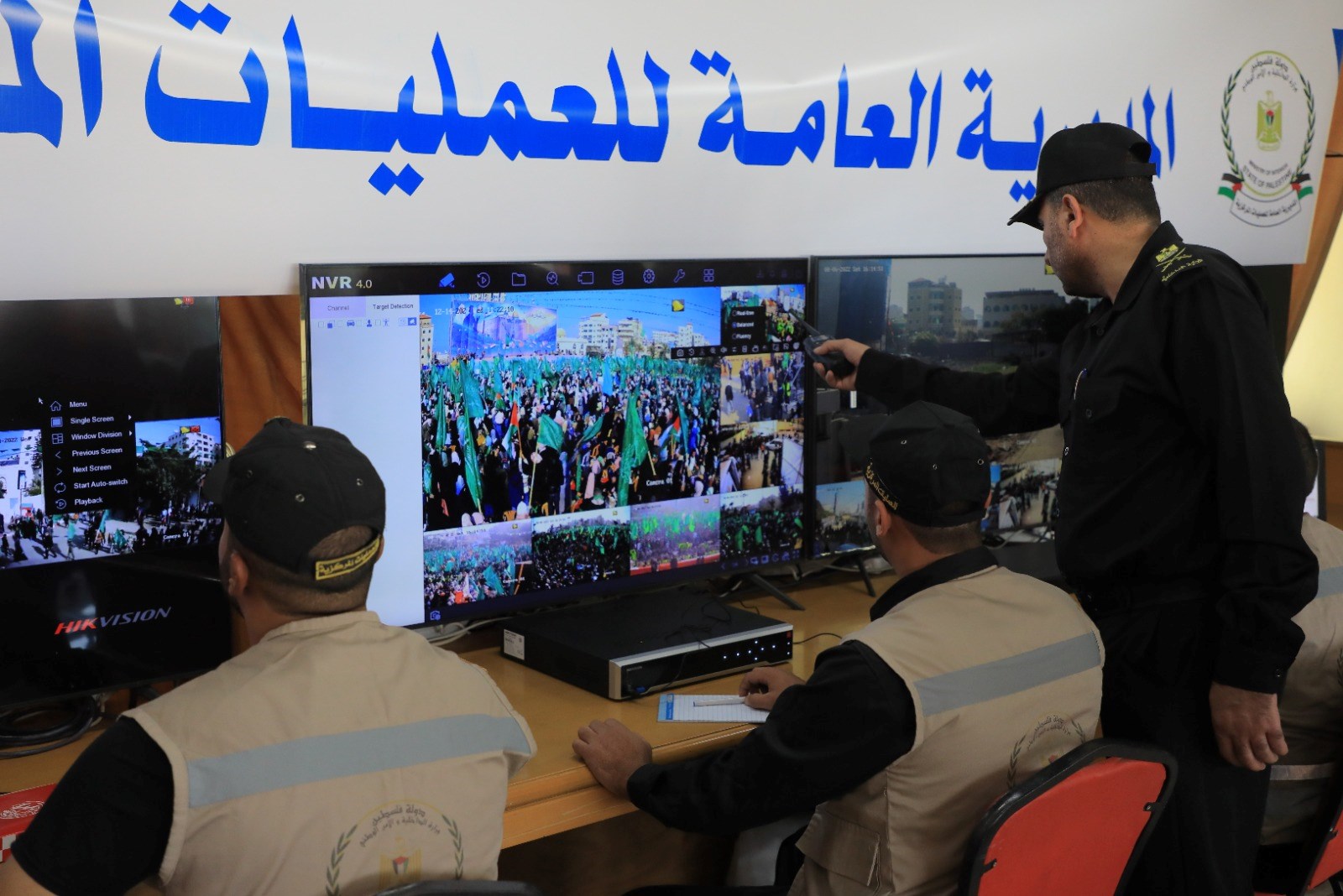 ووفق أمر العمليات الصادر عن قيادة الداخلية، انتشرت عناصر الأجهزة الأمنية منذ ساعات الصباح الأولى في ساحة الكتيبة غرب مدينة غزة والساحات المجاورة والشوارع المؤدية لها؛ في إطار تسهيل حركة المواطنين، ومنعًا للازدحام، وتأمين وصولهم إليها.
