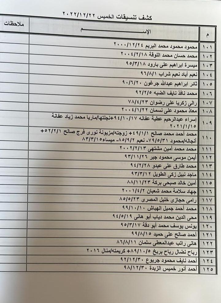 تعلن الهيئة العامة للمعابر والحدود بوزارة الداخلية والأمن الوطني عن وصول كشف "تنسيقات مصرية" للسفر عبر معبر رفح البري يوم الخميس (22 ديسمبر)، والذين عليهم التواجد س 7:00 صباحاً في الصالة الخارجية للمعبر لتسهيل سفرهم.