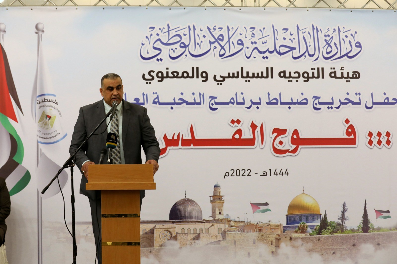 وأضاف اللواء الجريسي "يسعى البرنامج إلى بناء رجل الأمن الفلسطيني بناءً سليماً يقوم على ترسيخ العقيدة السليمة والأخلاق العالية والقيم الرفيعة، والتعامل الحسن مع جميع شرائح المجتمع".