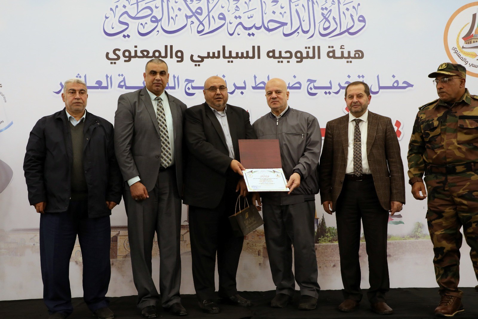 وحضر حفل اختتام البرنامج اللواء ناصر مصلح وكيل وزارة الداخلية والأمن الوطني، وأ. سامي نوفل وكيل مساعد وزير الداخلية والأمن الوطني، واللواء د. ياسر أبو وطفة مدير عام قوى الأمن الداخلي، واللواء أبو عبيدة الجراح قائد قوات الأمن الوطني، واللواء د. محمد الجريسي رئيس التوجيه السياسي، ود. نصر الدين مدوخ رئيس جامعة الأمة، ولفيف من قادة الأجهزة الأمنية.