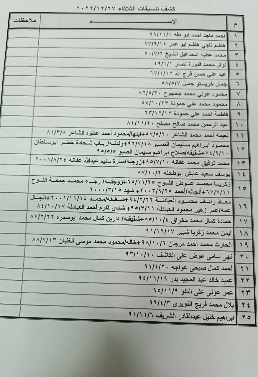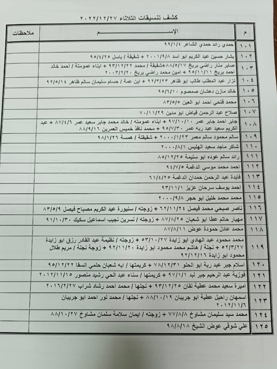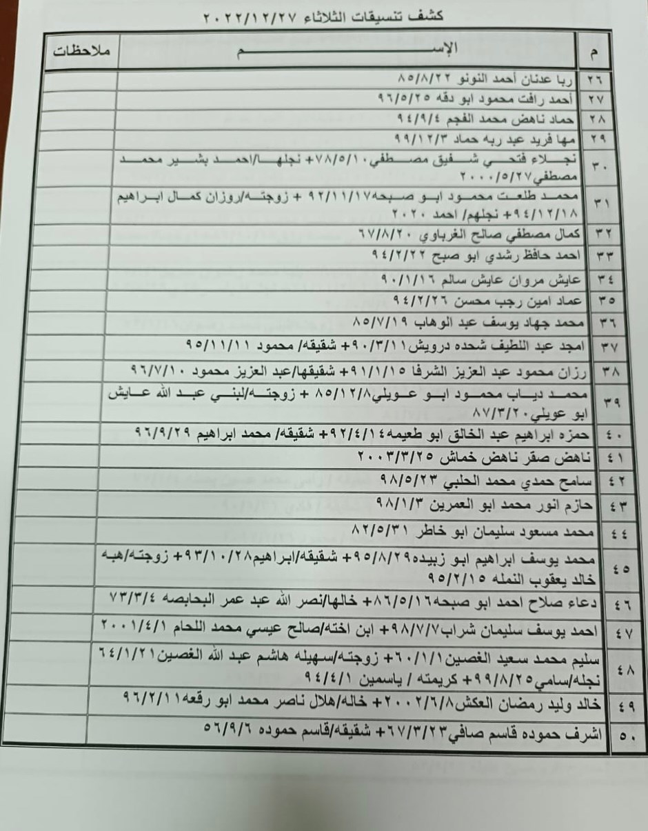 إعلان: كشف "تنسيقات مصرية" للسفر عبر معبر رفح يوم الثلاثاء (27 ديسمبر):