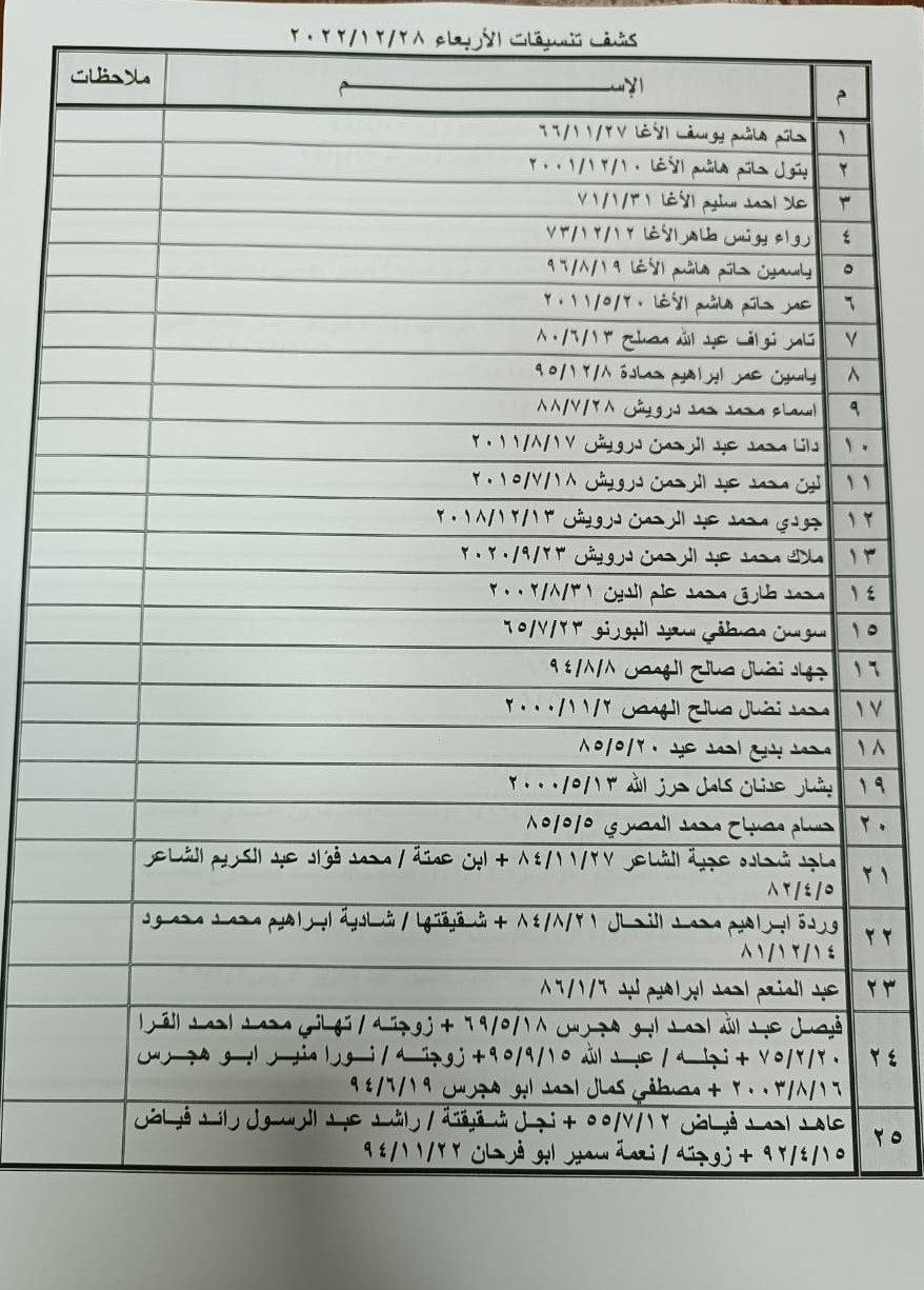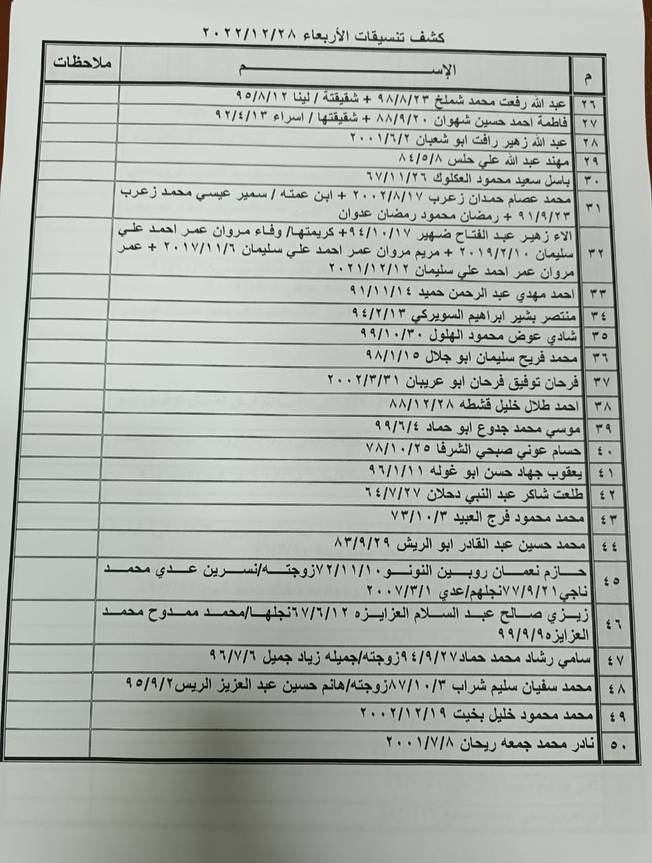 تعلن الهيئة العامة للمعابر والحدود بوزارة الداخلية والأمن الوطني عن وصول كشف "تنسيقات مصرية" للسفر عبر معبر رفح البري يوم الأربعاء (28 ديسمبر)، والذين عليهم التواجد س 7:00 صباحاً في الصالة الخارجية للمعبر لتسهيل سفرهم.
