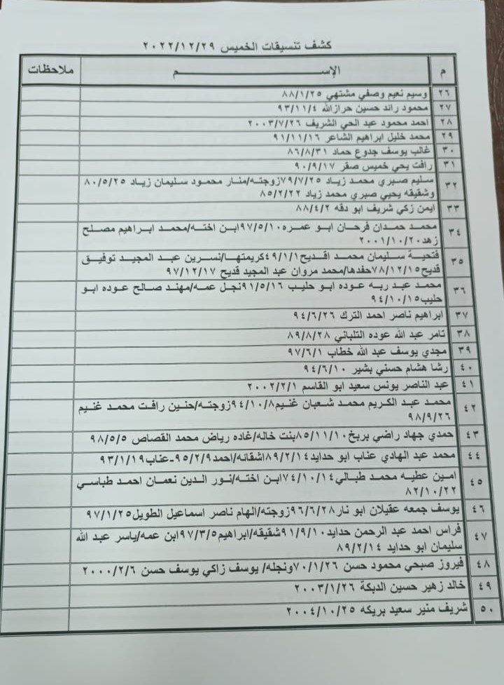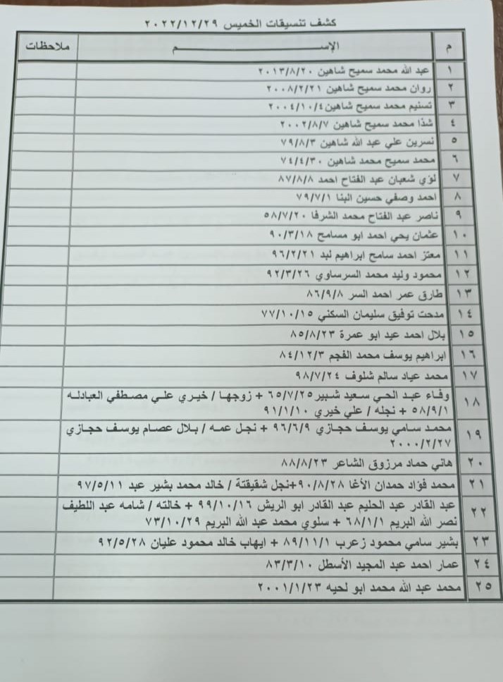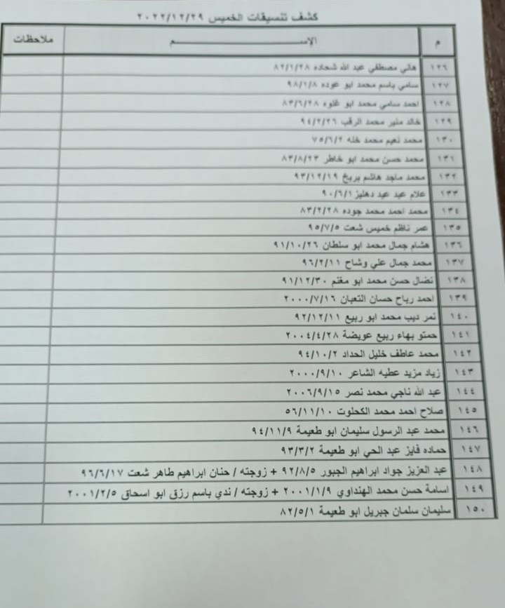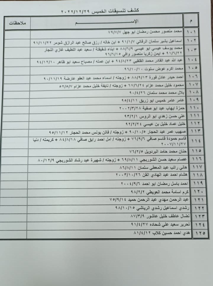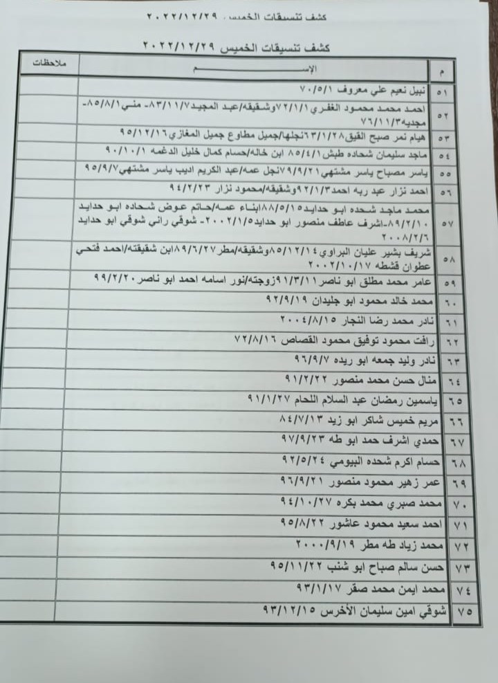 تعلن الهيئة العامة للمعابر والحدود بوزارة الداخلية والأمن الوطني عن وصول كشف "تنسيقات مصرية" للسفر عبر معبر رفح البري يوم الخميس (29 ديسمبر)، والذين عليهم التواجد س 7:00 صباحاً في الصالة الخارجية للمعبر لتسهيل سفرهم.