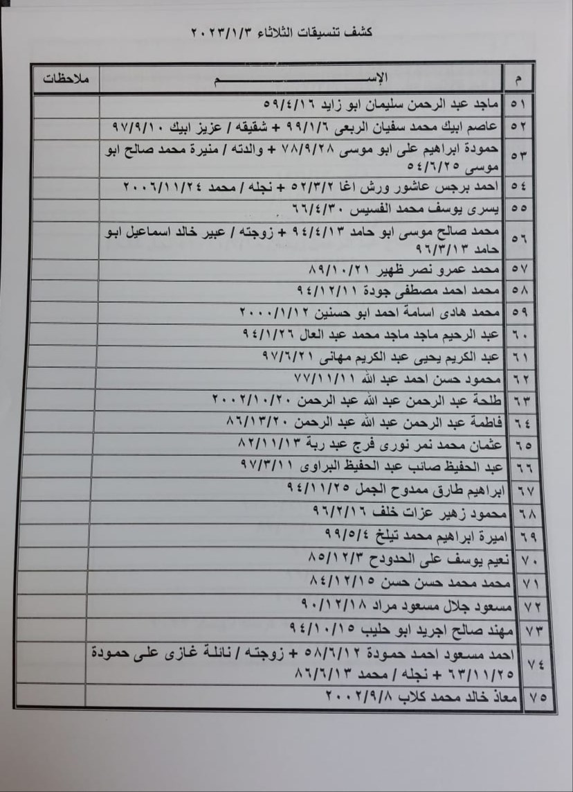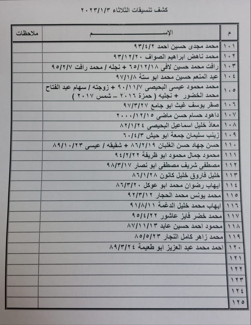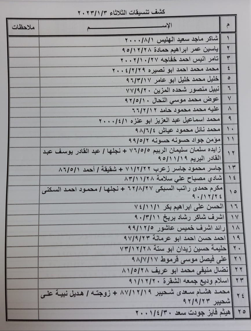تعلن الهيئة العامة للمعابر والحدود بوزارة الداخلية والأمن الوطني عن وصول كشف "تنسيقات مصرية" للسفر عبر معبر رفح البري يوم الثلاثاء (3 يناير)، والذين عليهم التواجد س 7:00 صباحاً في الصالة الخارجية للمعبر لتسهيل سفرهم.