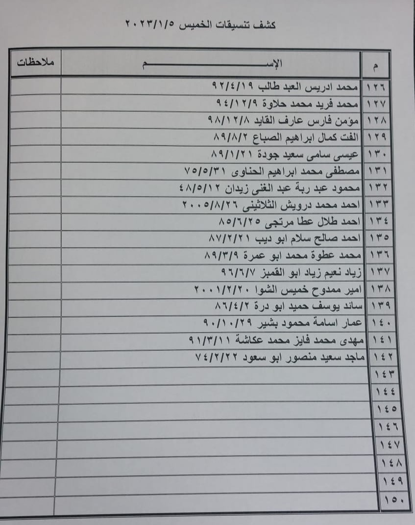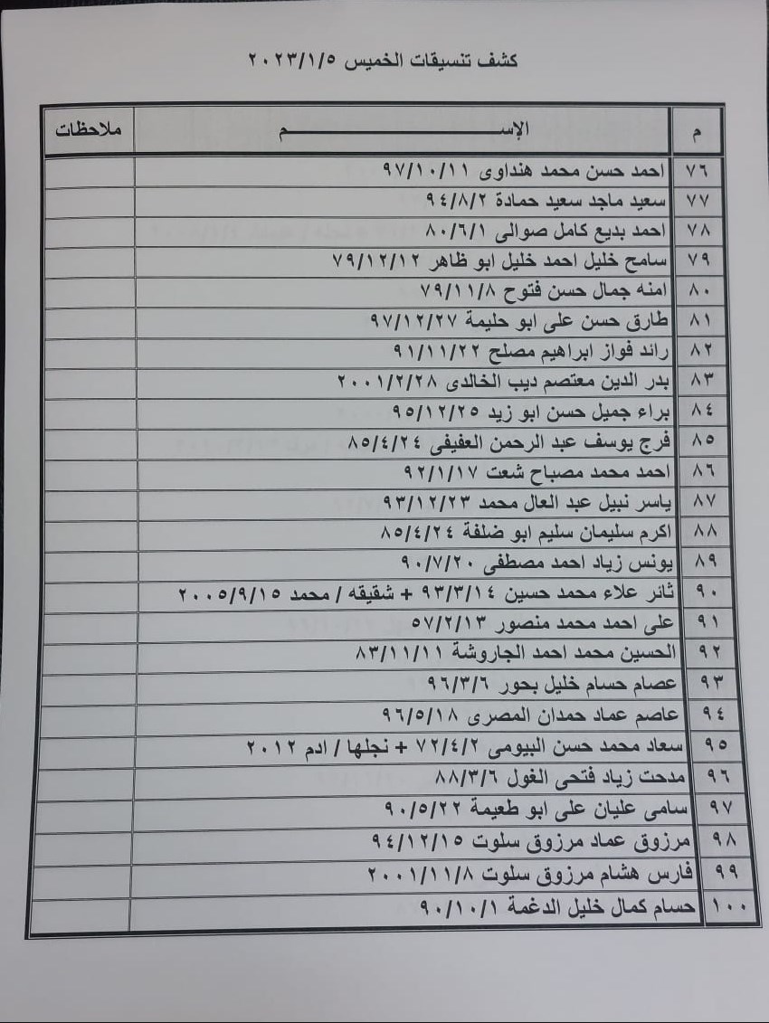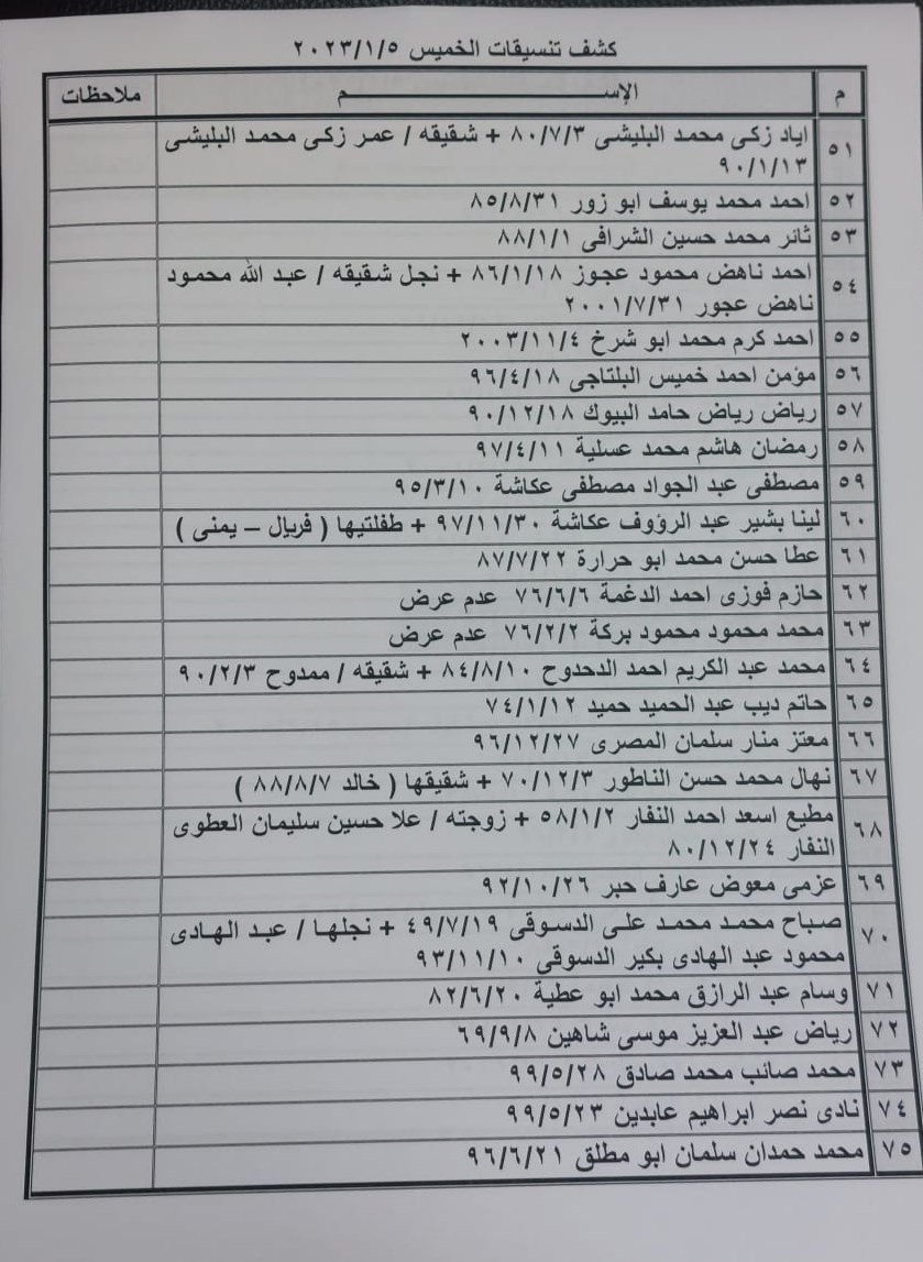 تعلن الهيئة العامة للمعابر والحدود بوزارة الداخلية والأمن الوطني عن وصول كشف "تنسيقات مصرية" للسفر عبر معبر رفح البري يوم غد الخميس (5 يناير)، والذين عليهم التواجد س 7:00 صباحاً في الصالة الخارجية للمعبر لتسهيل سفرهم.