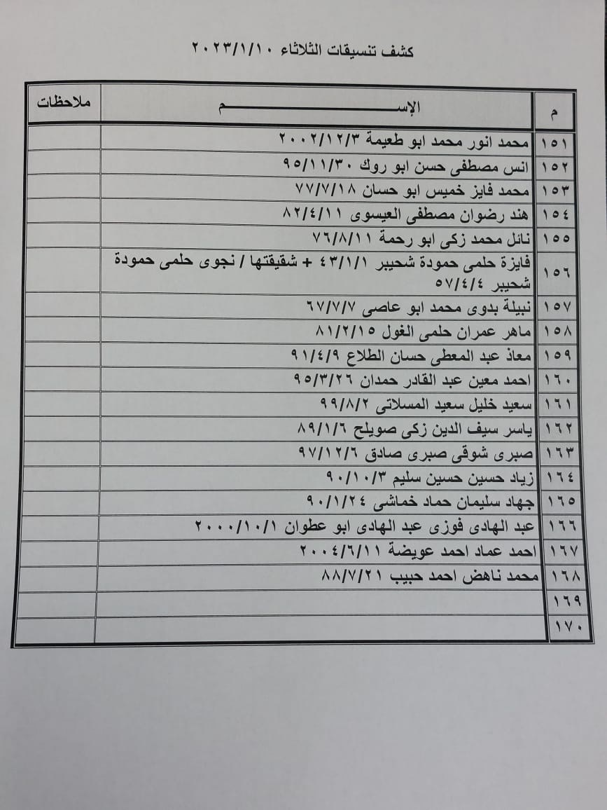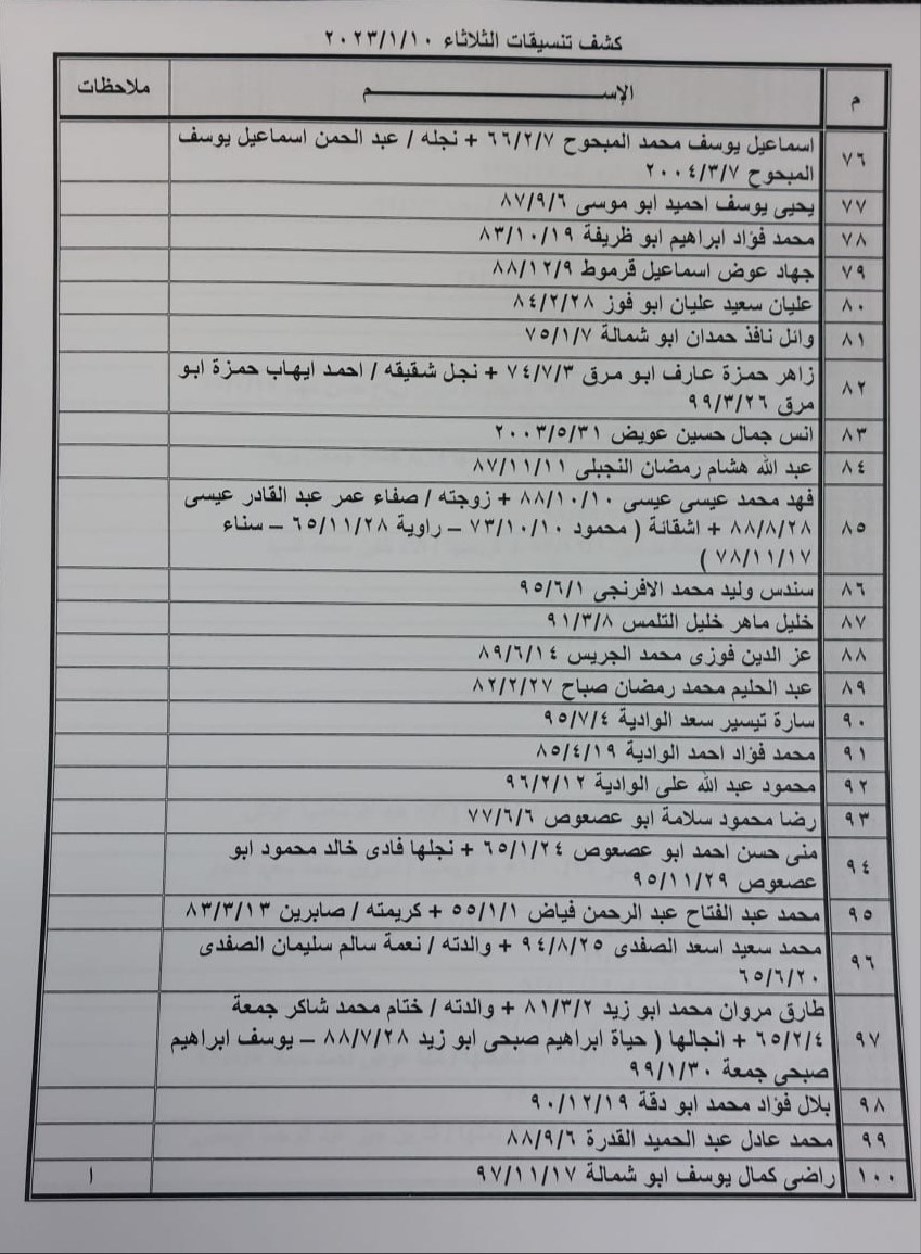 تعلن الهيئة العامة للمعابر والحدود بوزارة الداخلية والأمن الوطني عن وصول كشف "تنسيقات مصرية" للسفر عبر معبر رفح البري يوم الثلاثاء (10 يناير)، والذين عليهم التواجد س 7:00 صباحاً في الصالة الخارجية للمعبر لتسهيل سفرهم.