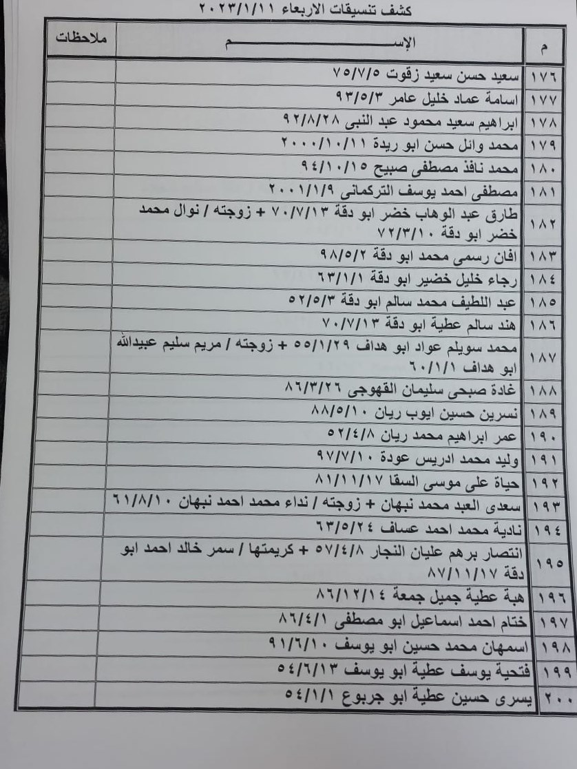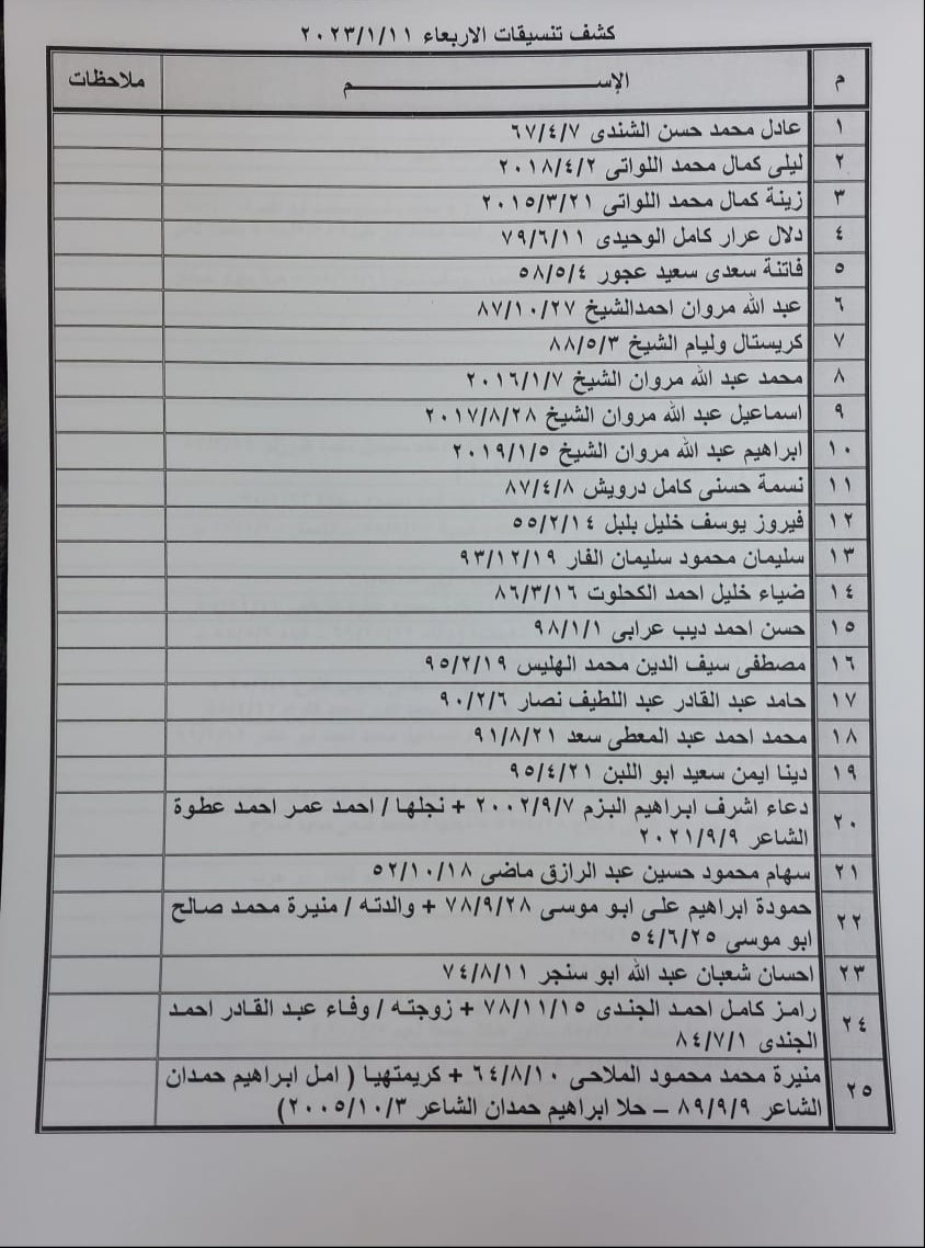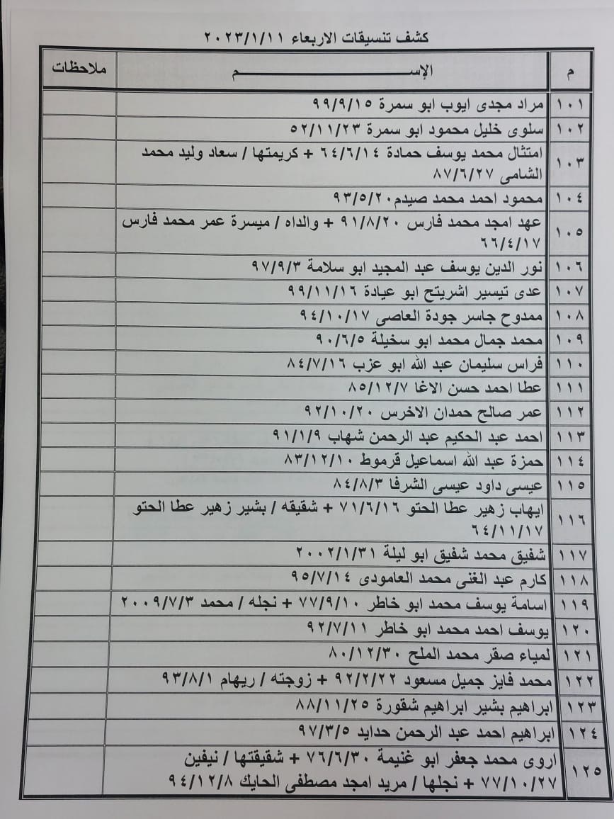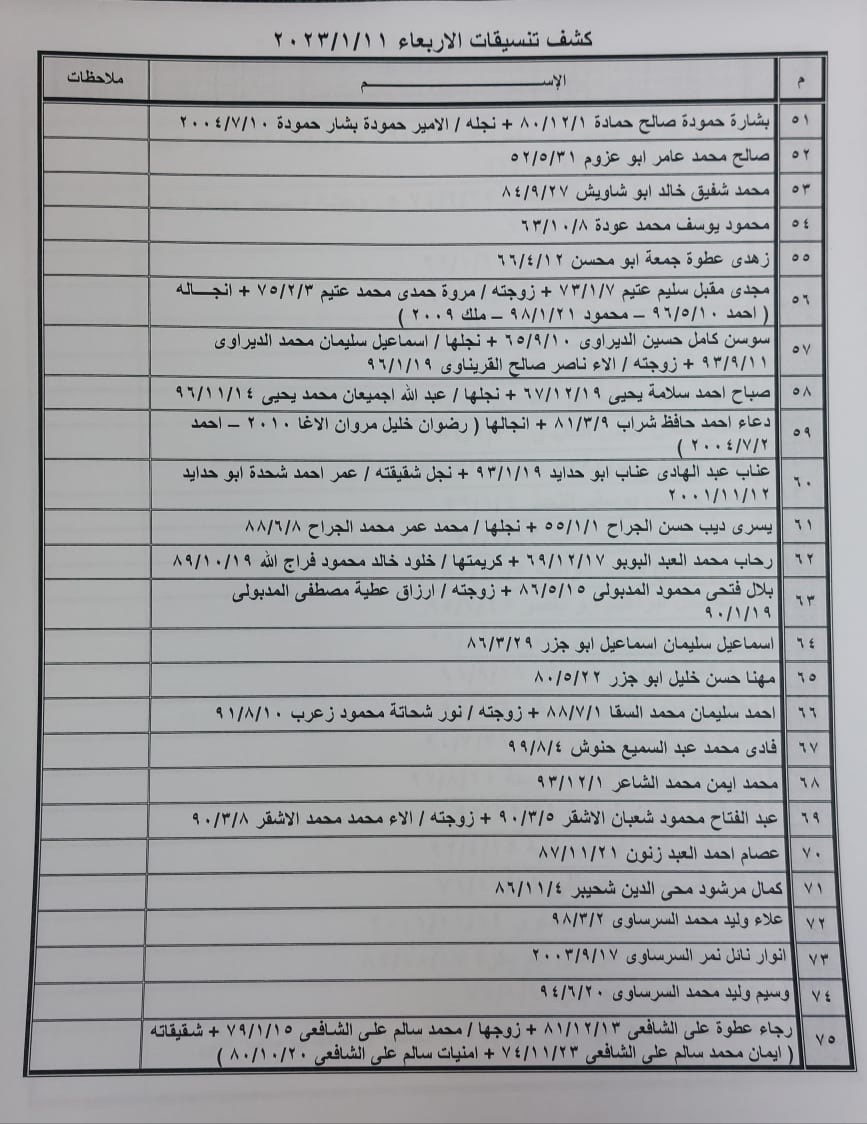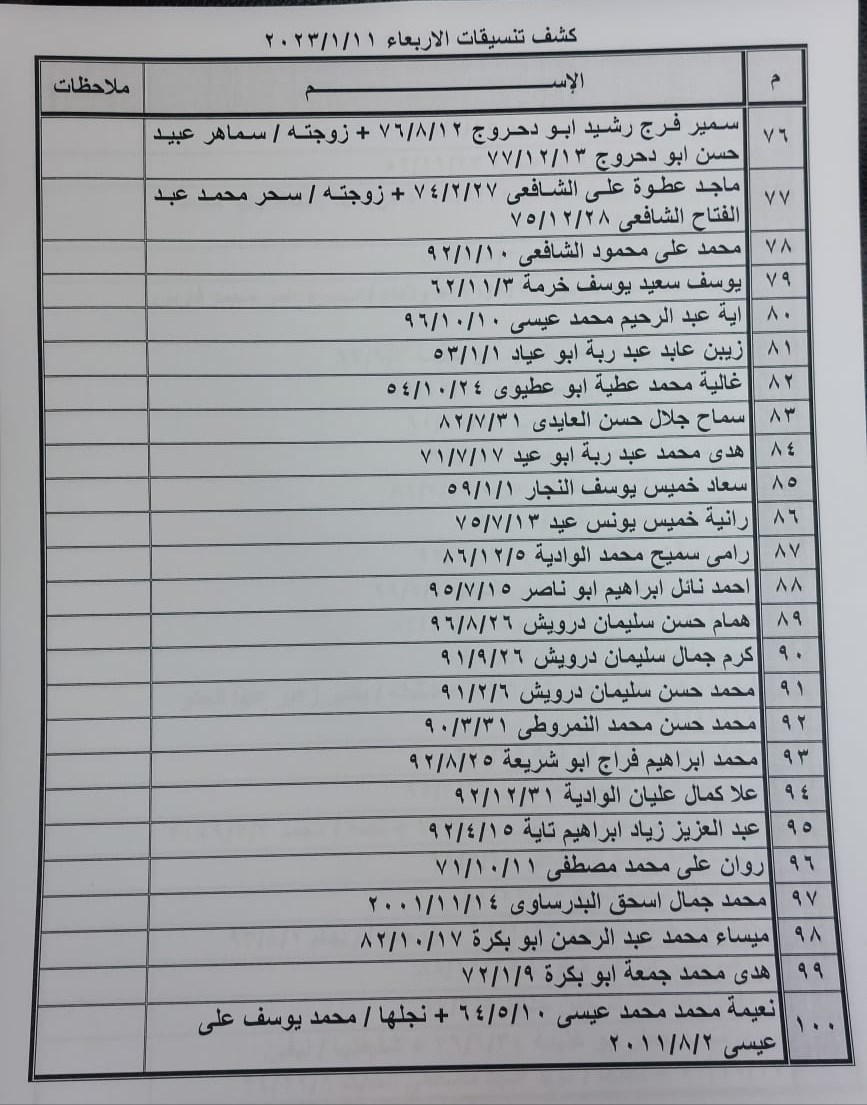 تعلن الهيئة العامة للمعابر والحدود بوزارة الداخلية والأمن الوطني عن وصول كشف "تنسيقات مصرية" للسفر عبر معبر رفح البري يوم الأربعاء (11 يناير)، والذين عليهم التواجد س 7:00 صباحاً في الصالة الخارجية للمعبر لتسهيل سفرهم.