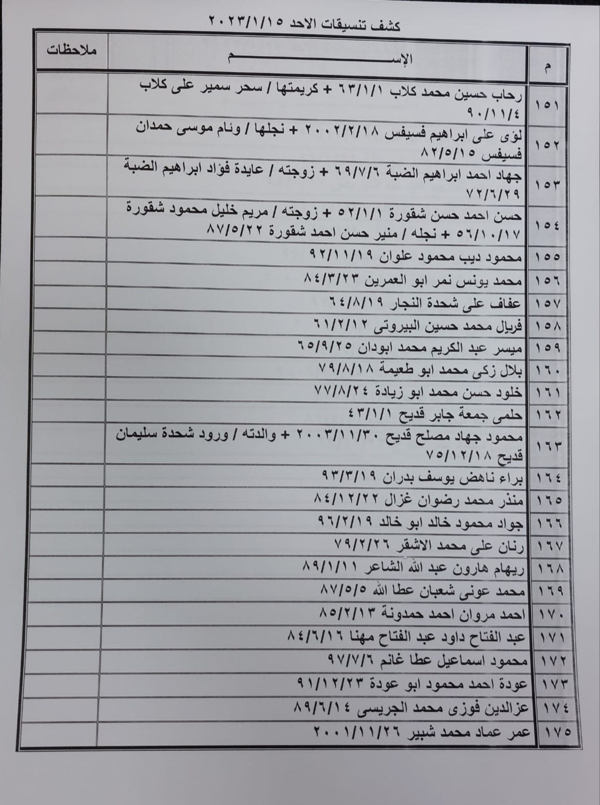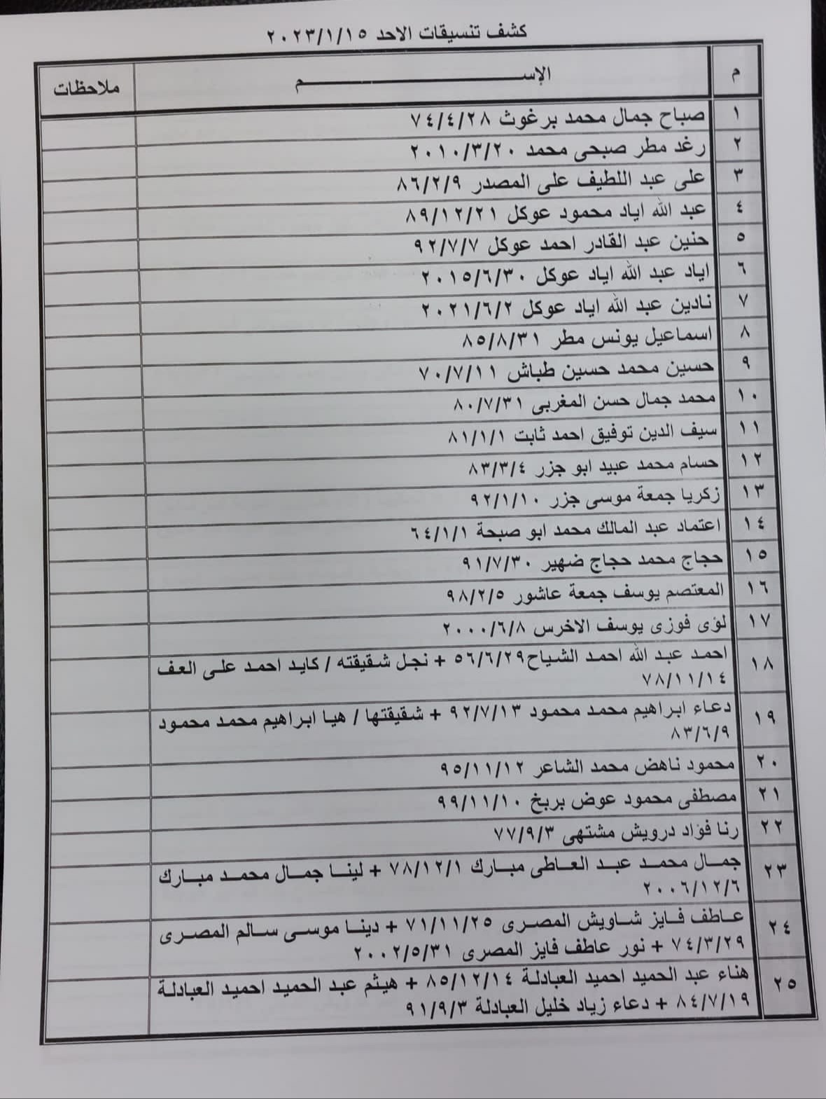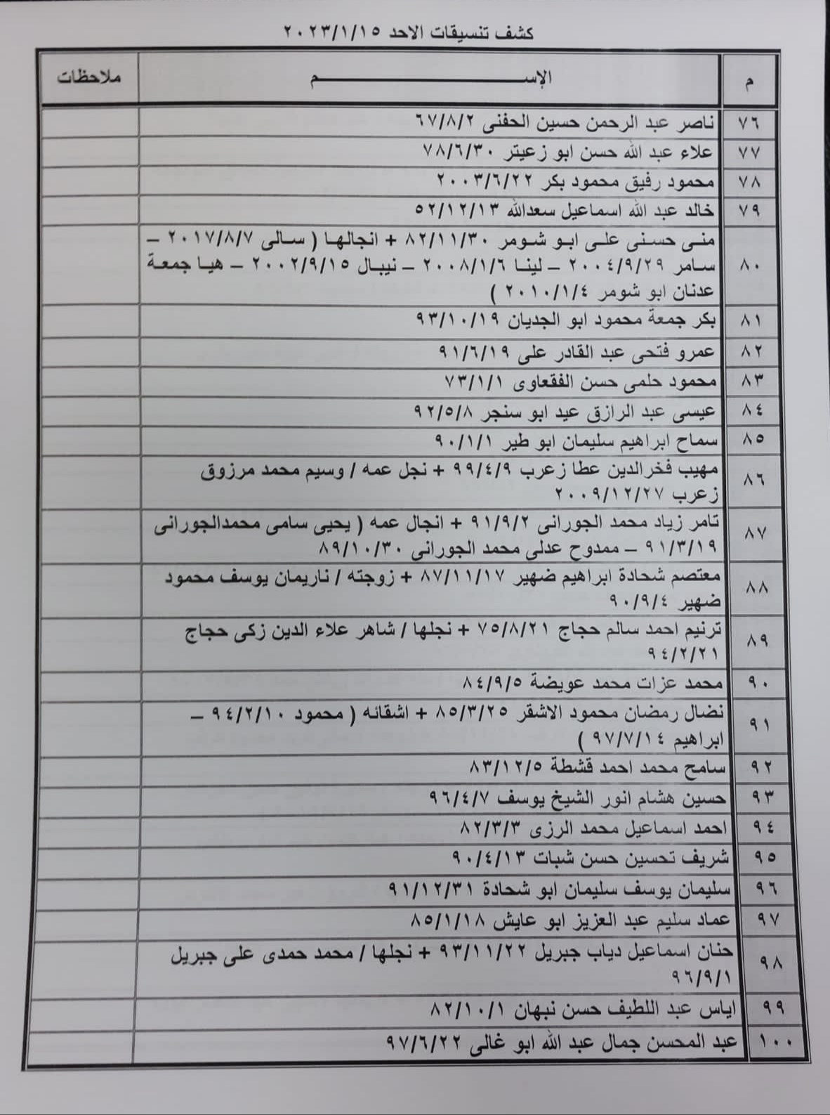 تعلن الهيئة العامة للمعابر والحدود بوزارة الداخلية والأمن الوطني عن وصول كشف "تنسيقات مصرية" للسفر عبر معبر رفح البري يوم الأحد (15 يناير)، والذين عليهم التواجد س 7:00 صباحاً في الصالة الخارجية للمعبر لتسهيل سفرهم.
