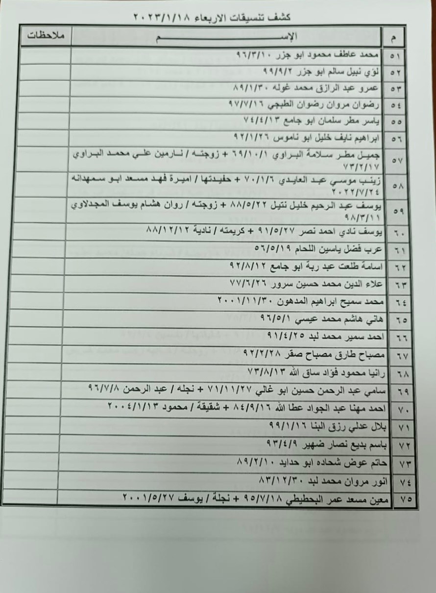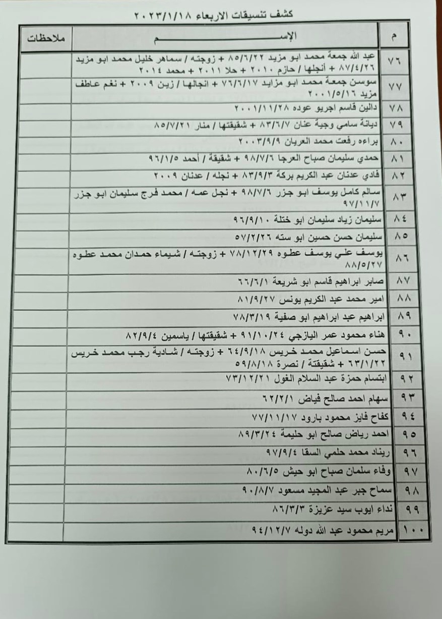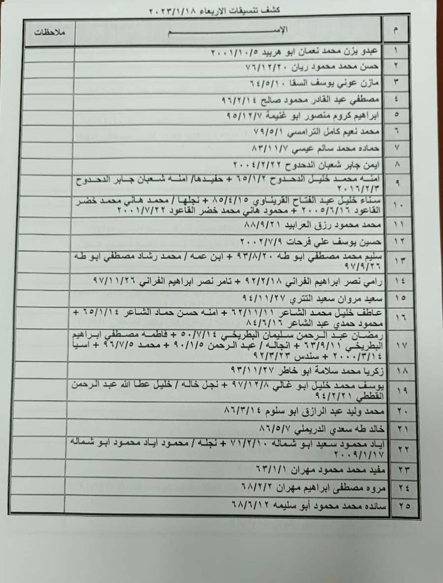 تعلن الهيئة العامة للمعابر والحدود بوزارة الداخلية والأمن الوطني عن وصول كشف "تنسيقات مصرية" للسفر عبر معبر رفح البري يوم الأربعاء (18 يناير)، والذين عليهم التواجد س 7:00 صباحاً في الصالة الخارجية للمعبر لتسهيل سفرهم.