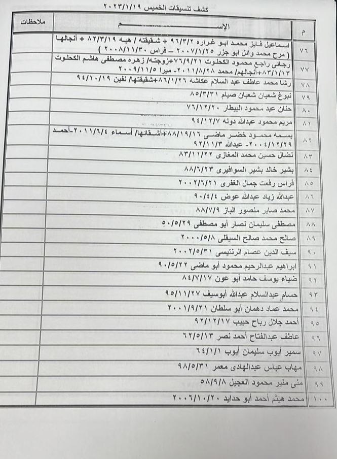 تعلن الهيئة العامة للمعابر والحدود بوزارة الداخلية والأمن الوطني عن وصول كشف "تنسيقات مصرية" للسفر عبر معبر رفح البري يوم غد الخميس (19 يناير)، والذين عليهم التواجد س 7:00 صباحاً في الصالة الخارجية للمعبر لتسهيل سفرهم.