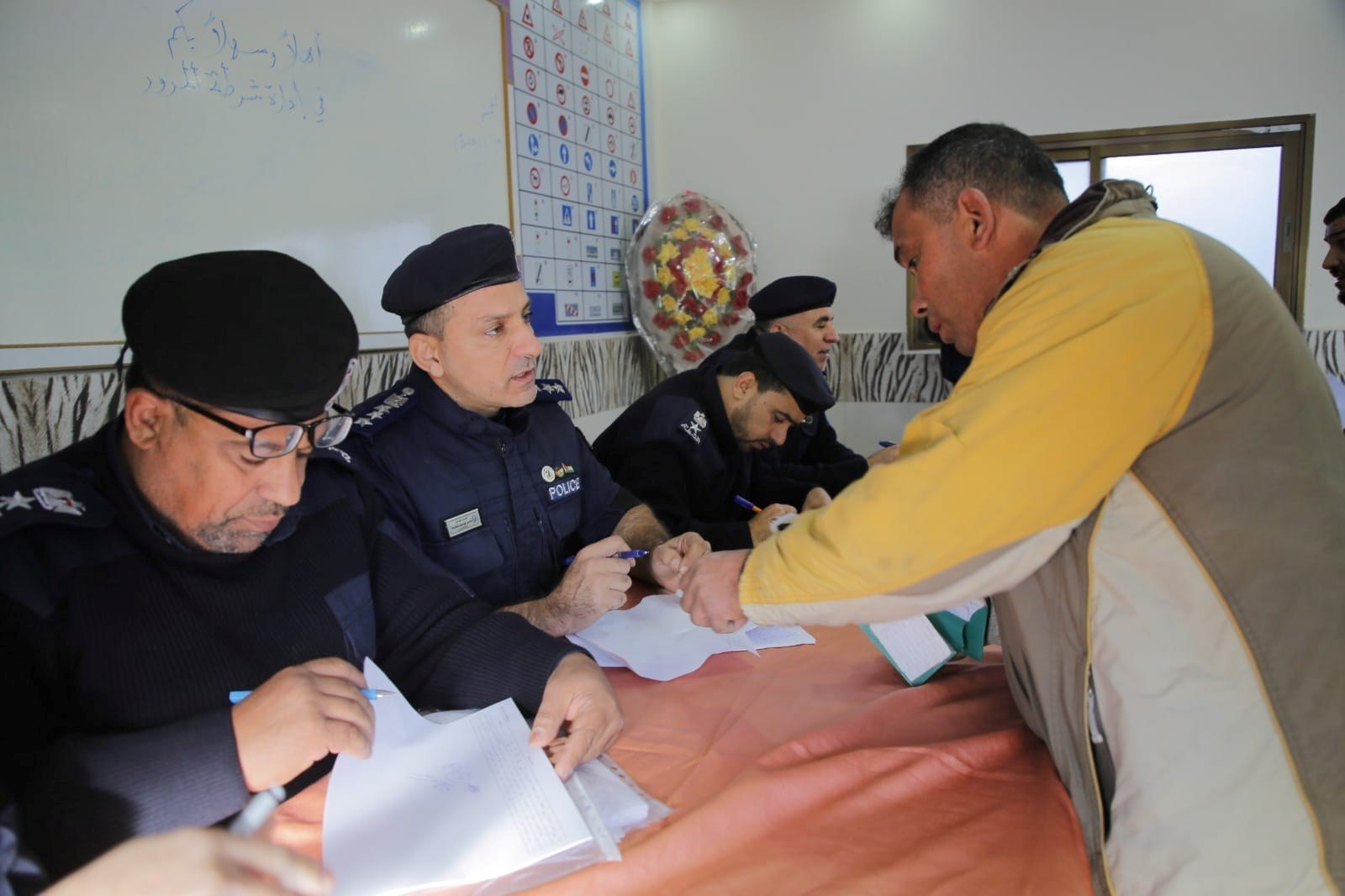 واستمع العميد شحادة إلى استفسارات المواطنين والرد عليها فيما يتعلق بقضايا سير المركبات ومخالفاتها، مقدمًا عددًا من التسهيلات للسائقين.