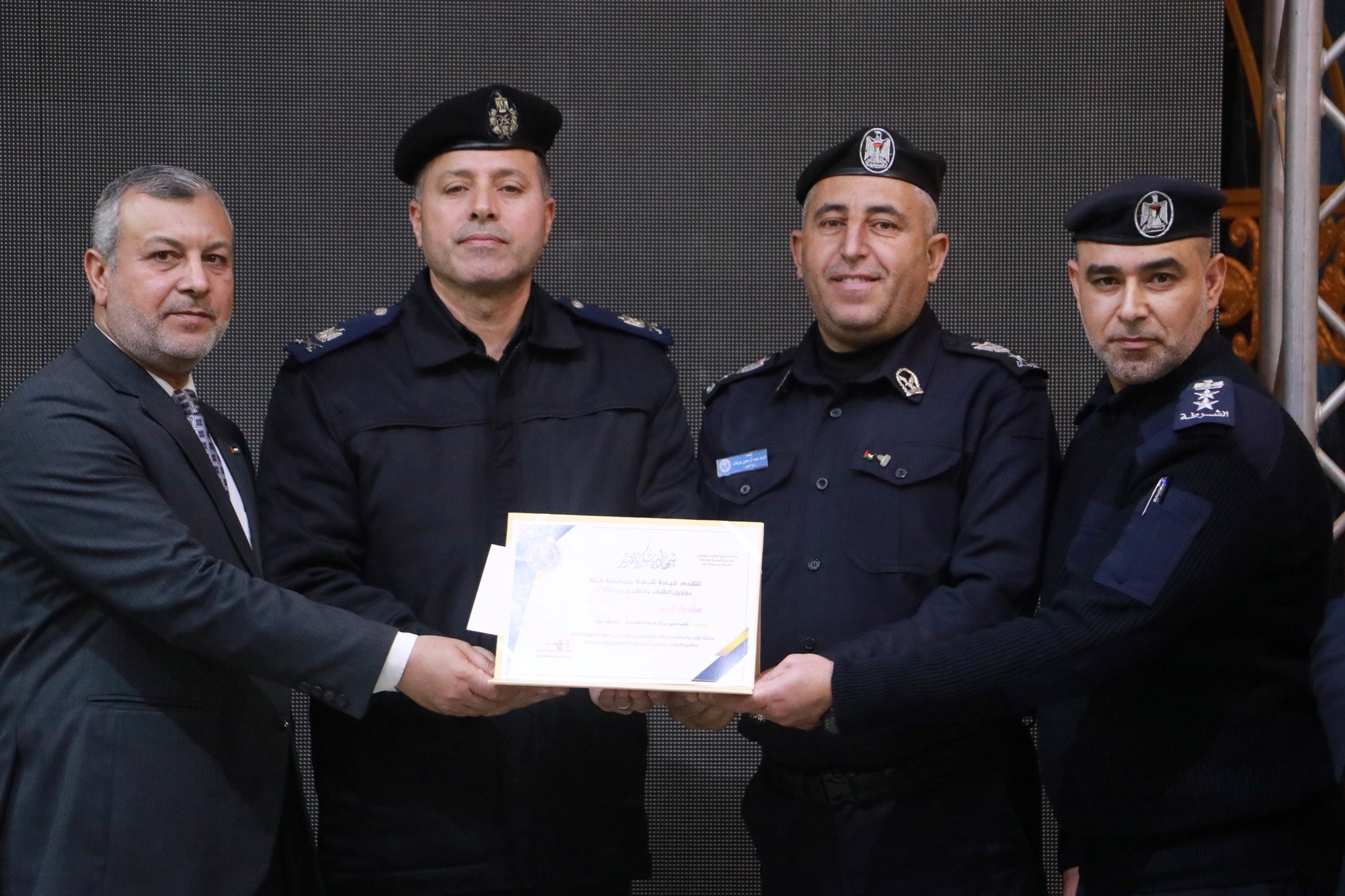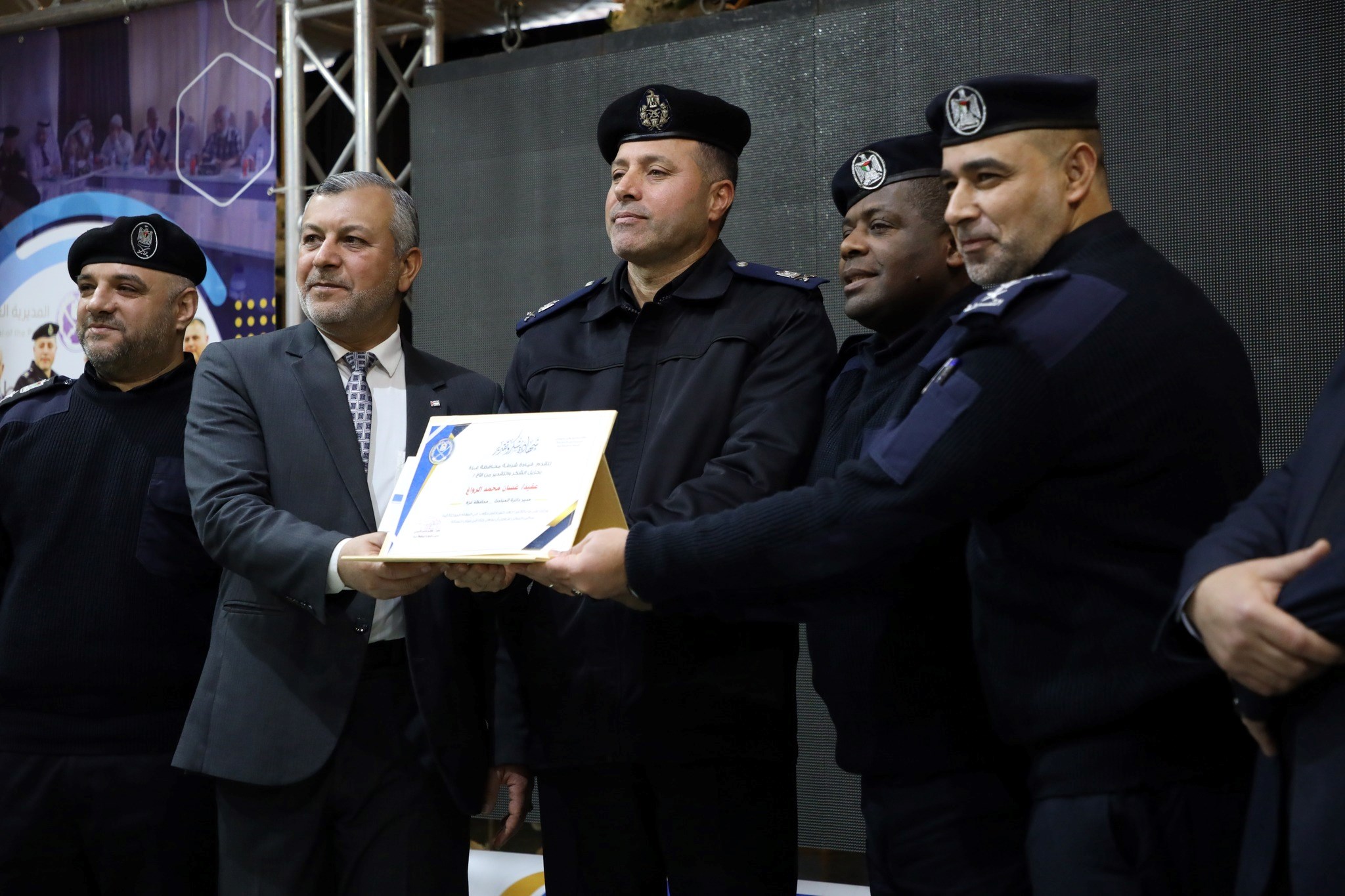 واختُتم الحفل بتكريم قيادة الشرطة، للنائب العام د. محمد النحال ورؤساء نيابة غزة، بالإضافة إلى تكريم مدراء مراكز الشرطة وأقسامها، ومدراء الدوائر والفروع المتخصصة في شرطة محافظة غزة.