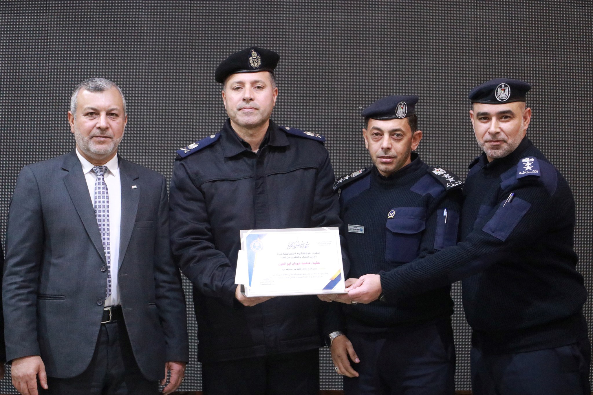 وحضر حفل التكريم، مدير عام الشرطة اللواء محمود صلاح، والنائب العام د. محمد النحال، ومستشار وزير الداخلية لشؤون العشائر د. علاء الدين العكلوك، ومدير شرطة محافظة غزة العقيد هاشم السرحي، ونائبه، وعدداً من مدراء الإدارات والوحدات، وضباط شرطة المحافظة، بحضور رؤساء نيابة محافظة غزة، وعدداً من المخاتير ورجال الإصلاح.