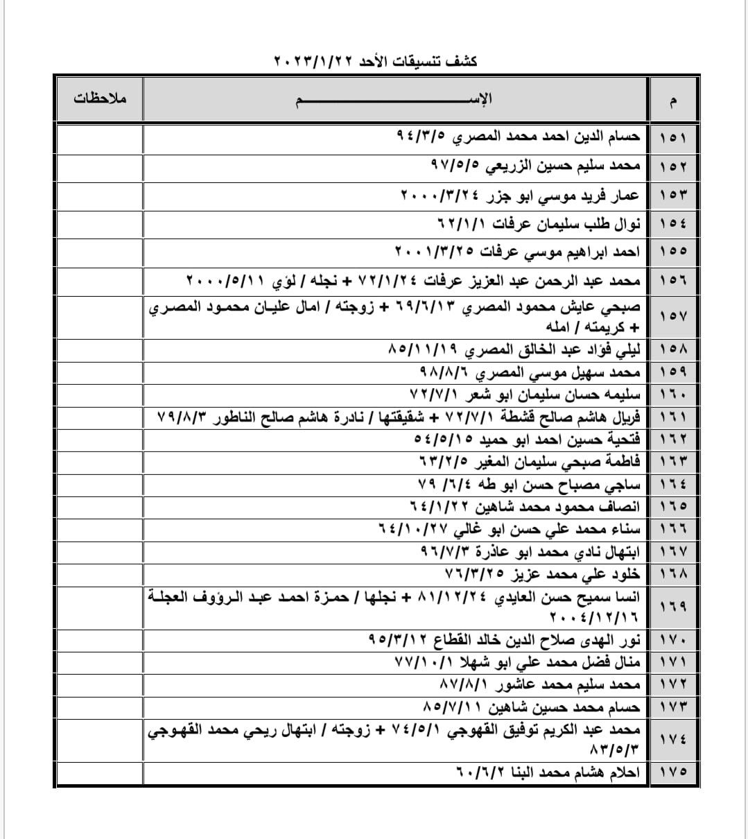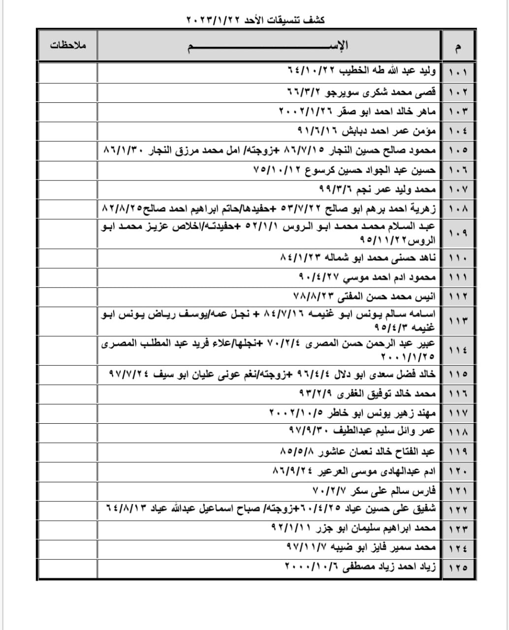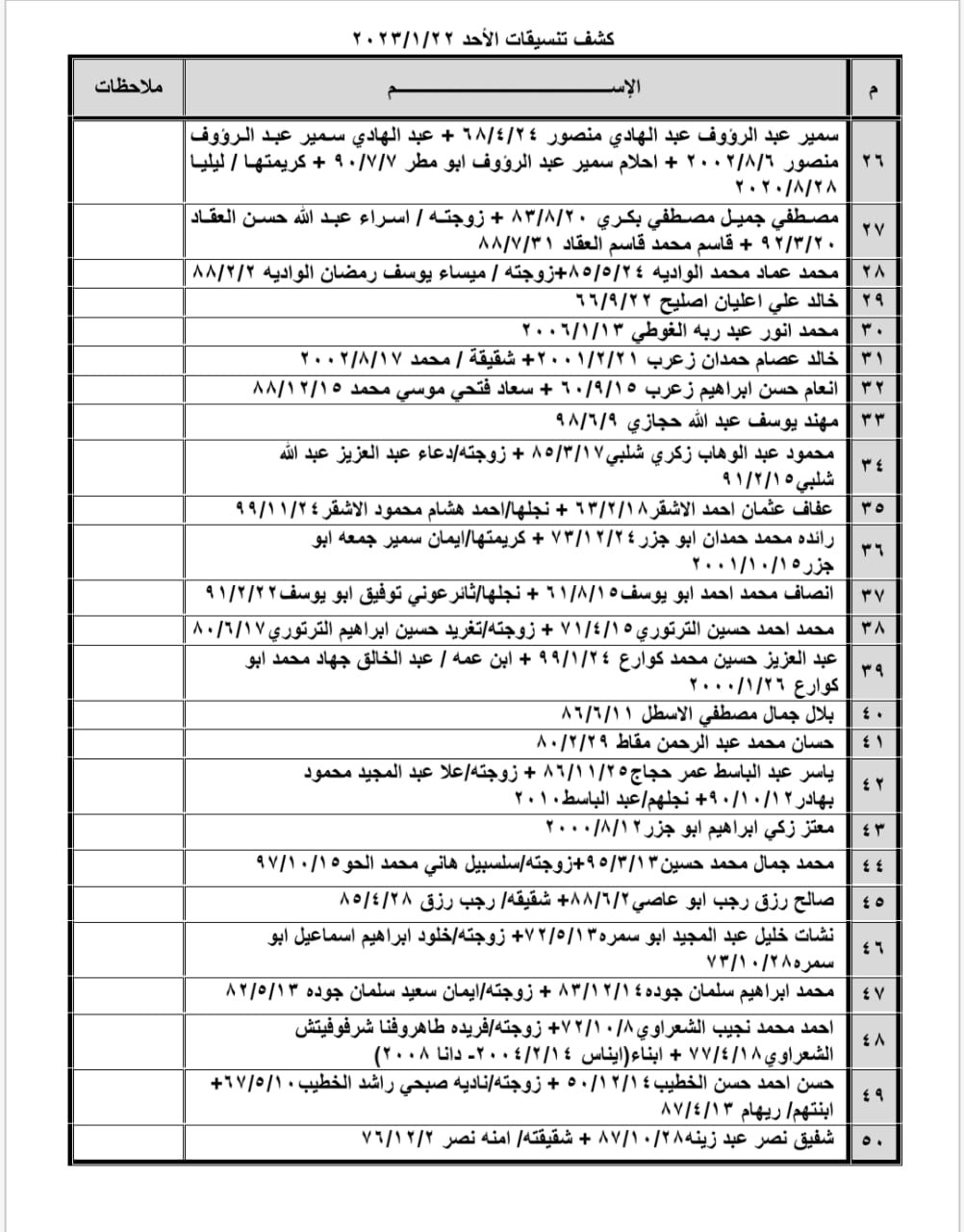 تعلن الهيئة العامة للمعابر والحدود بوزارة الداخلية والأمن الوطني عن وصول كشف "تنسيقات مصرية" للسفر عبر معبر رفح البري يوم غد الأحد (22 يناير)، والذين عليهم التواجد س 7:00 صباحاً في الصالة الخارجية للمعبر لتسهيل سفرهم.
