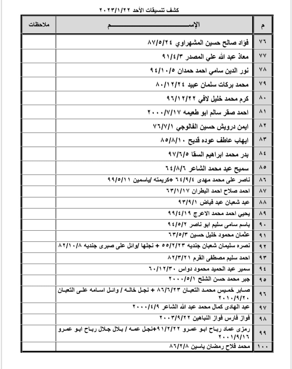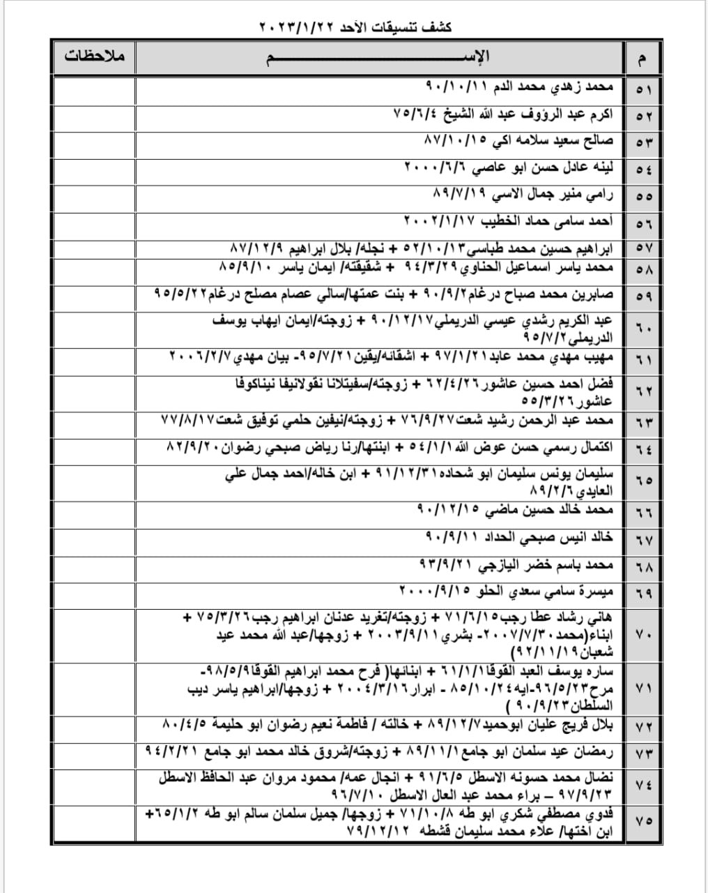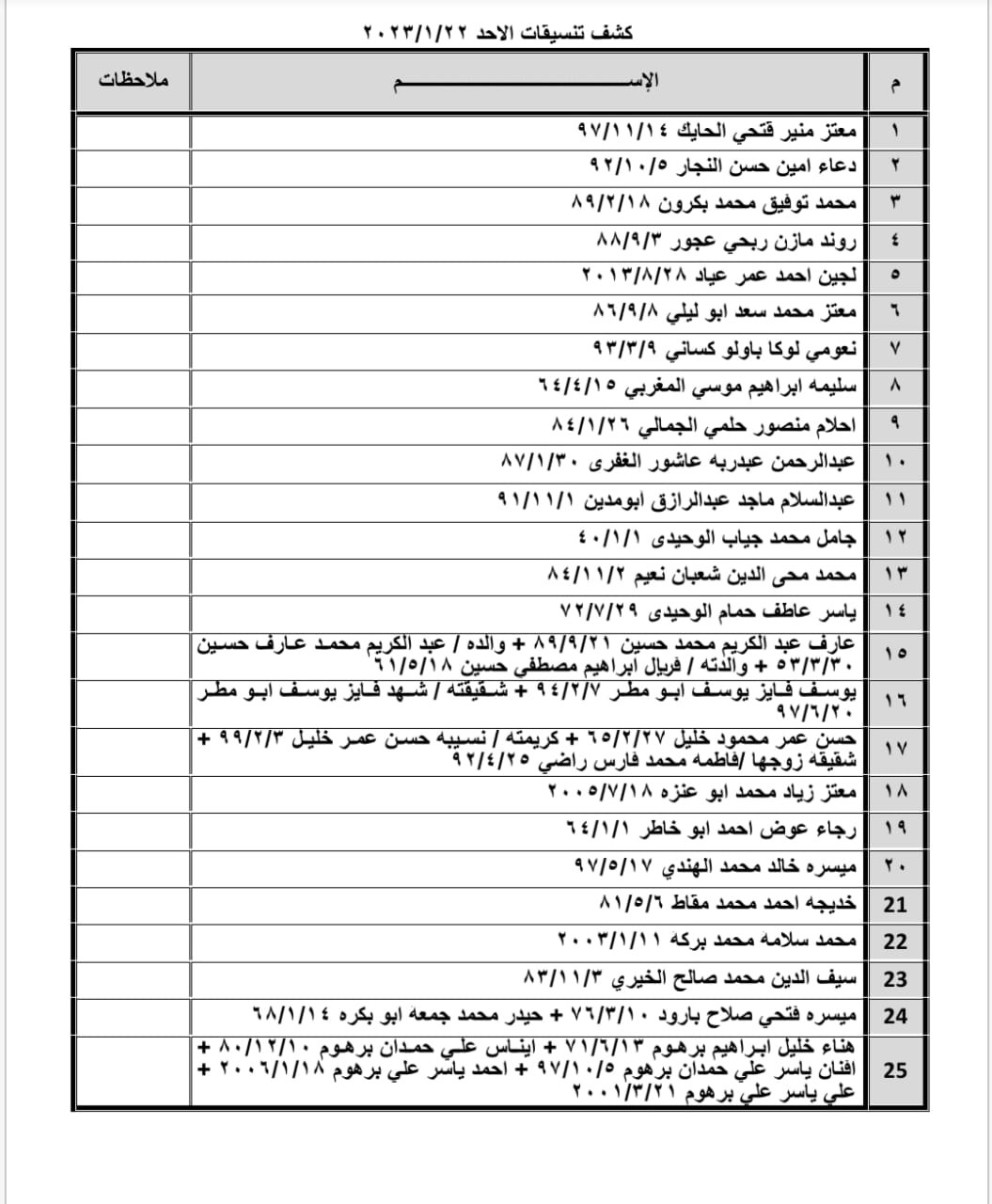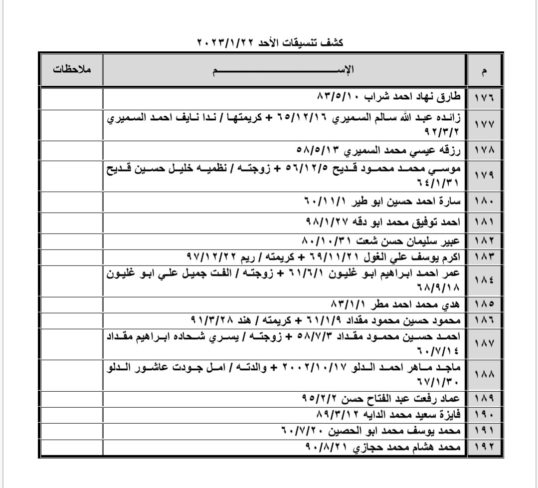 تعلن الهيئة العامة للمعابر والحدود بوزارة الداخلية والأمن الوطني عن وصول كشف "تنسيقات مصرية" للسفر عبر معبر رفح البري يوم غد الأحد (22 يناير)، والذين عليهم التواجد س 7:00 صباحاً في الصالة الخارجية للمعبر لتسهيل سفرهم.