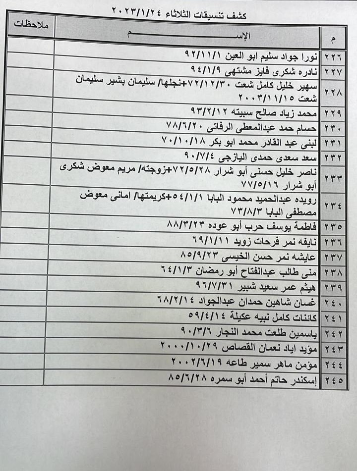 إعلان: كشف "تنسيقات مصرية" للسفر عبر معبر رفح يوم الثلاثاء (24 يناير):