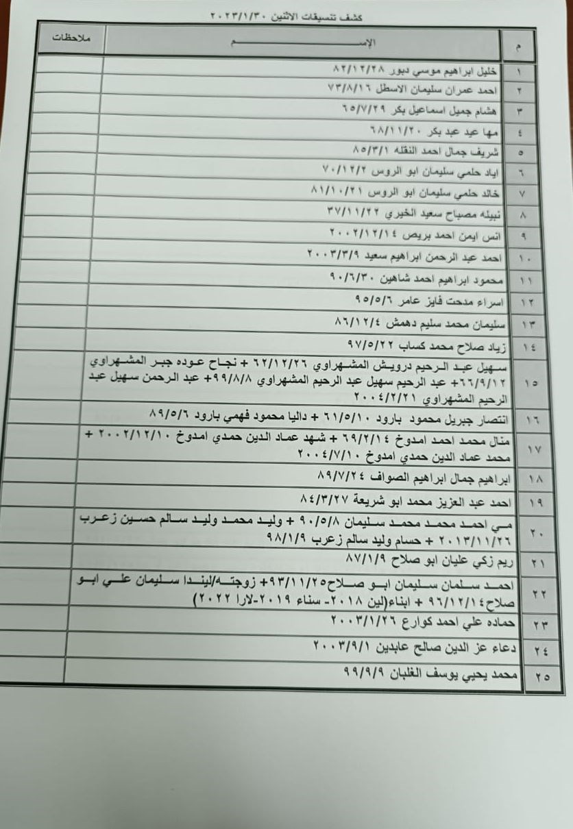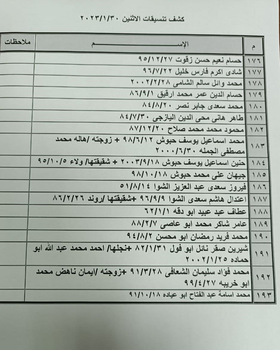 تعلن الهيئة العامة للمعابر والحدود بوزارة الداخلية والأمن الوطني عن وصول كشف "تنسيقات مصرية" للسفر عبر معبر رفح البري يوم الإثنين (30 يناير)، والذين عليهم التواجد س 7:00 صباحاً في الصالة الخارجية للمعبر لتسهيل سفرهم.