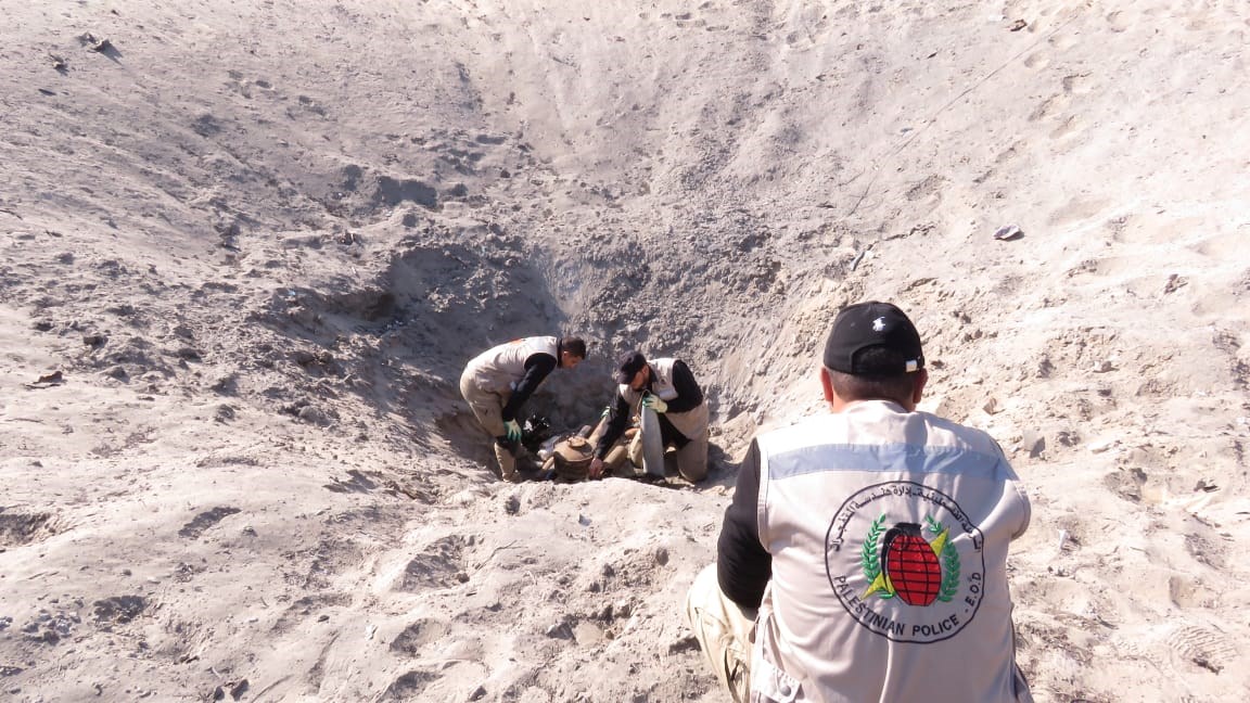 أتلفت دائرة الشؤون الفنية في إدارة الأدلة الجنائية وهندسة المتفجرات بالشرطة، كميةَ موادٍ متفجرة من مخلفات الاحتلال الحربية في موقع الإتلاف الرئيسي بمحافظة رفح جنوب قطاع غزة، بمشاركة وتأمين جهاز الدفاع المدني والخدمات الطبية.