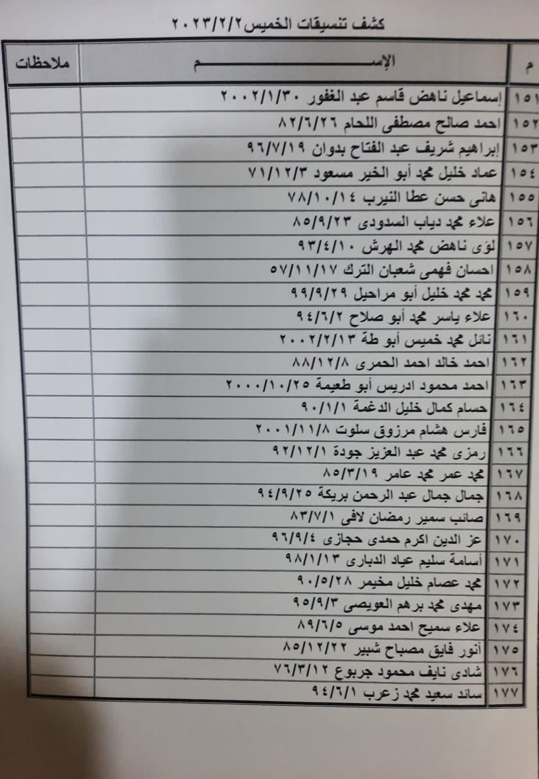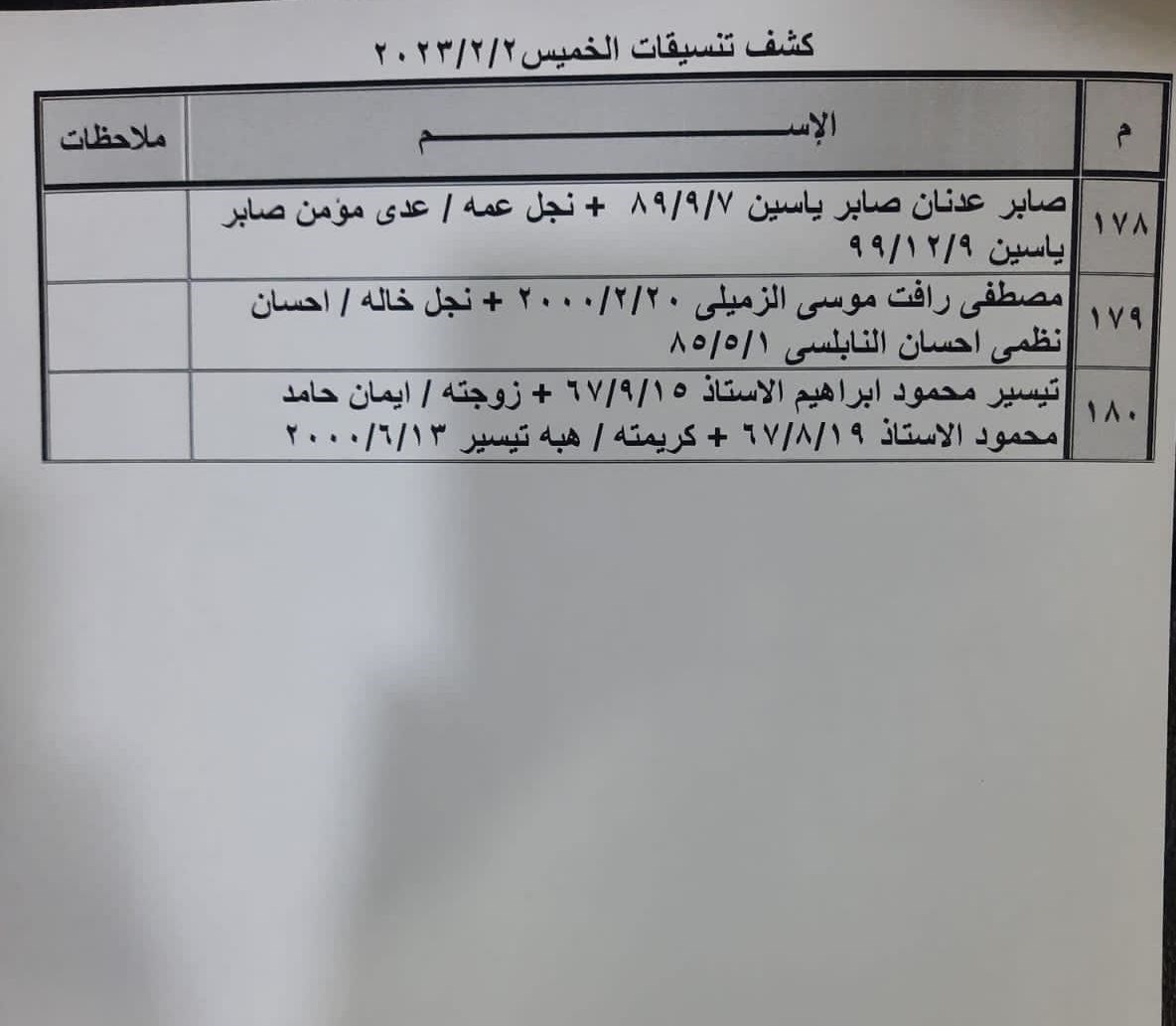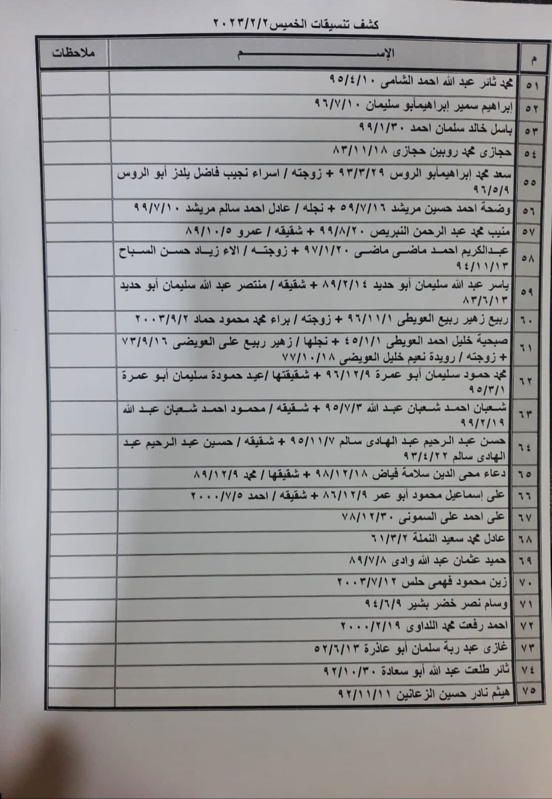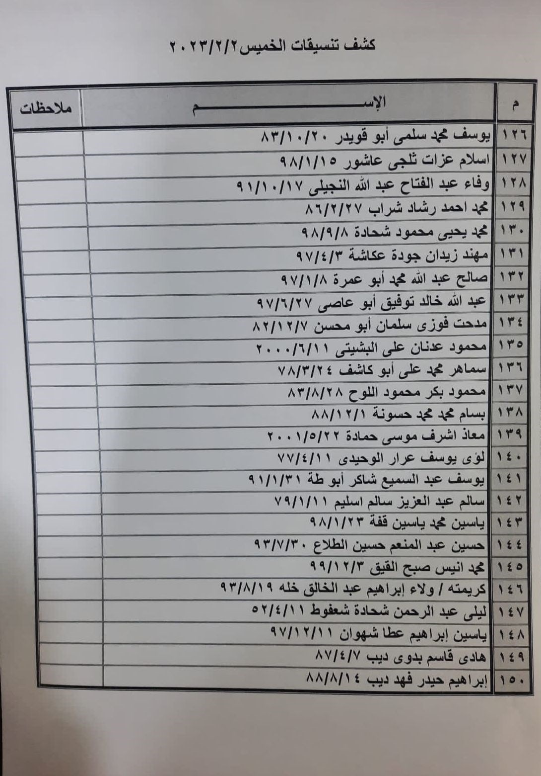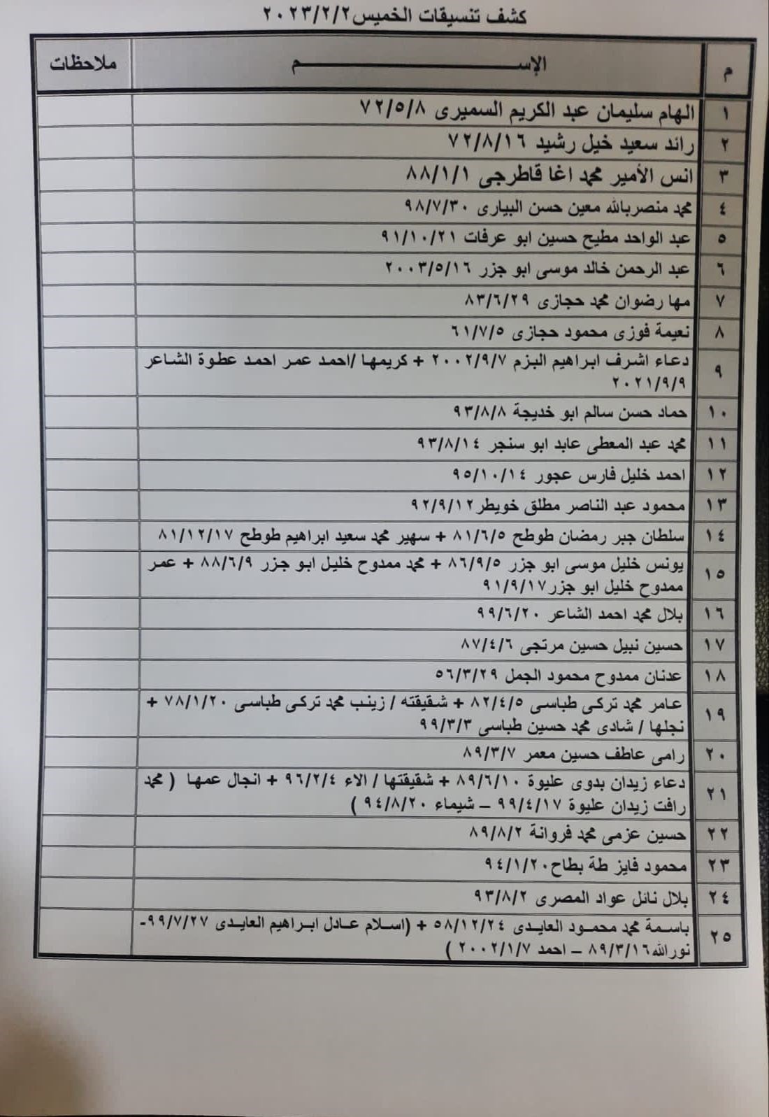 تعلن الهيئة العامة للمعابر والحدود بوزارة الداخلية والأمن الوطني عن وصول كشف "تنسيقات مصرية" للسفر عبر معبر رفح البري يوم الخميس (2 فبراير)، والذين عليهم التواجد س 7:00 صباحاً في الصالة الخارجية للمعبر لتسهيل سفرهم.