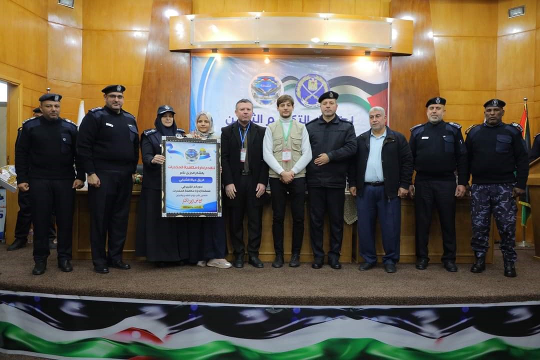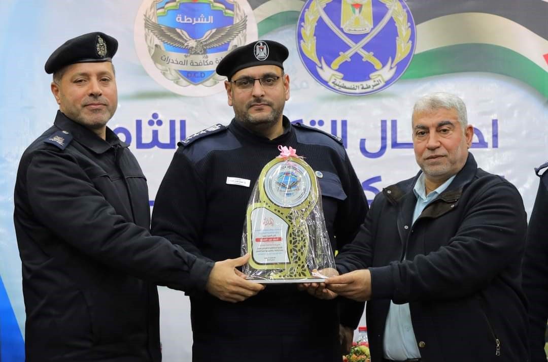 جاء ذلك، في حفل أقامته المكافحة، بحضور مدير عام قوى الأمن الداخلي اللواء محمود أبو وطفة، ومدير عام الشرطة اللواء محمود صلاح، ومساعده لشئون المحافظات العميد جمال الديب، ومدير إدارة مكافحة المخدرات العميد أحمد القدرة، ونائبه العقيد أنور زعرب وعدد من قيادة الشرطة الفلسطينية.