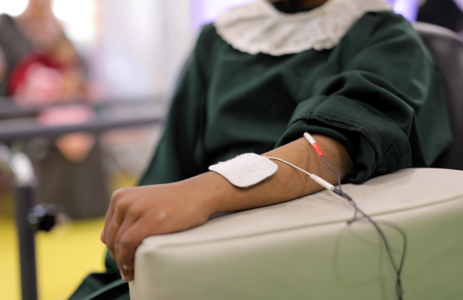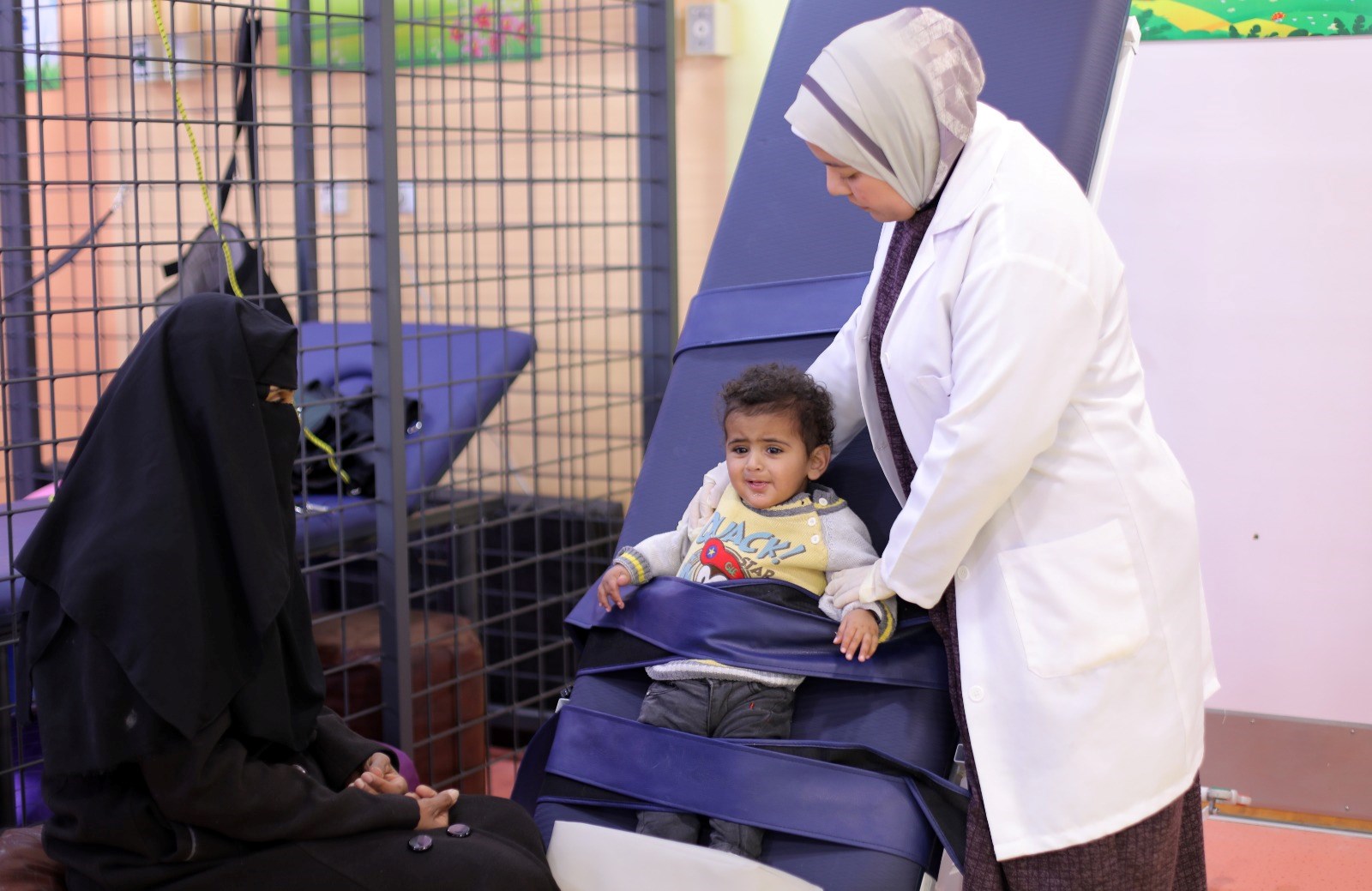 وأشارت إلى أن القسم يختص بمتابعة "حالات الشلل والضمور الدماغي وحالات الشلل الوجهي وتشوهات العمود الفقري" وغيرها من الحالات التي تتطلب علاجاً طبيعياً.