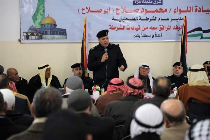 التقى مدير عام الشرطة اللواء محمود صلاح بعدد من الوجهاء والمخاتير والأعيان بمنطقة شرق غزة، في إطار تعزيز الشراكة مع مكونات المجتمع، وتعزيز السلم والأمن المجتمعي.