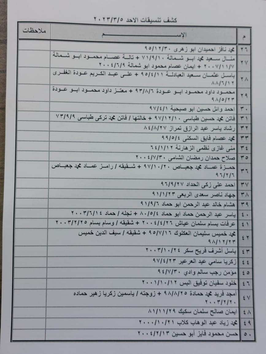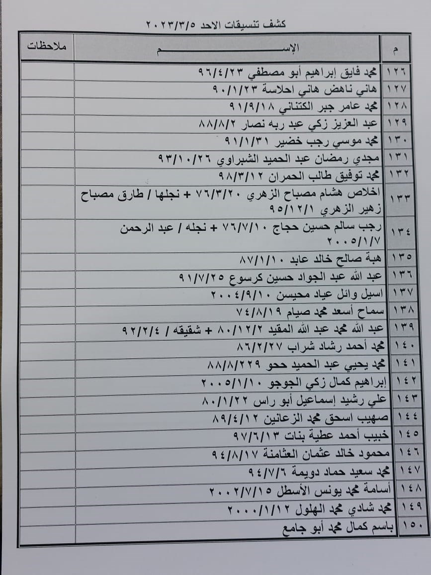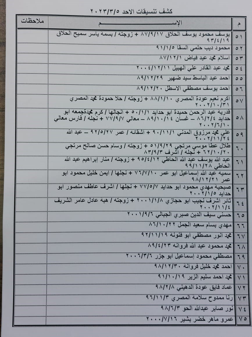 تعلن الهيئة العامة للمعابر والحدود بوزارة الداخلية والأمن الوطني عن وصول كشف "تنسيقات مصرية" للسفر عبر معبر رفح البري يوم الأحد (5 مارس)، والذين عليهم التواجد س 7:00 صباحاً في الصالة الخارجية للمعبر لتسهيل سفرهم.