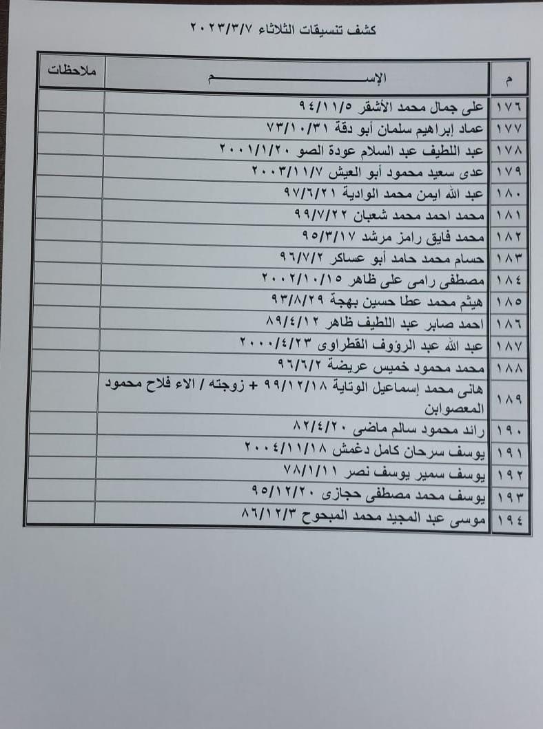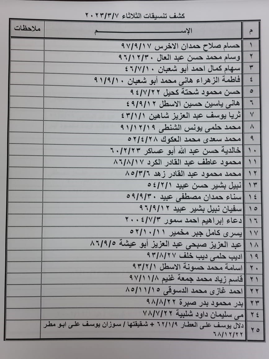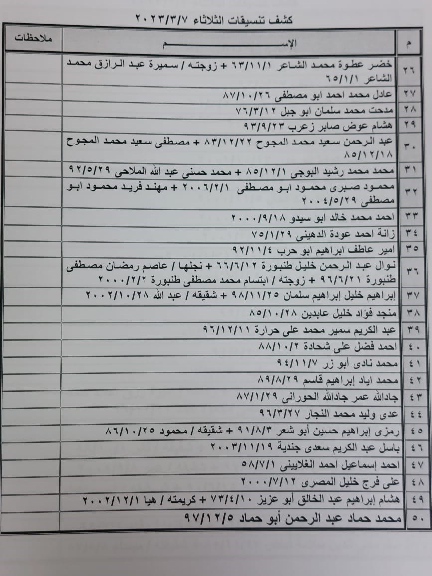 تعلن الهيئة العامة للمعابر والحدود بوزارة الداخلية والأمن الوطني عن وصول كشف "تنسيقات مصرية" للسفر عبر معبر رفح البري يوم الثلاثاء (7 مارس)، والذين عليهم التواجد س 7:00 صباحاً في الصالة الخارجية للمعبر لتسهيل سفرهم.