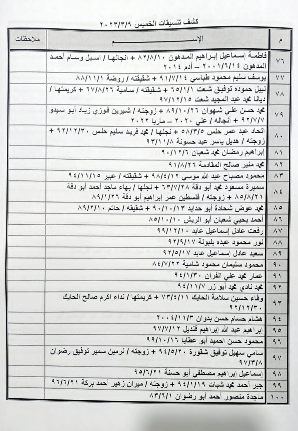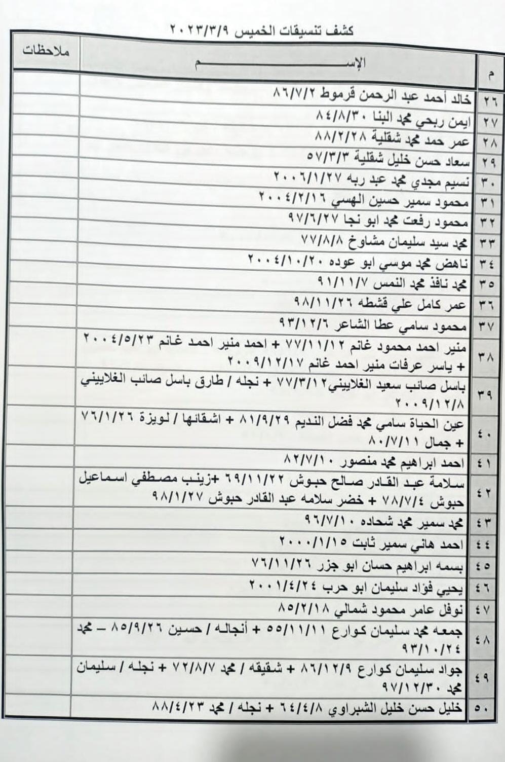 تعلن الهيئة العامة للمعابر والحدود بوزارة الداخلية والأمن الوطني عن وصول كشف "تنسيقات مصرية" للسفر عبر معبر رفح البري يوم الخميس (9 مارس)، والذين عليهم التواجد س 7:00 صباحاً في الصالة الخارجية للمعبر لتسهيل سفرهم.