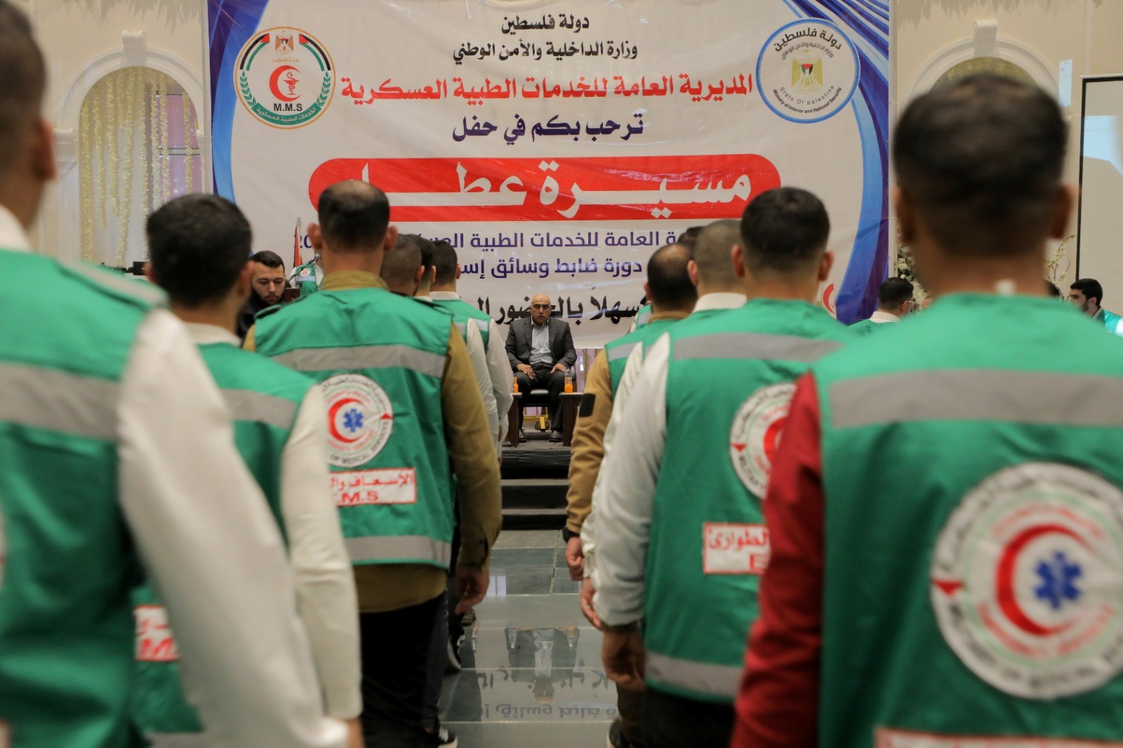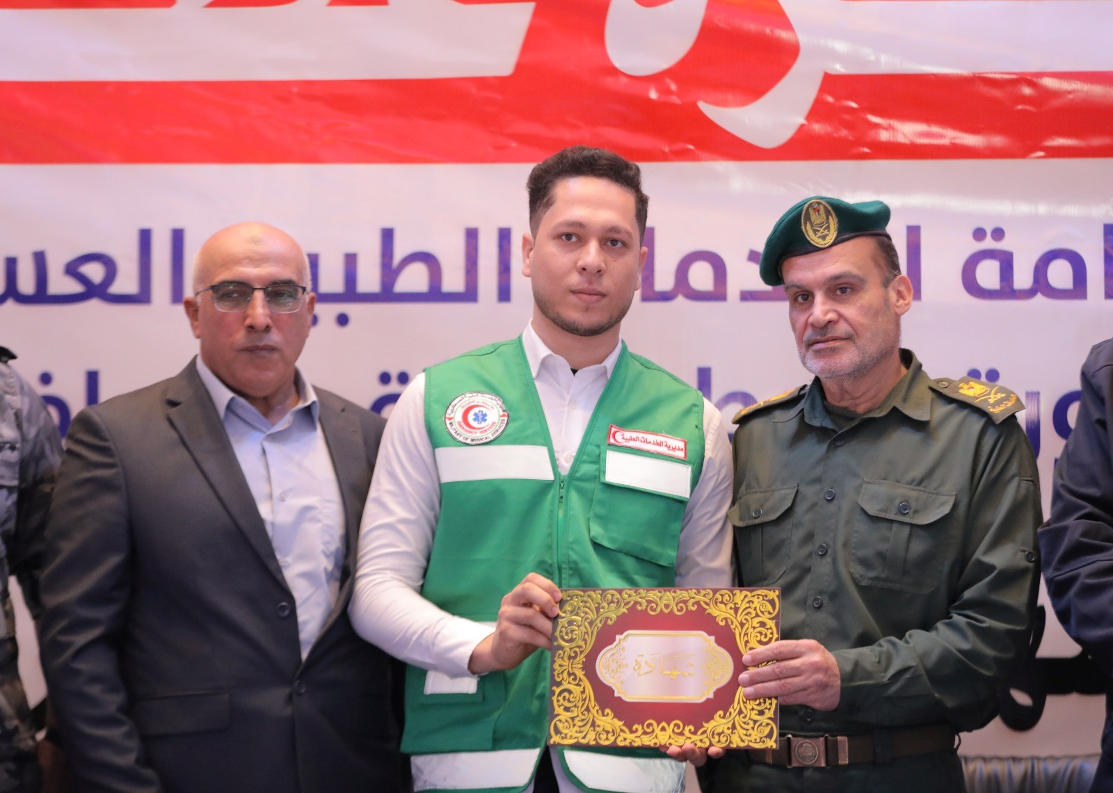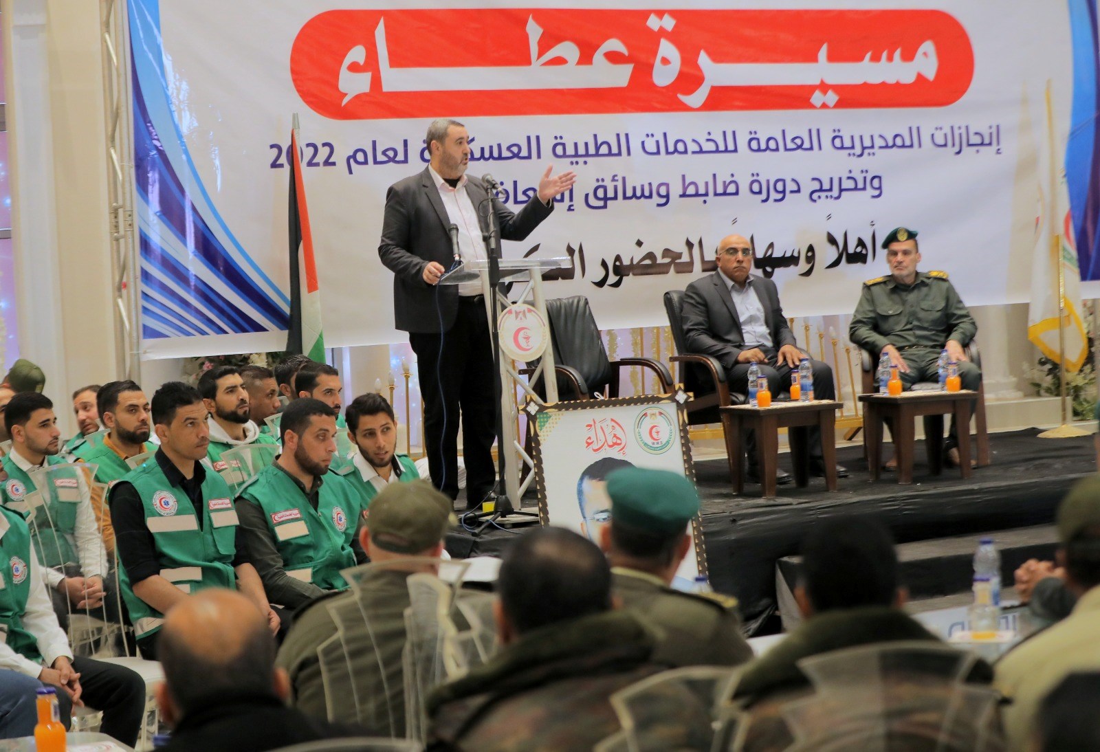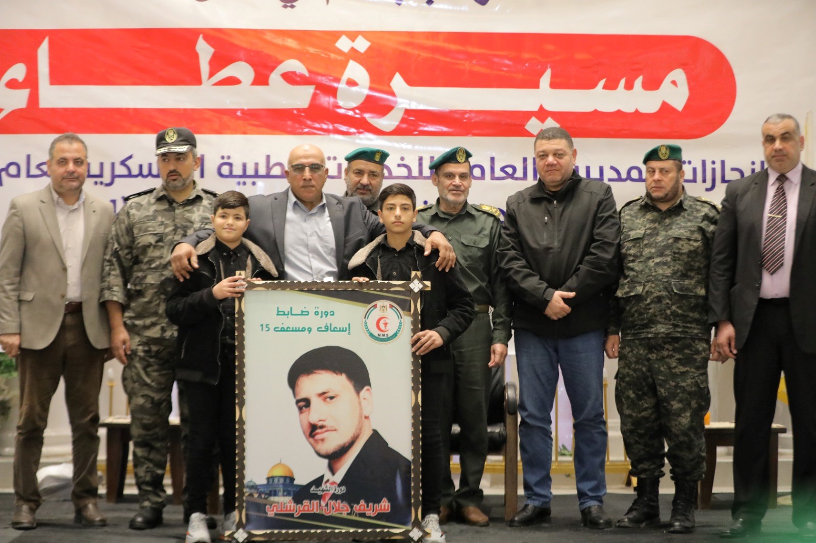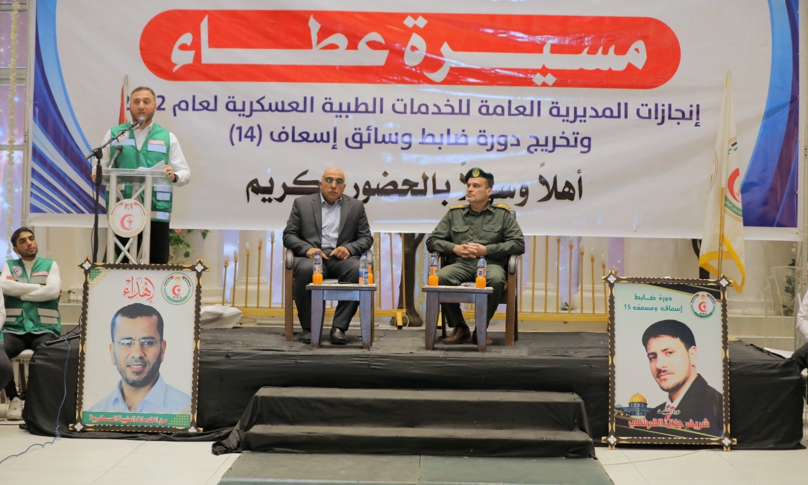 وأشار إلى أن الخدمات الطبية تخرج اليوم كوكبة من ضباط وسائقي الإسعاف الرابعة عشرة، وتُسلم الراية للدورة القادمة الـ 15 والتي تحمل اسم الشهيد شريف القرشلي.