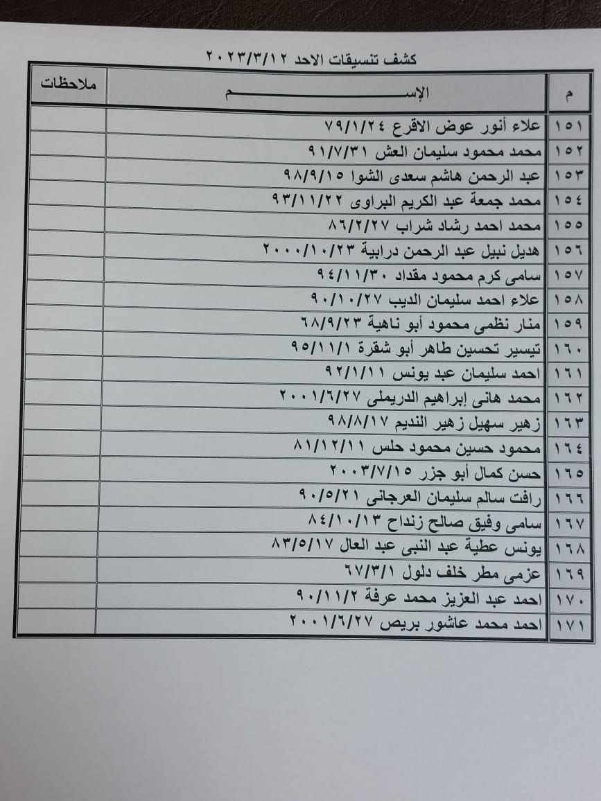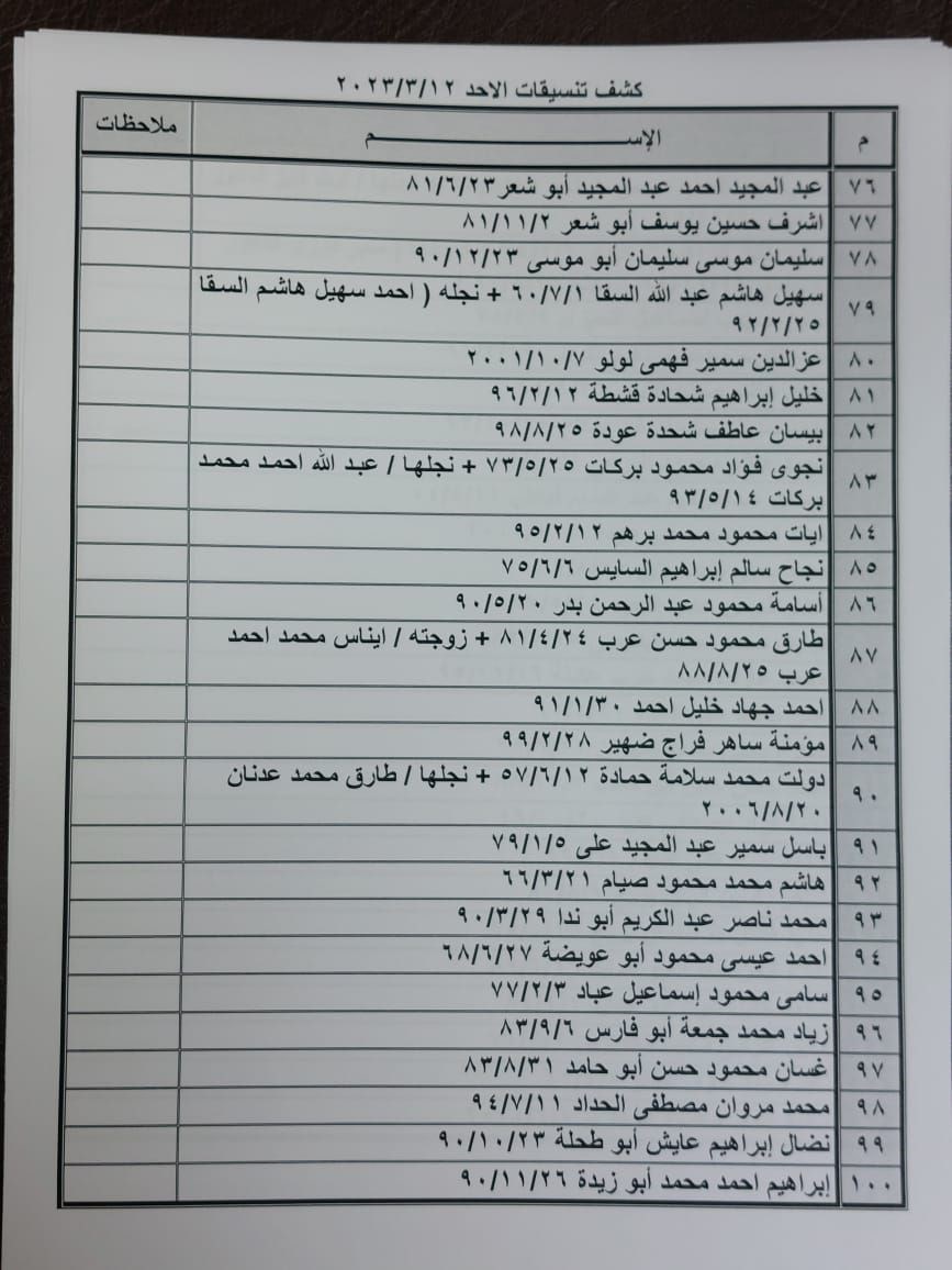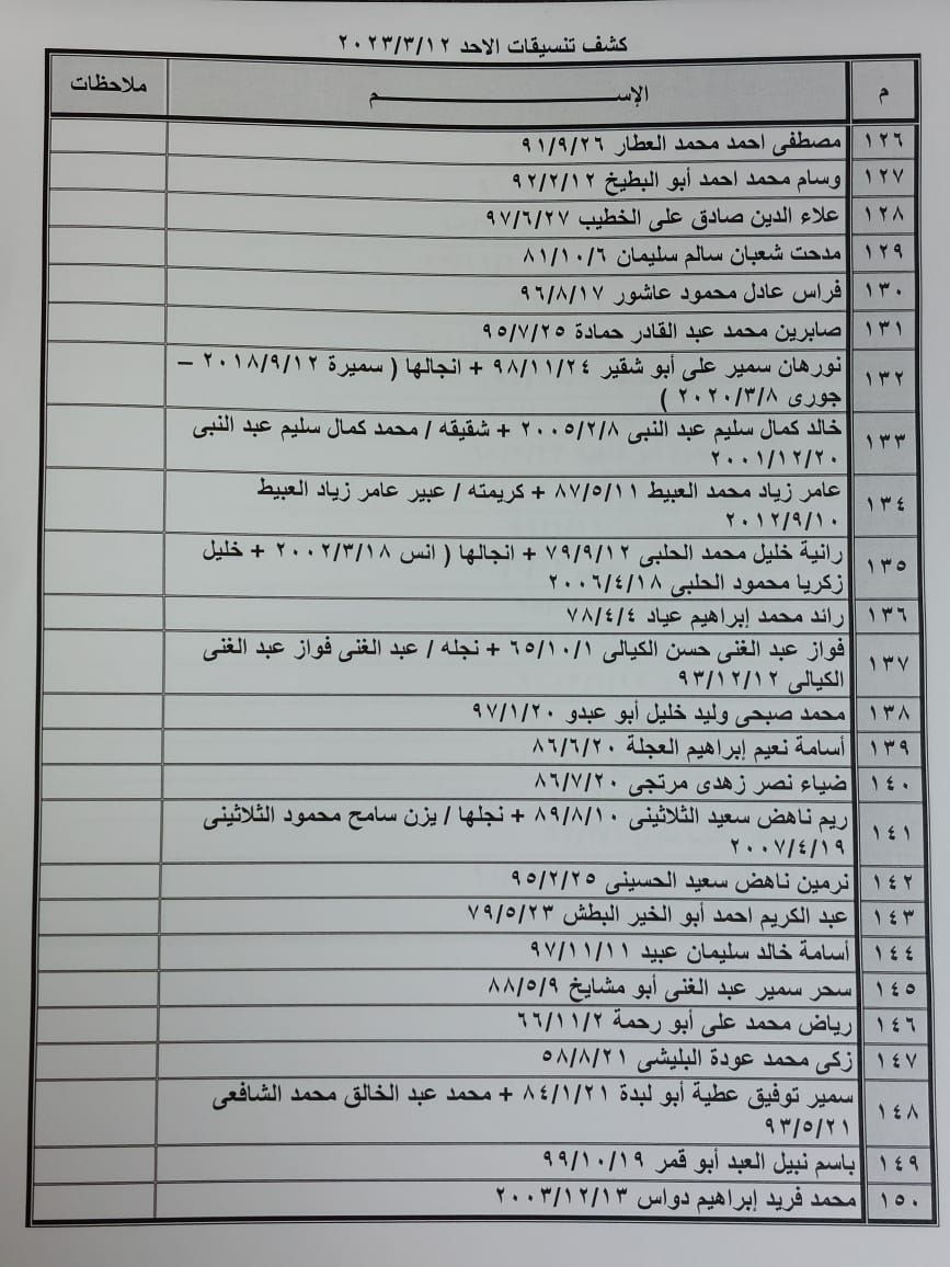 تعلن الهيئة العامة للمعابر والحدود بوزارة الداخلية والأمن الوطني عن وصول كشف "تنسيقات مصرية" للسفر عبر معبر رفح البري يوم الأحد (12 مارس)، والذين عليهم التواجد س 7:00 صباحاً في الصالة الخارجية للمعبر لتسهيل سفرهم.