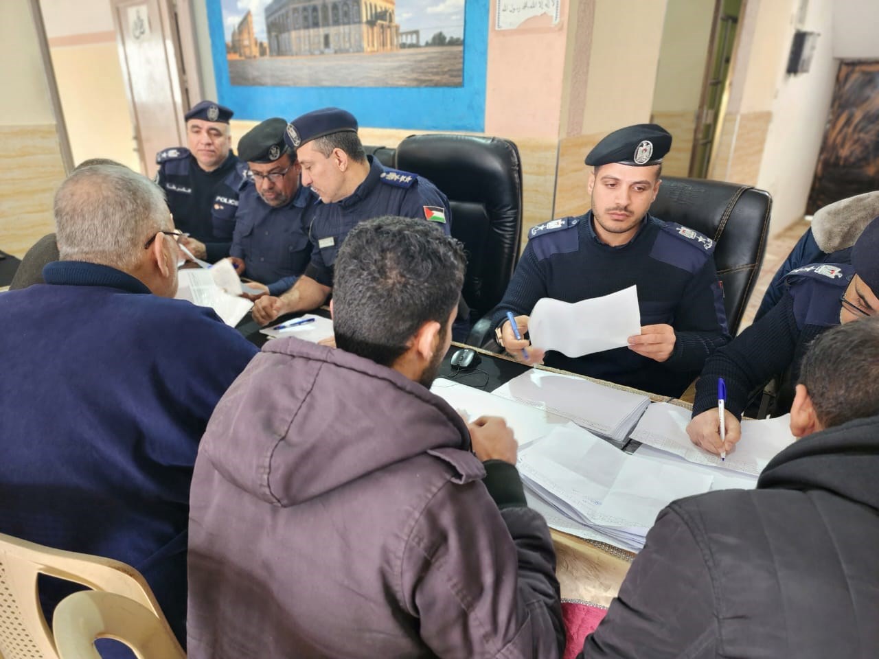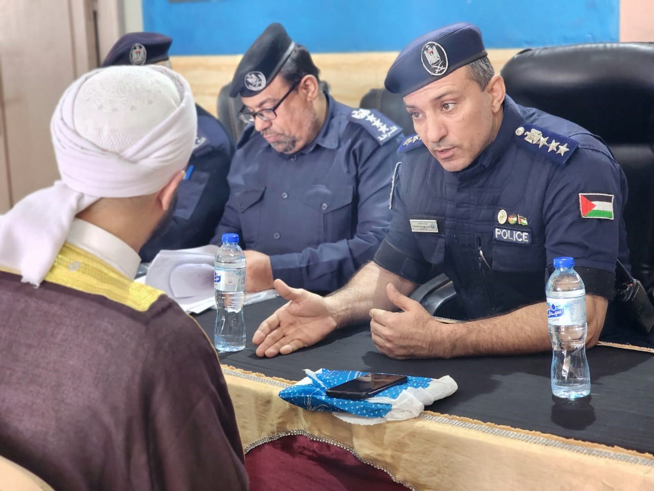 استقبل مدير عام إدارة شرطة المرور والنجدة العميد تامر شحادة، عدداً من المواطنين والسائقين، واستمع إلى استفساراتهم وشكاويهم، يوم الثلاثاء، في مقر شرطة مرور محافظة الوسطى.