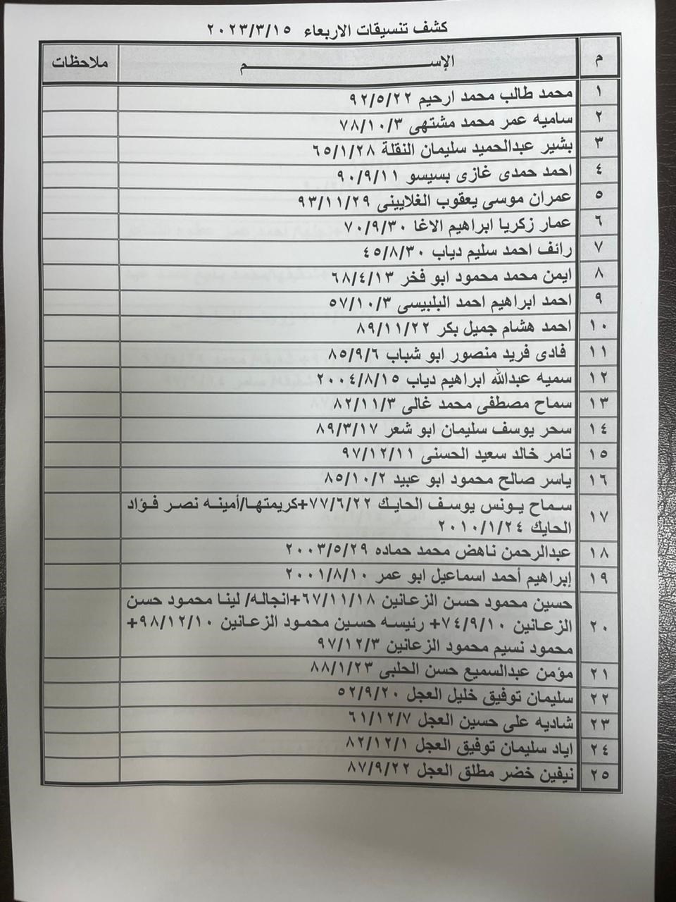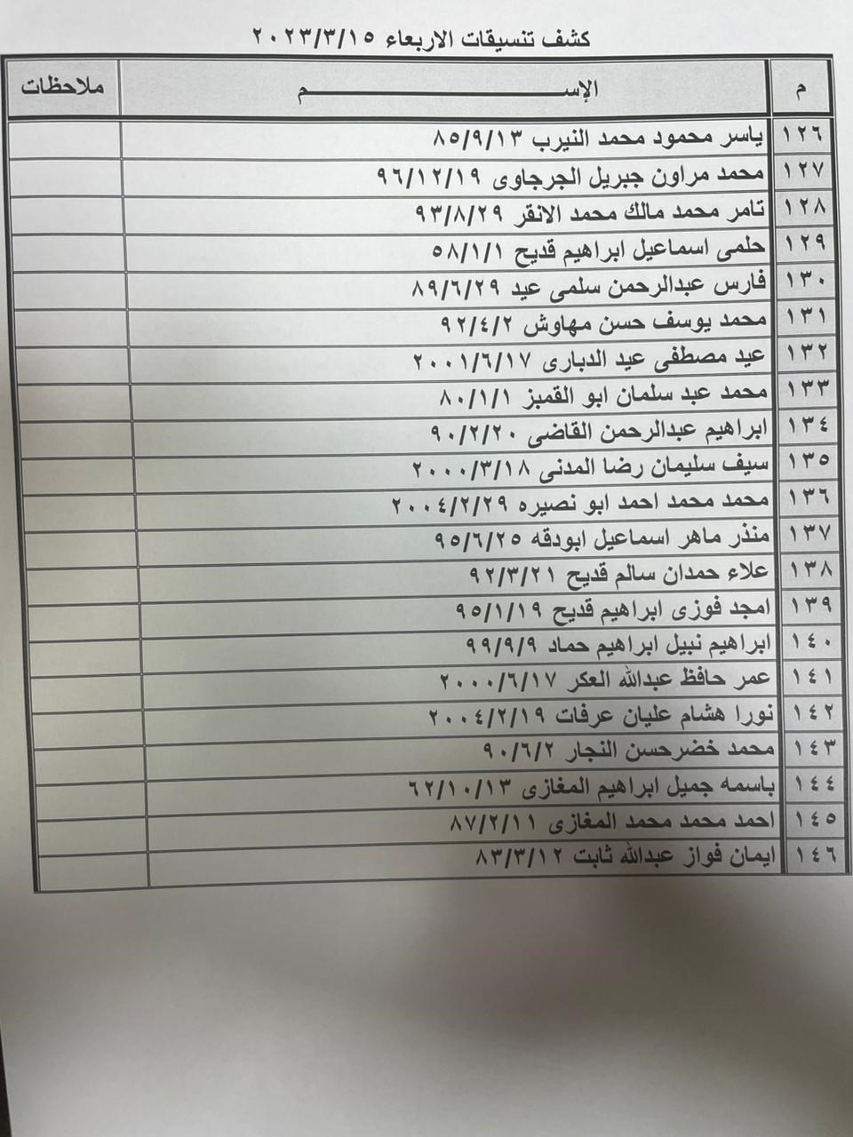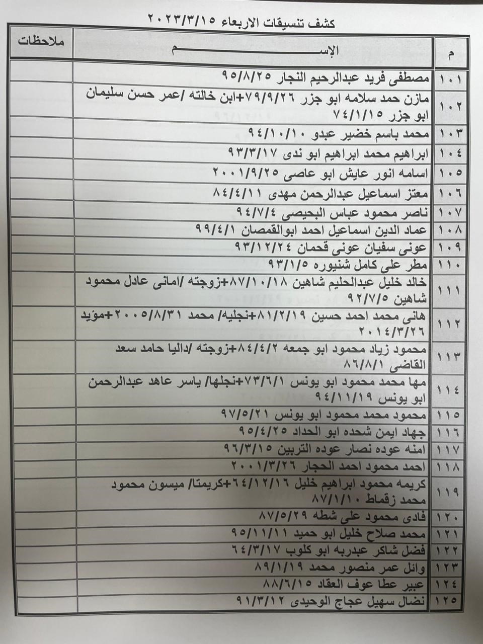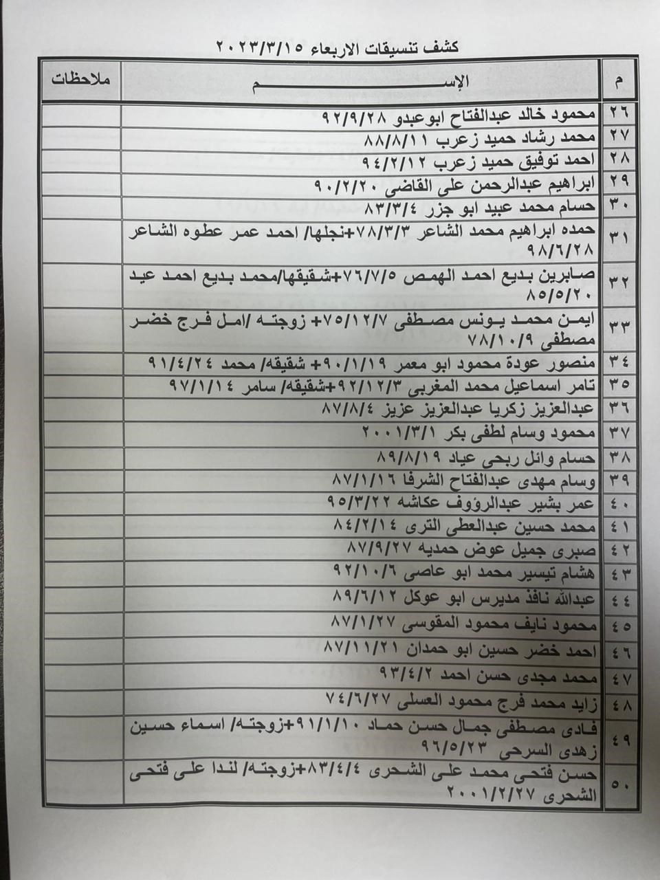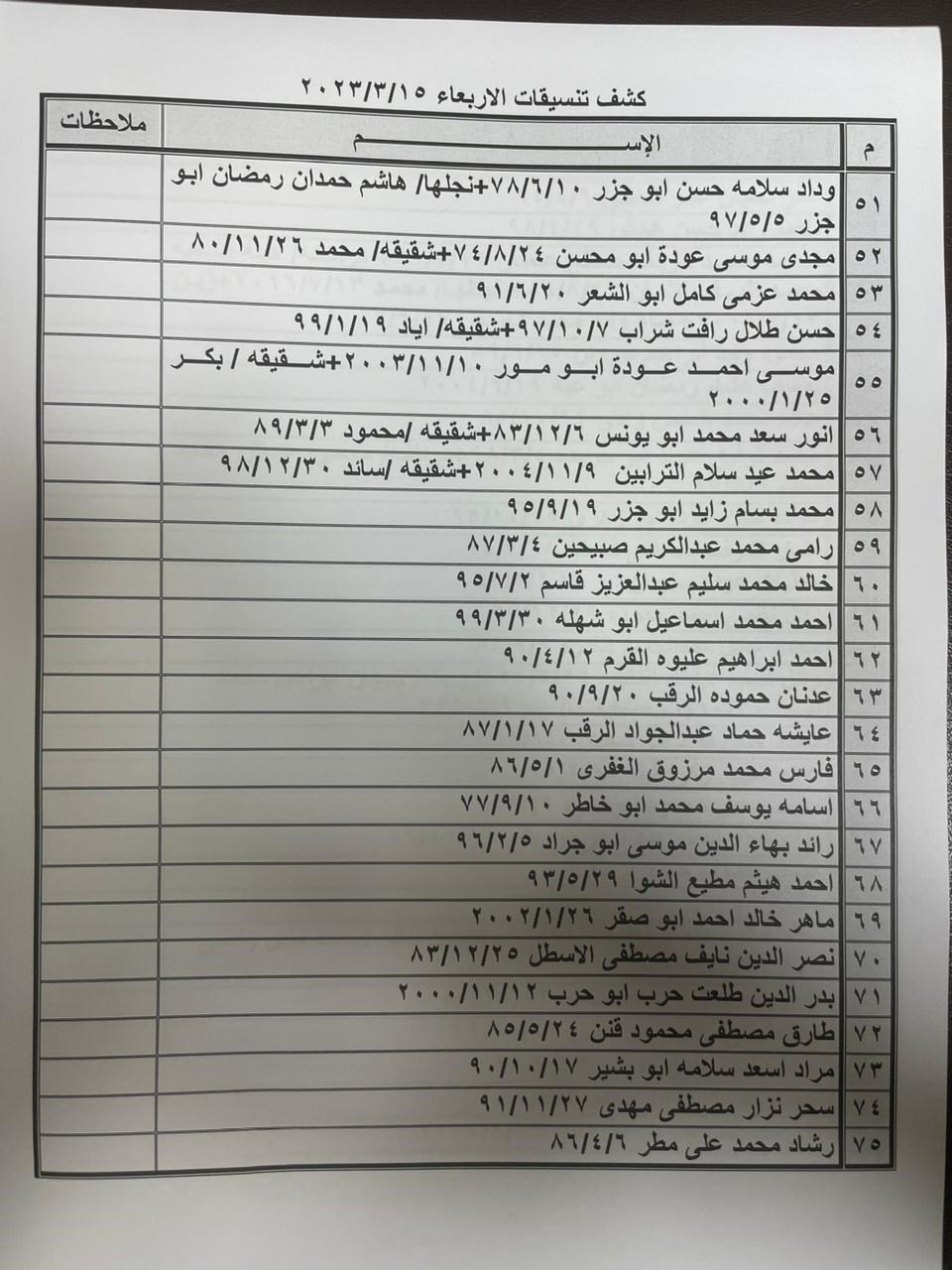 تعلن الهيئة العامة للمعابر والحدود بوزارة الداخلية والأمن الوطني عن وصول كشف "تنسيقات مصرية" للسفر عبر معبر رفح البري يوم الأربعاء (15 مارس)، والذين عليهم التواجد س 7:00 صباحاً في الصالة الخارجية للمعبر لتسهيل سفرهم.