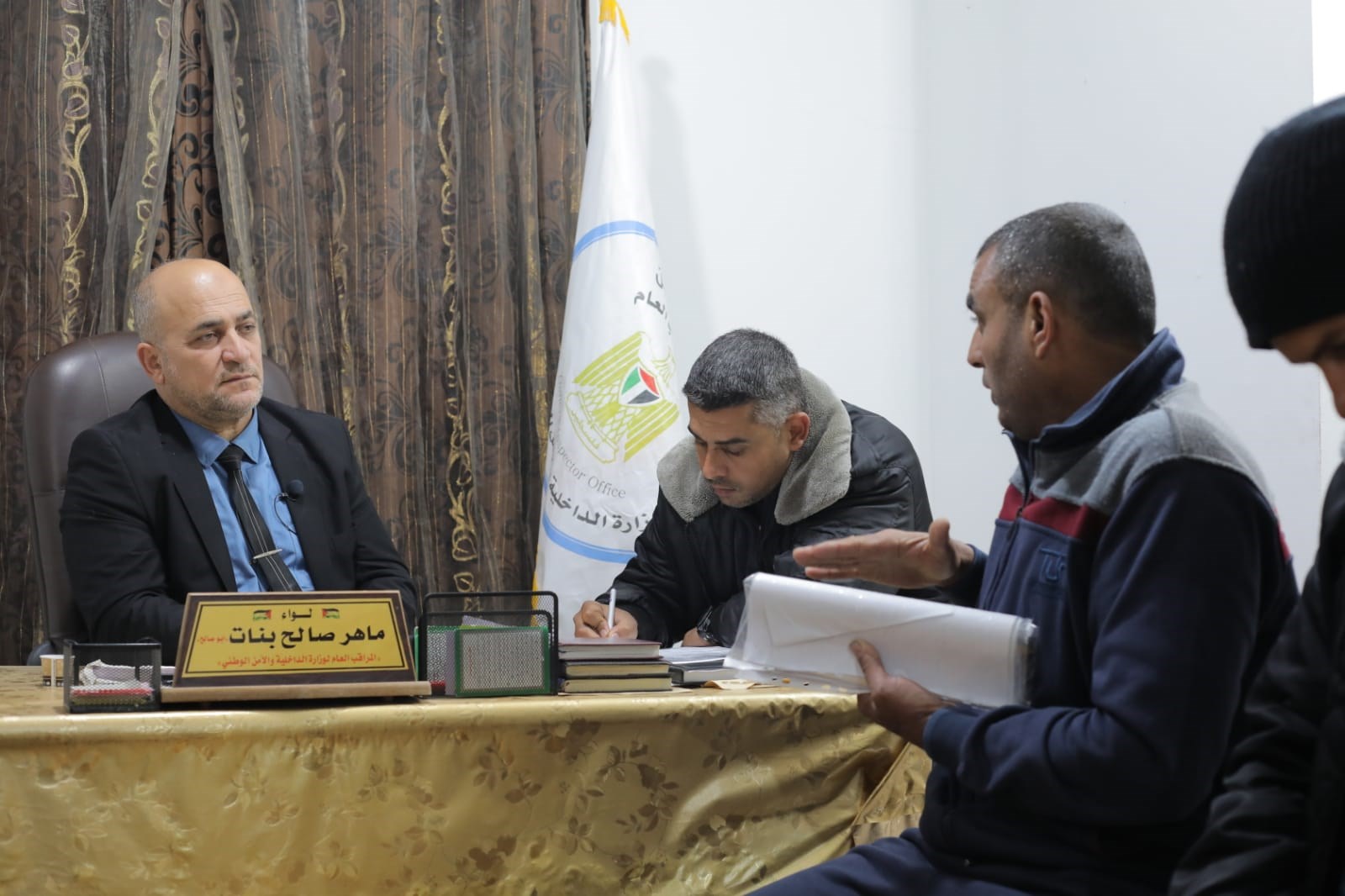 استقبل المراقب العام لوزارة الداخلية والأمن الوطني اللواء ماهر بنات، صباح الإثنين، شكاوى المواطنين وقضاياهم المتعلقة بعمل الوزارة وأجهزتها ومنتسبيها، خلال لقاء عُقد في مقر مكتب المراقب العام وسط قطاع غزة.