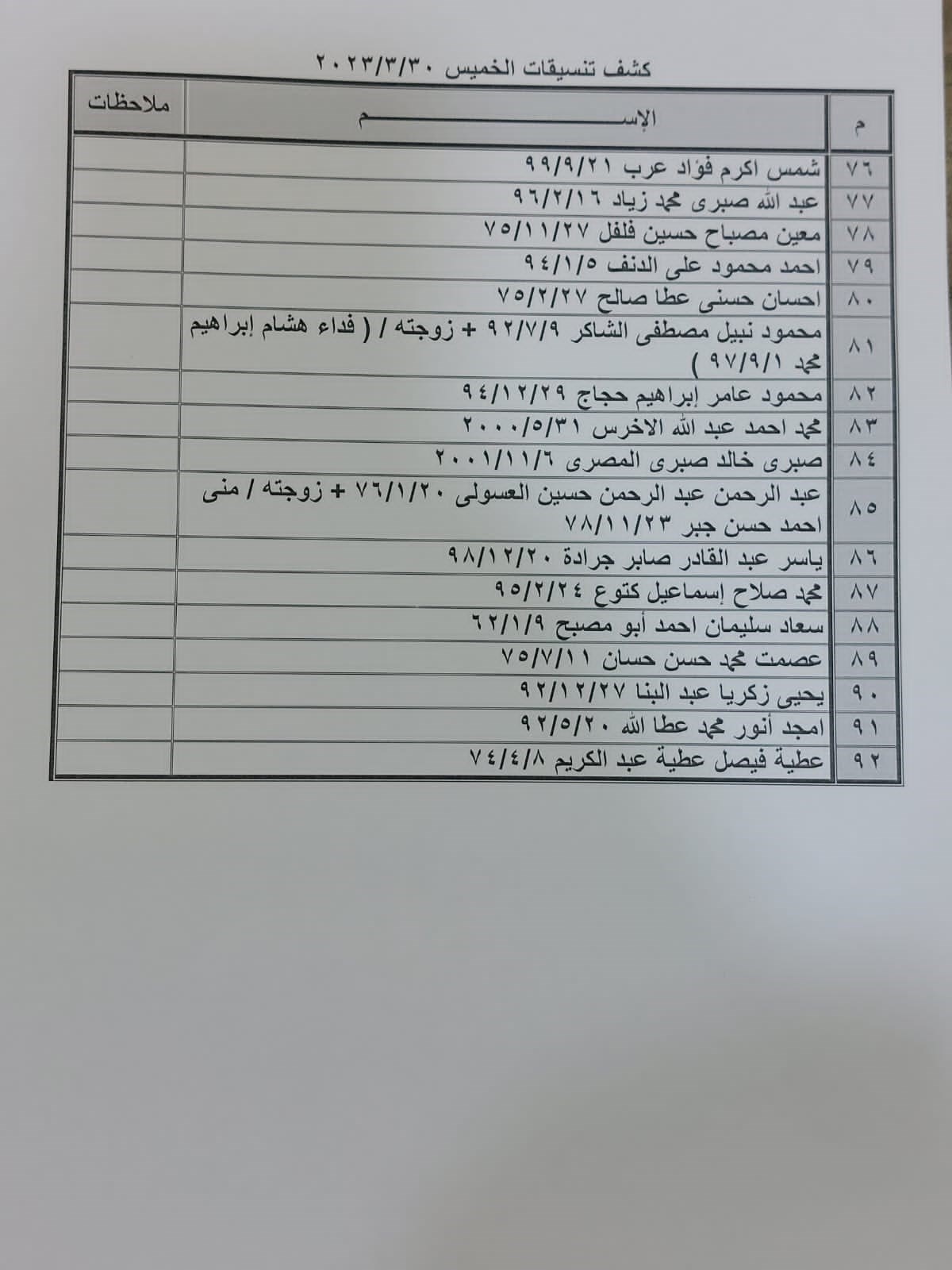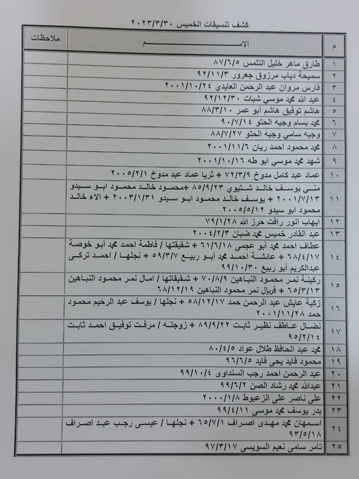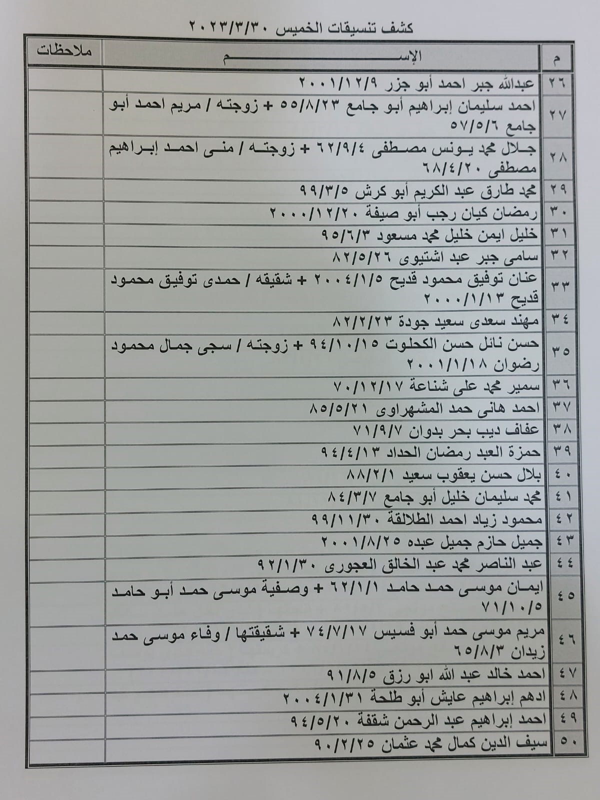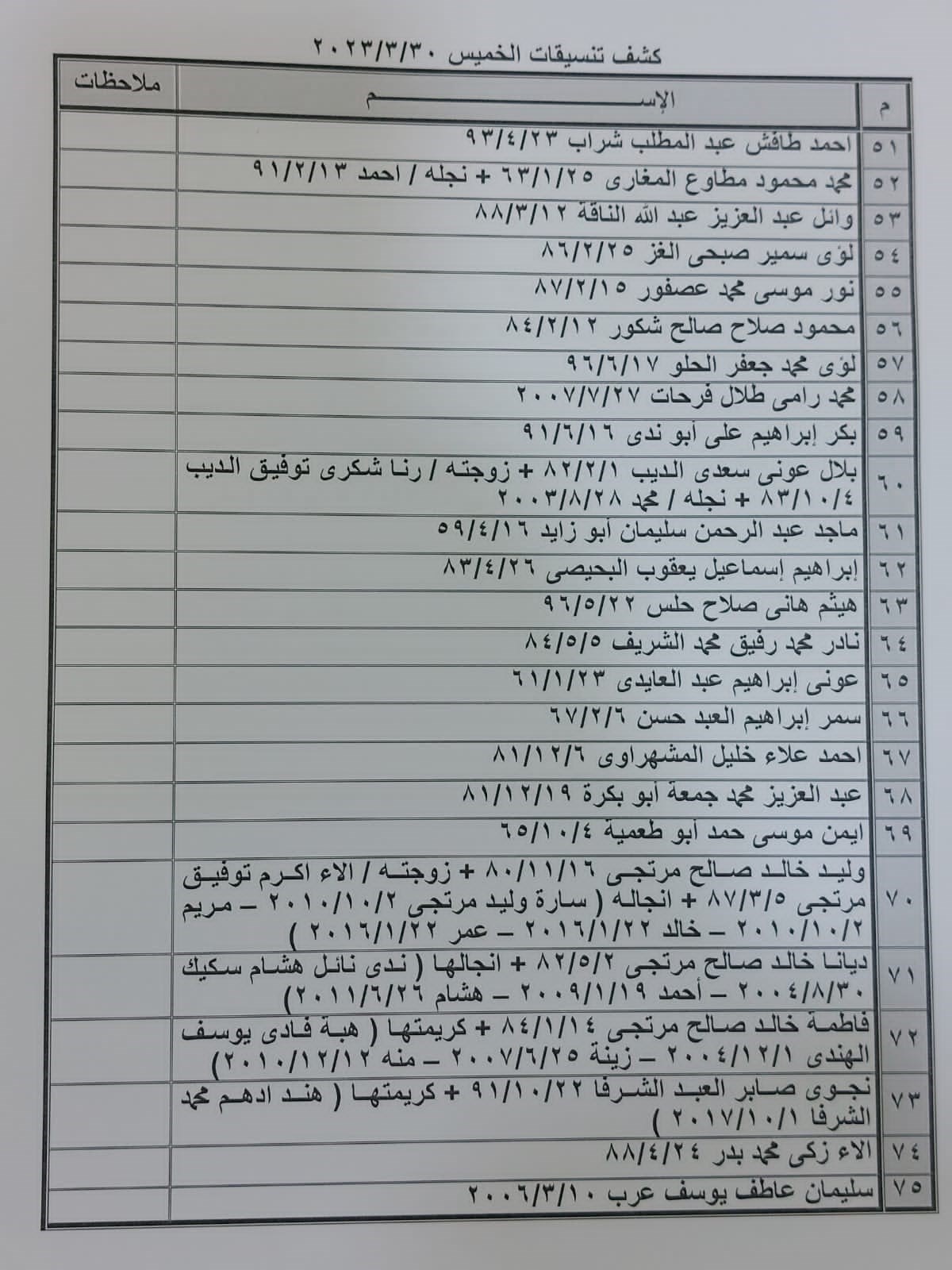 تعلن الهيئة العامة للمعابر والحدود بوزارة الداخلية والأمن الوطني عن وصول كشف "تنسيقات مصرية" للسفر عبر معبر رفح البري يوم الخميس (30 مارس)، والذين عليهم التواجد س 7:00 صباحاً في الصالة الخارجية للمعبر لتسهيل سفرهم.