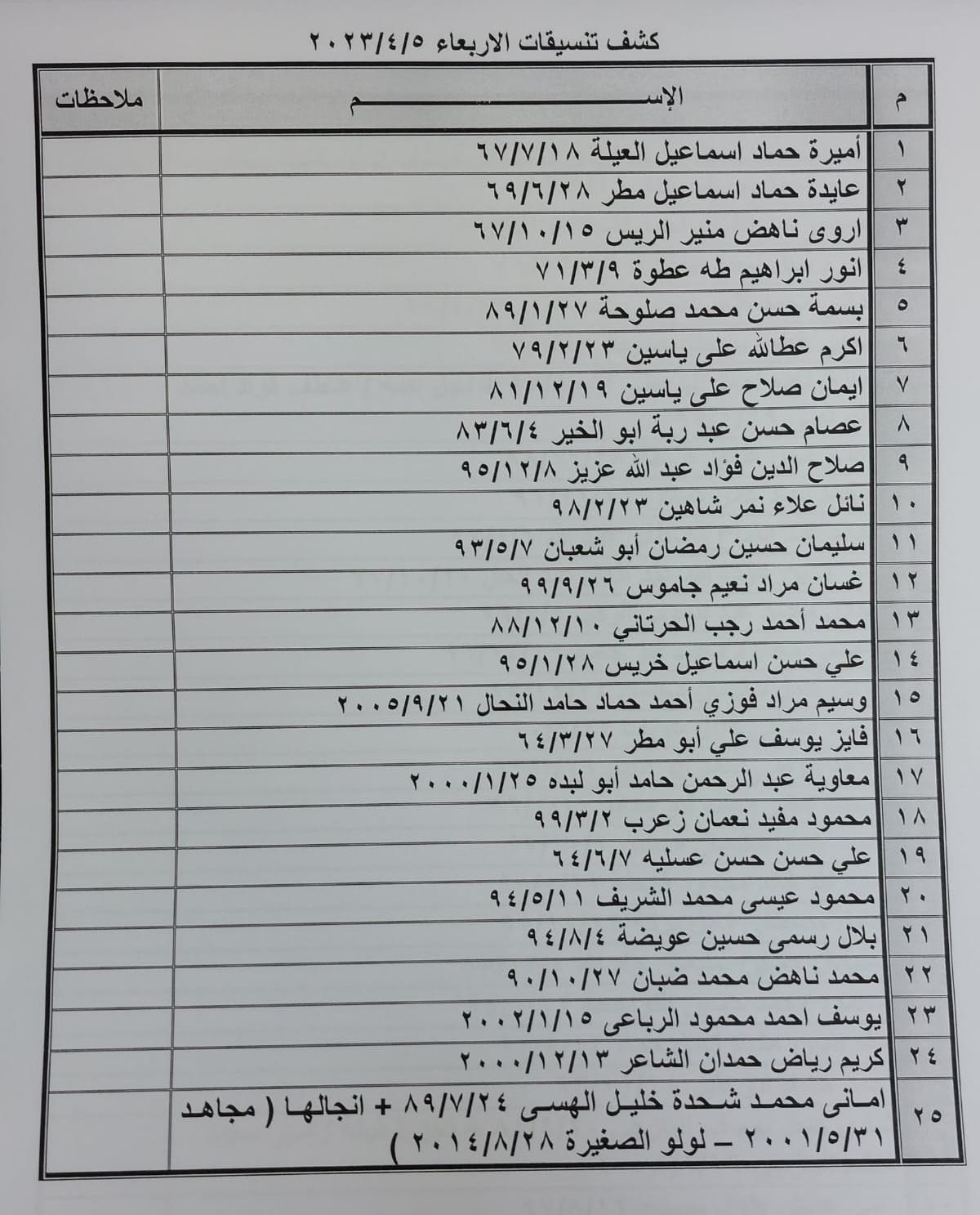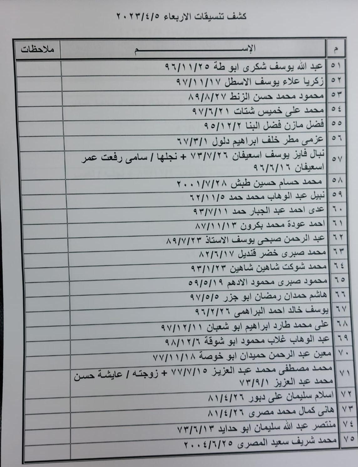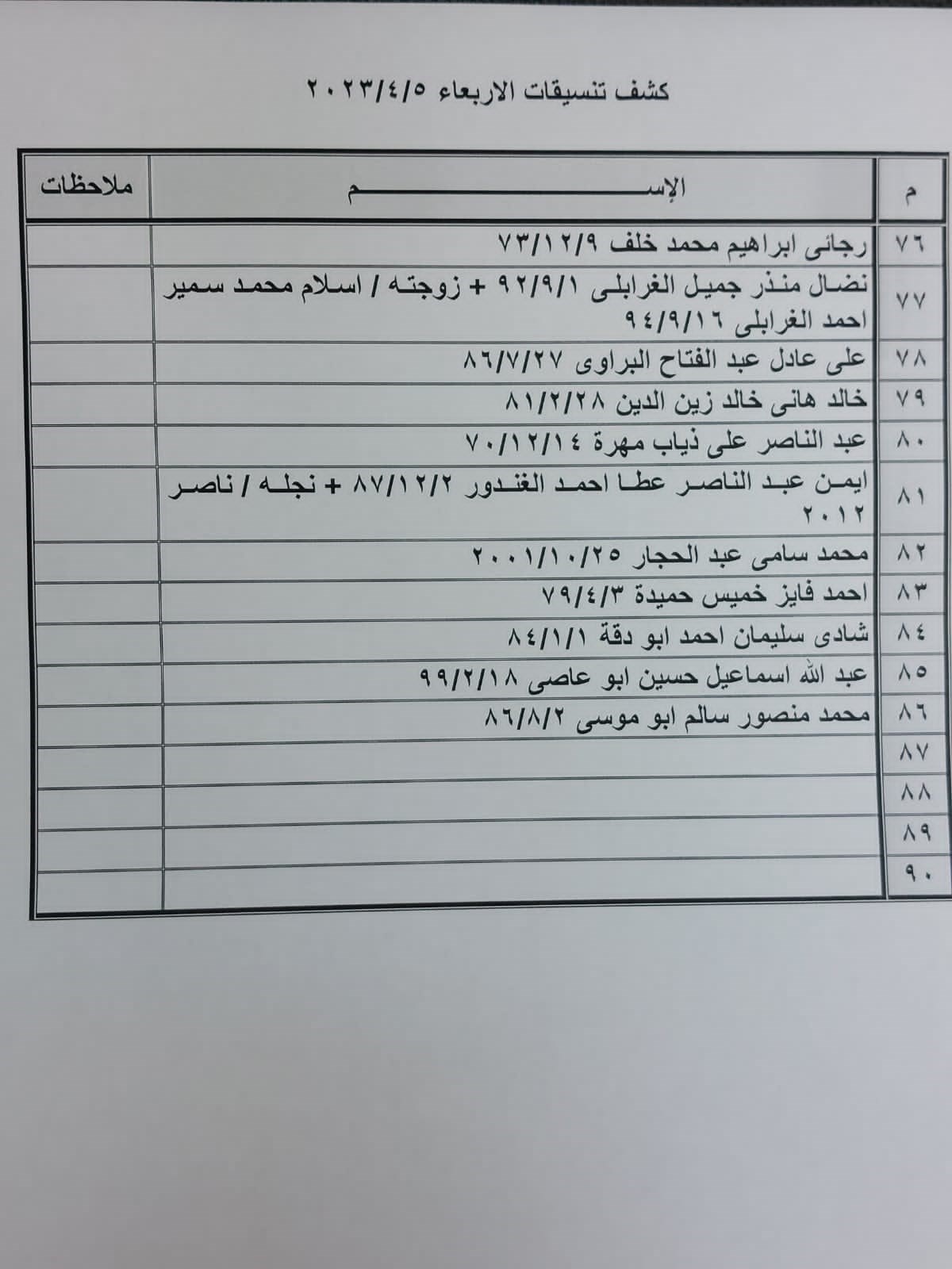 تعلن الهيئة العامة للمعابر والحدود بوزارة الداخلية والأمن الوطني عن وصول كشف "تنسيقات مصرية" للسفر عبر معبر رفح البري يوم الأربعاء (5 أبريل)، والذين عليهم التواجد س 7:00 صباحاً في الصالة الخارجية للمعبر لتسهيل سفرهم.