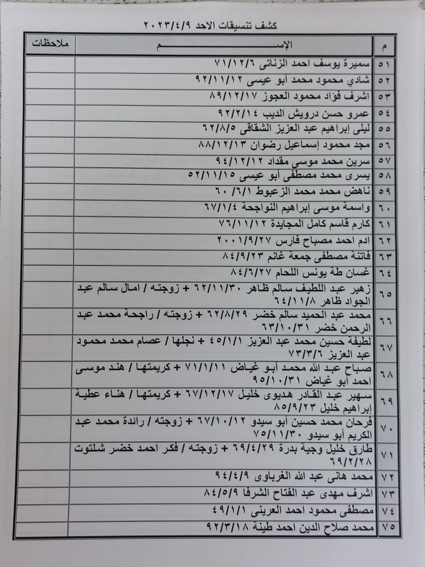 تعلن الهيئة العامة للمعابر والحدود بوزارة الداخلية والأمن الوطني عن وصول كشف "تنسيقات مصرية" للسفر عبر معبر رفح البري يوم الأحد (9 أبريل)، والذين عليهم التواجد س 7:00 صباحاً في الصالة الخارجية للمعبر لتسهيل سفرهم.