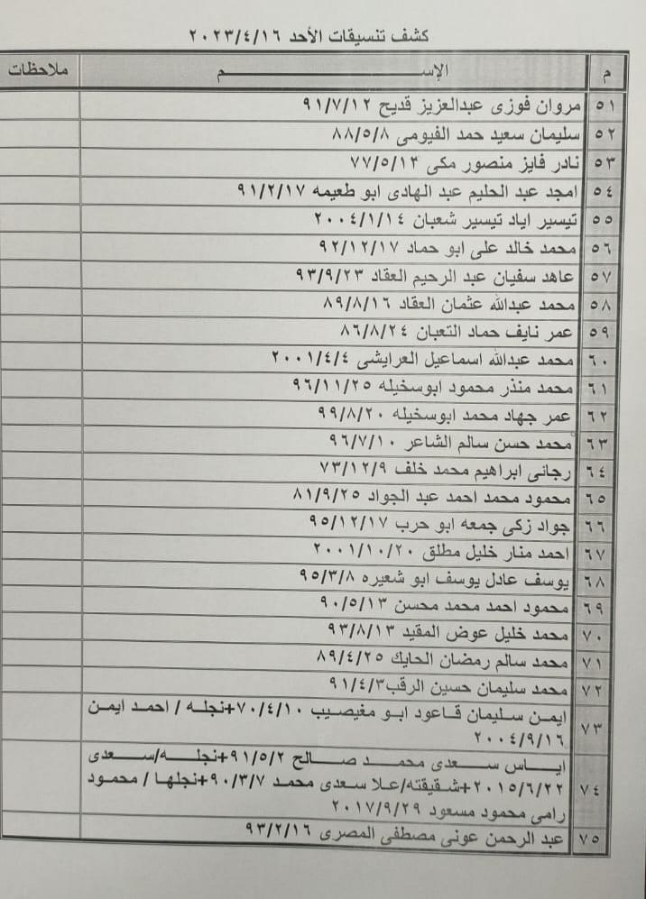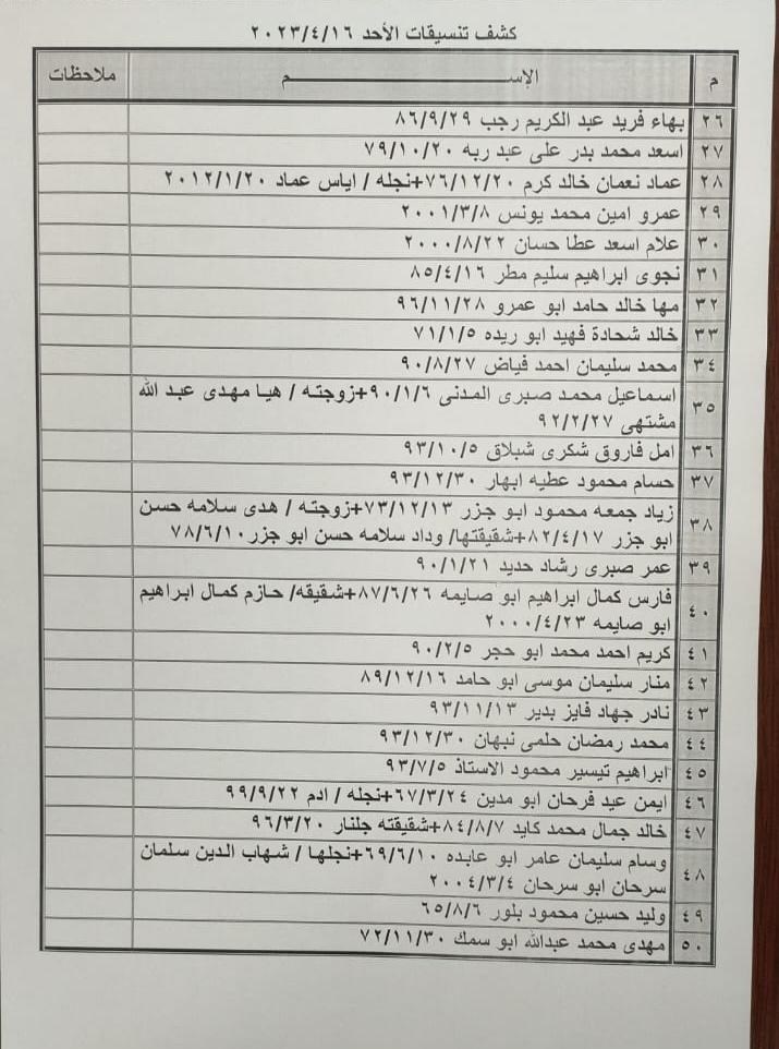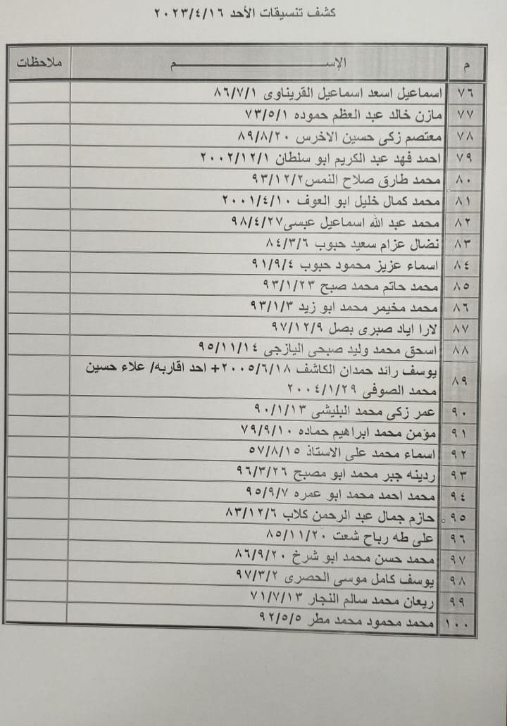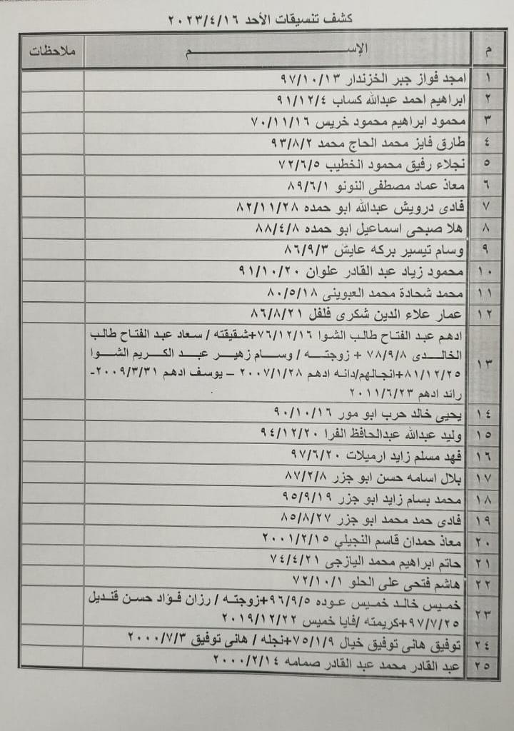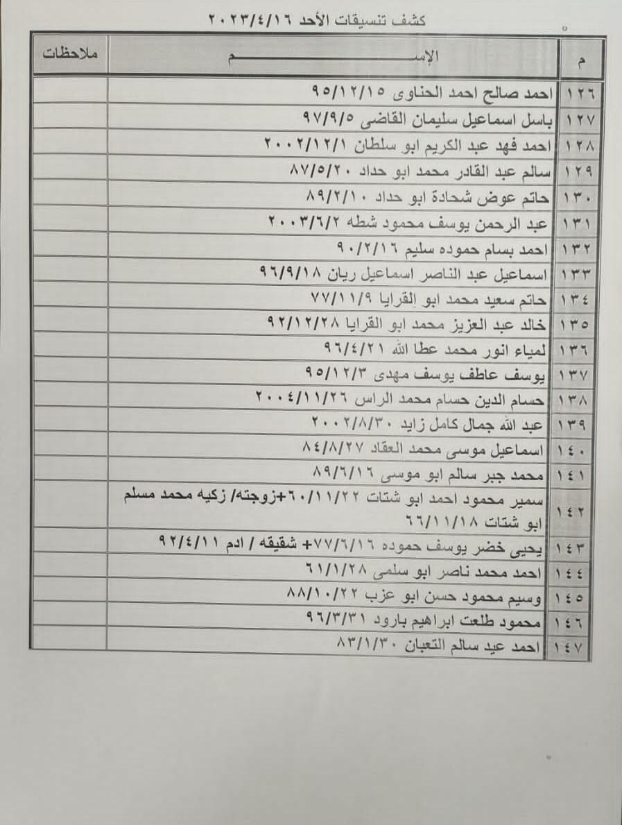 تعلن الهيئة العامة للمعابر والحدود بوزارة الداخلية والأمن الوطني عن وصول كشف "تنسيقات مصرية" للسفر عبر معبر رفح البري يوم الأحد (16 أبريل)، والذين عليهم التواجد س 7:00 صباحاً في الصالة الخارجية للمعبر لتسهيل سفرهم.