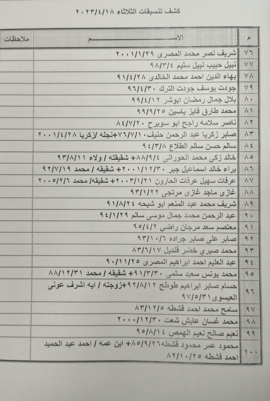 تعلن الهيئة العامة للمعابر والحدود بوزارة الداخلية والأمن الوطني عن وصول كشف "تنسيقات مصرية" للسفر عبر معبر رفح البري يوم الثلاثاء (18 أبريل)، والذين عليهم التواجد س 7:00 صباحاً في الصالة الخارجية للمعبر لتسهيل سفرهم.