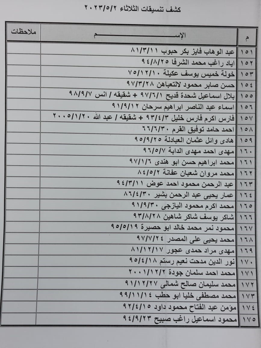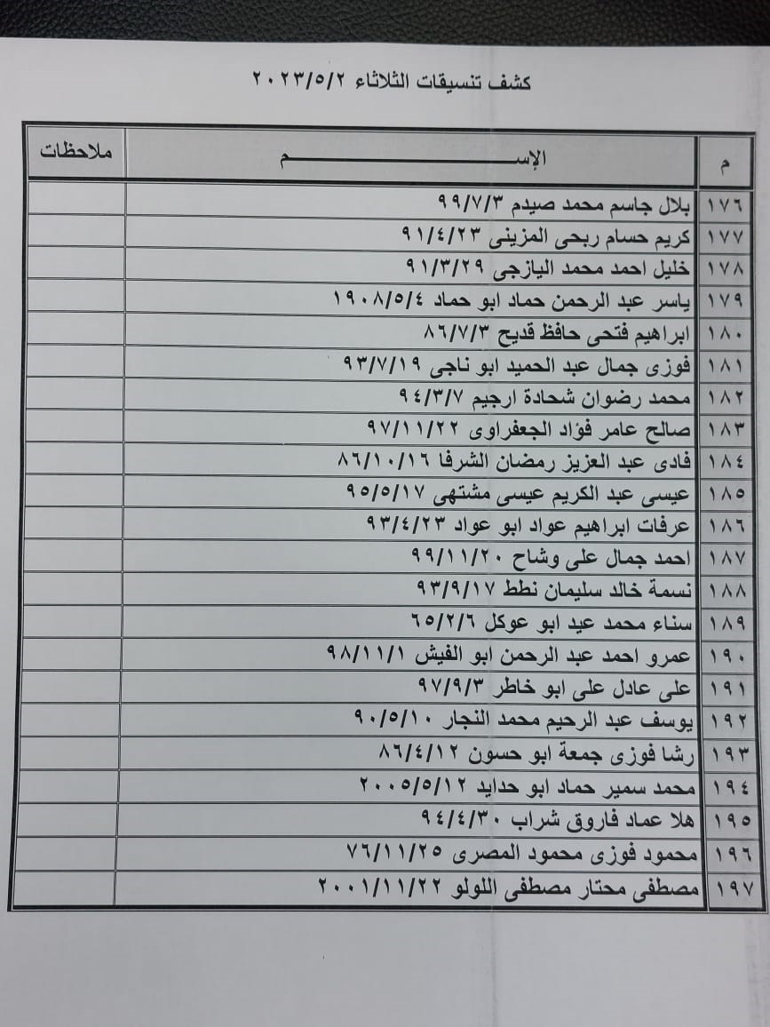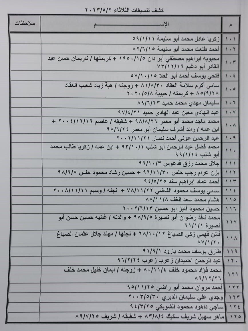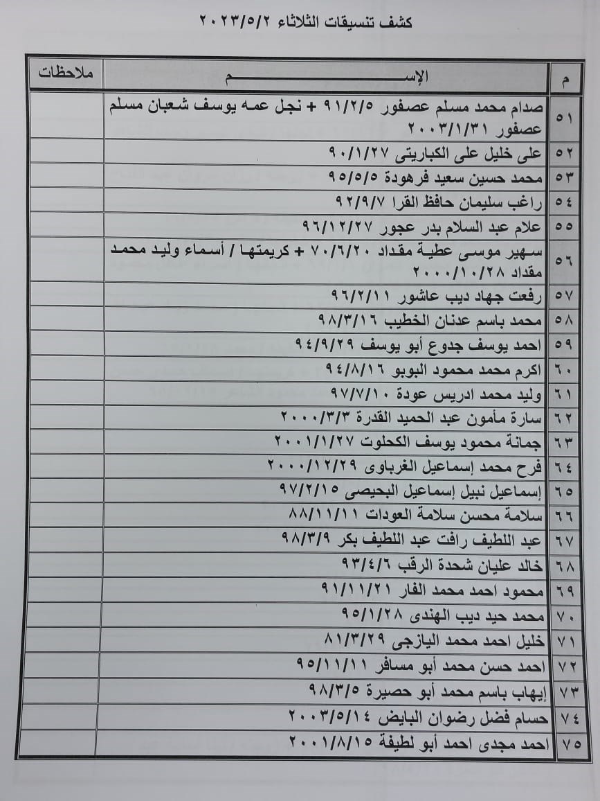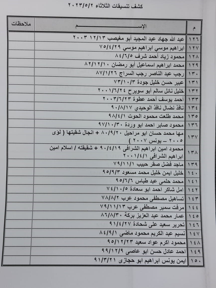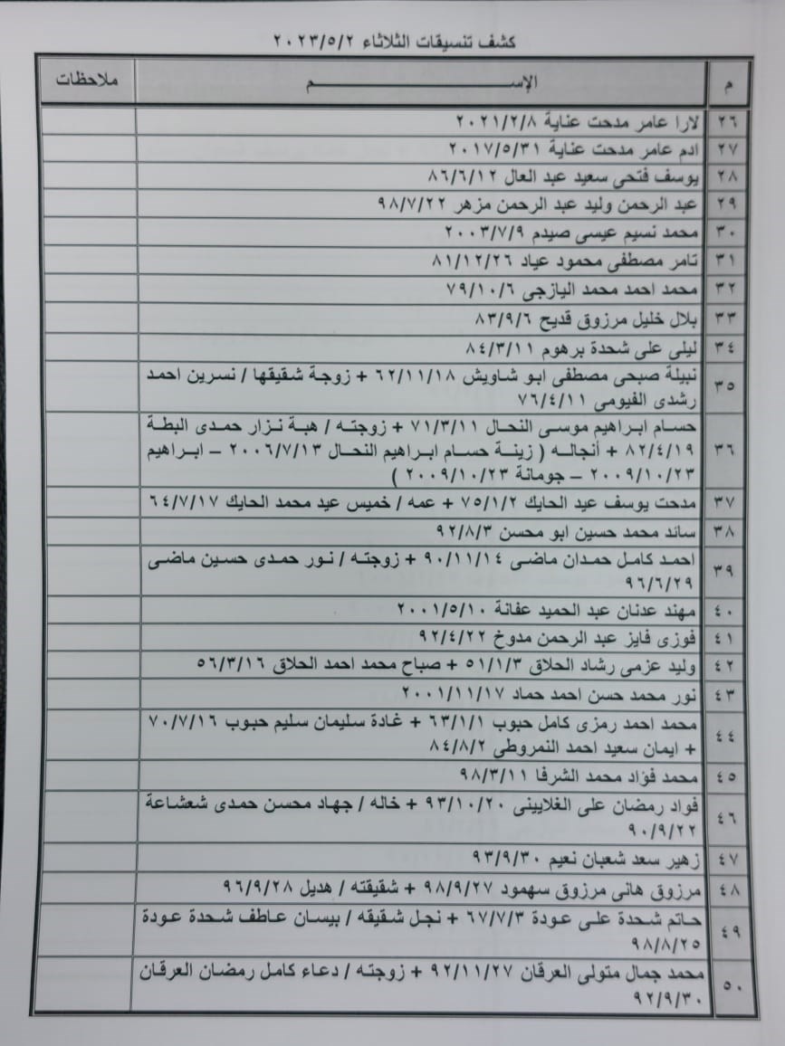 تعلن الهيئة العامة للمعابر والحدود بوزارة الداخلية والأمن الوطني عن وصول كشف "تنسيقات مصرية" للسفر عبر معبر رفح البري يوم الثلاثاء (2 مايو)، والذين عليهم التواجد س 7:00 صباحاً في الصالة الخارجية للمعبر لتسهيل سفرهم.