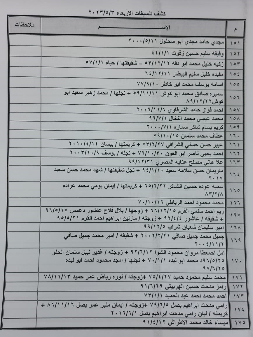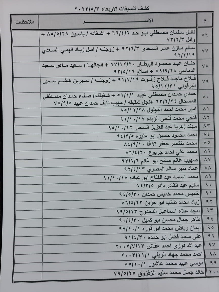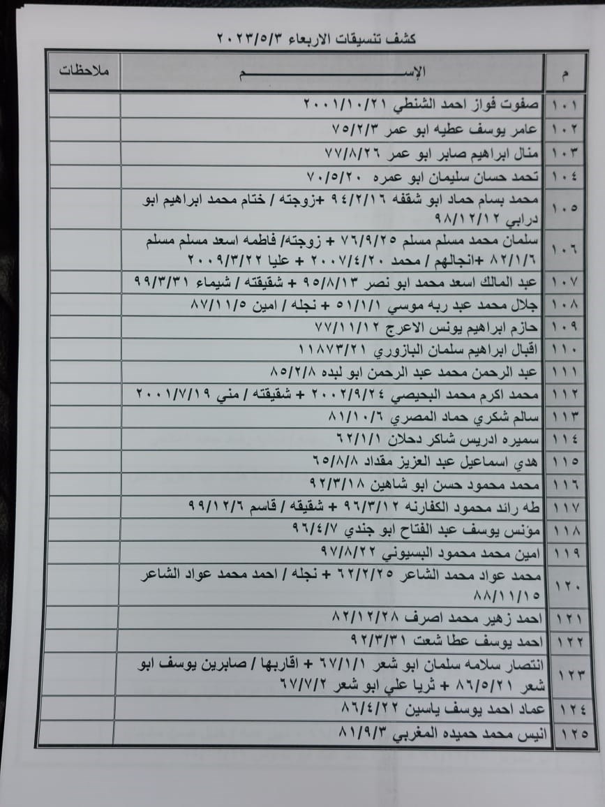 تعلن الهيئة العامة للمعابر والحدود بوزارة الداخلية والأمن الوطني عن وصول كشف "تنسيقات مصرية" للسفر عبر معبر رفح البري يوم الأربعاء (3 مايو)، والذين عليهم التواجد س 7:00 صباحاً في الصالة الخارجية للمعبر لتسهيل سفرهم.